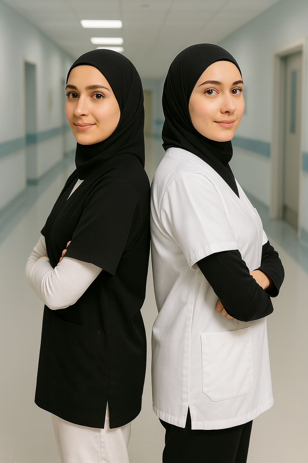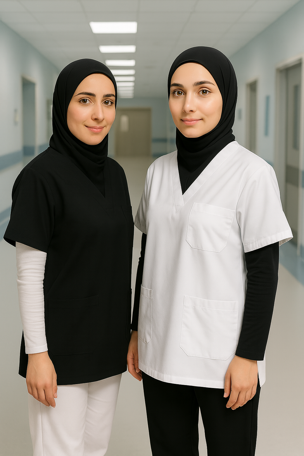 - 2’li paket: Siyah ve beyaz scrubs üst bir arada