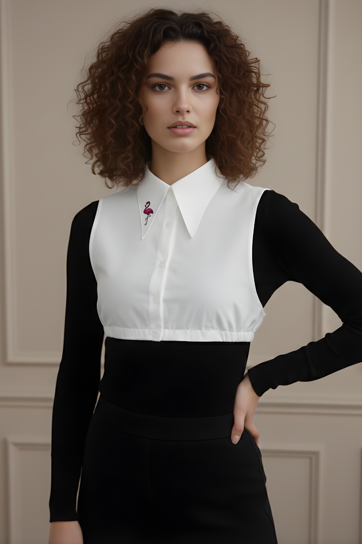 Flamingo Muse Shirt Collar, zarif ama iddialı bir stil arayanlar için tasarlanmış özel tasarım takma gömlek yakası modelidir. İlhamını güçlü ve özgür bir duruştan alan bu tasarım, sade kombinleri anında daha çarpıcı ve stil sahibi bir görünüme taşır. Kadın gömlek yakası kategorisinde fark yaratan Flamingo Muse, modern ve zamansız çizgisiyle öne çıkar.