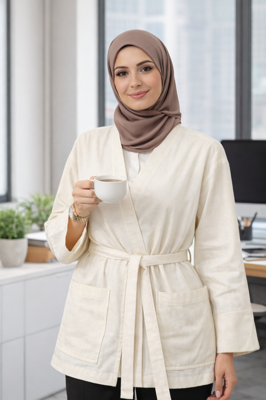 يمكن ارتداء سترة الكيمونو هذه ذات اللون الكريمي كقطعة مكملة لإطلالاتكِ مع الفساتين، والسترات الطويلة، والتنانير، والسراويل. تُعدّ سترة الكيمونو المصنوعة من القطن الخام من ميراش تيكستايل خيارًا مثاليًا للارتداء اليومي، ولإطلالة أنيقة وعصرية، وللتنسيقات البسيطة، فهي بديل رائع لمن يبحثن عن مظهر طبيعي وأنيق في عالم الأزياء المحتشمة. وبفضل تصميمها الكلاسيكي، ستحافظ على مكانتها في خزانتكِ في كل موسم.