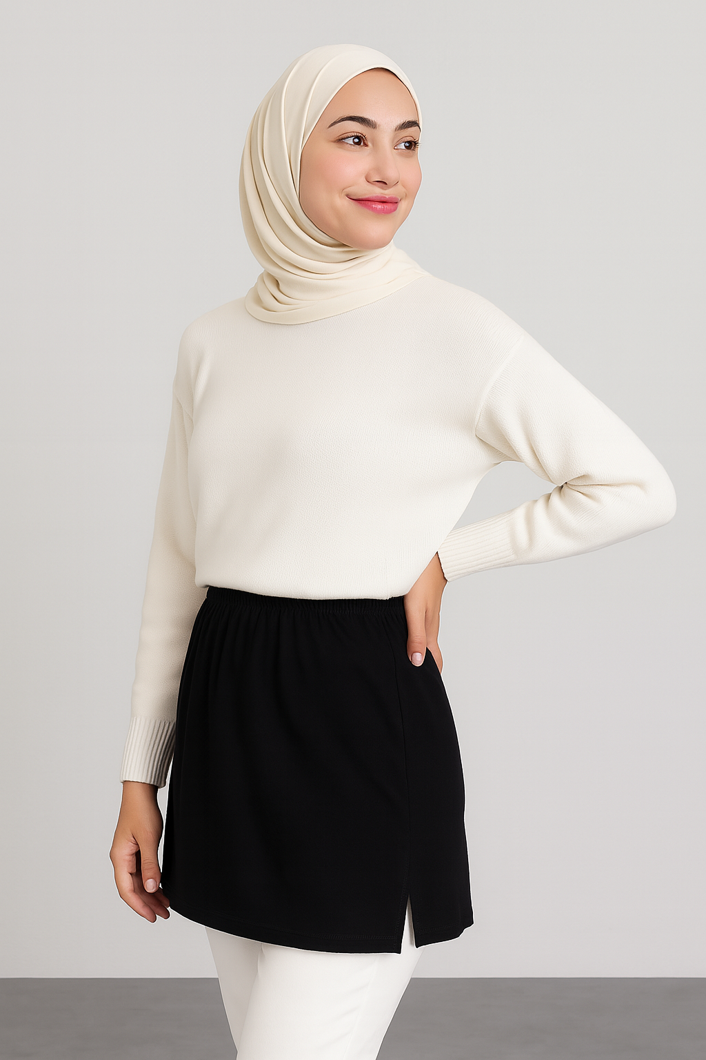 تنورة داخلية بفتحة - سوداء
