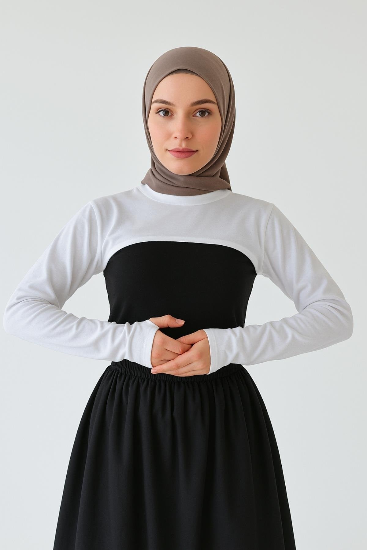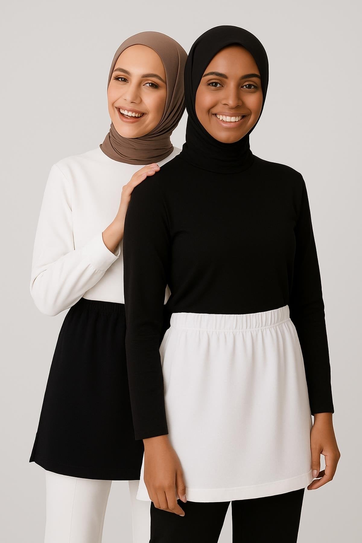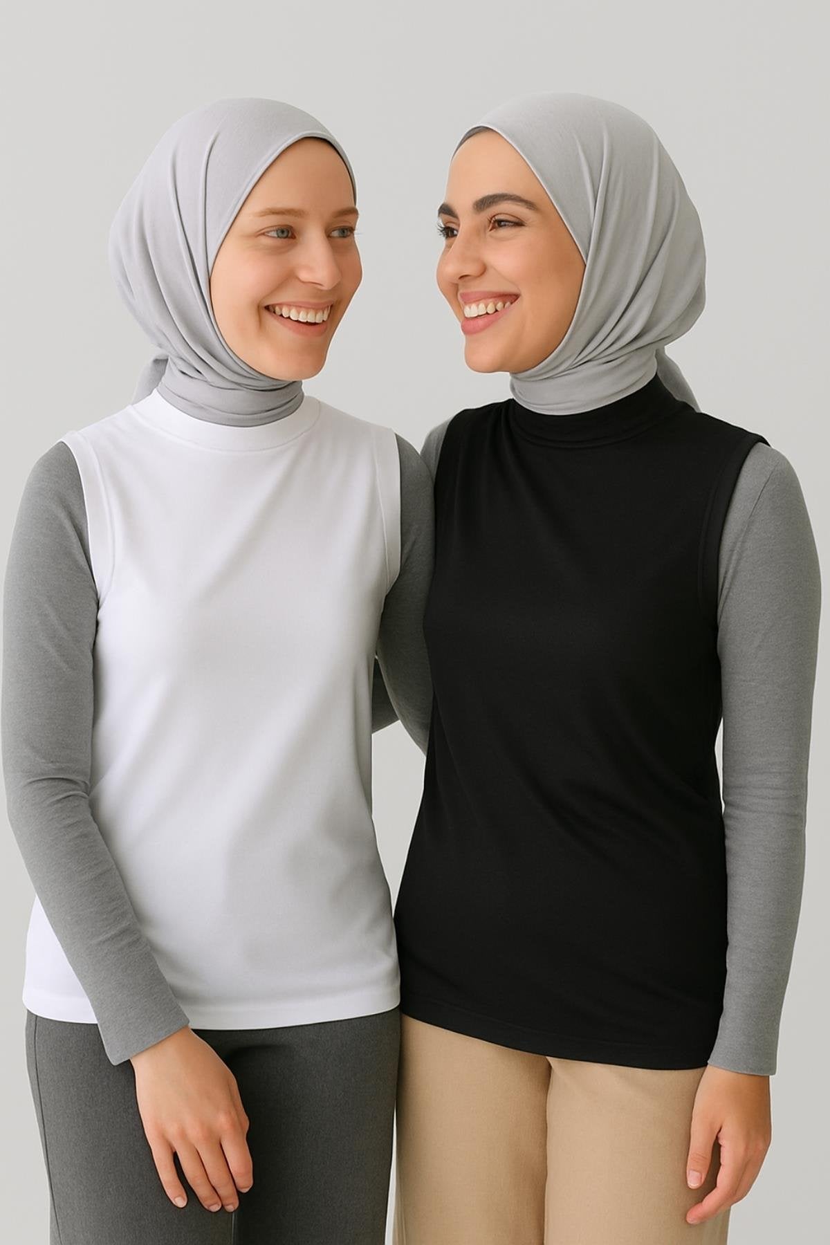 2'li Paket Boyunluklu Tesettür Kolluk - Siyah ve Beyaz
