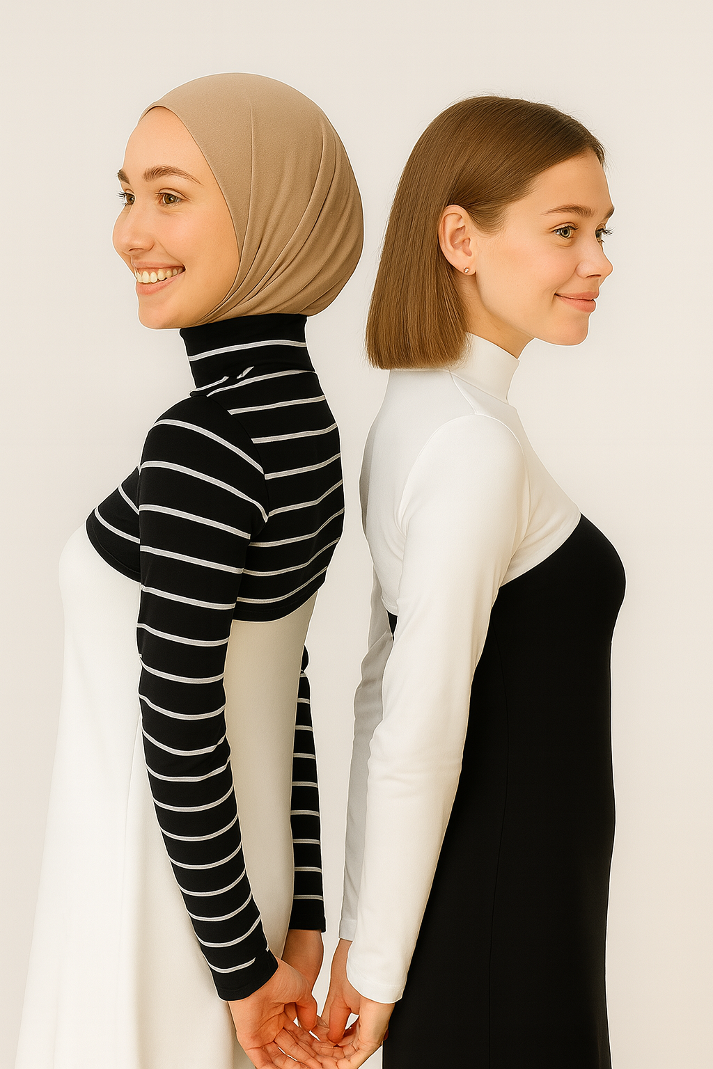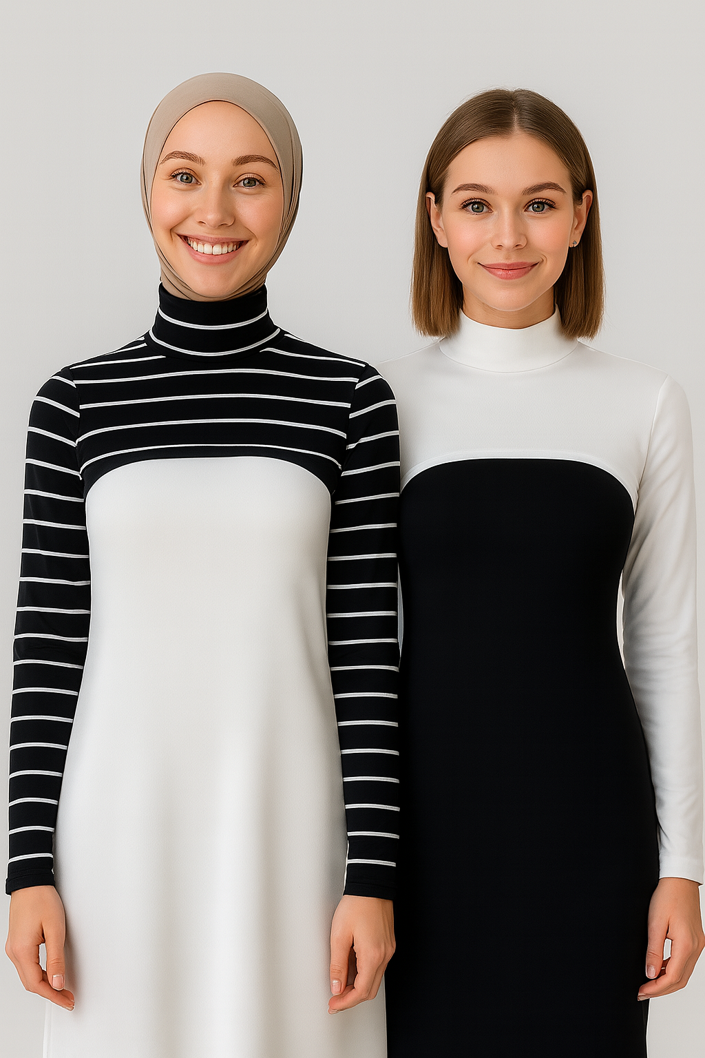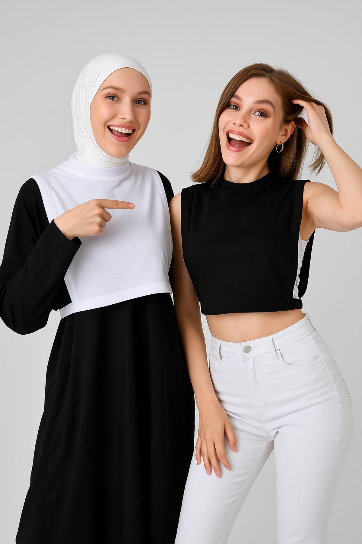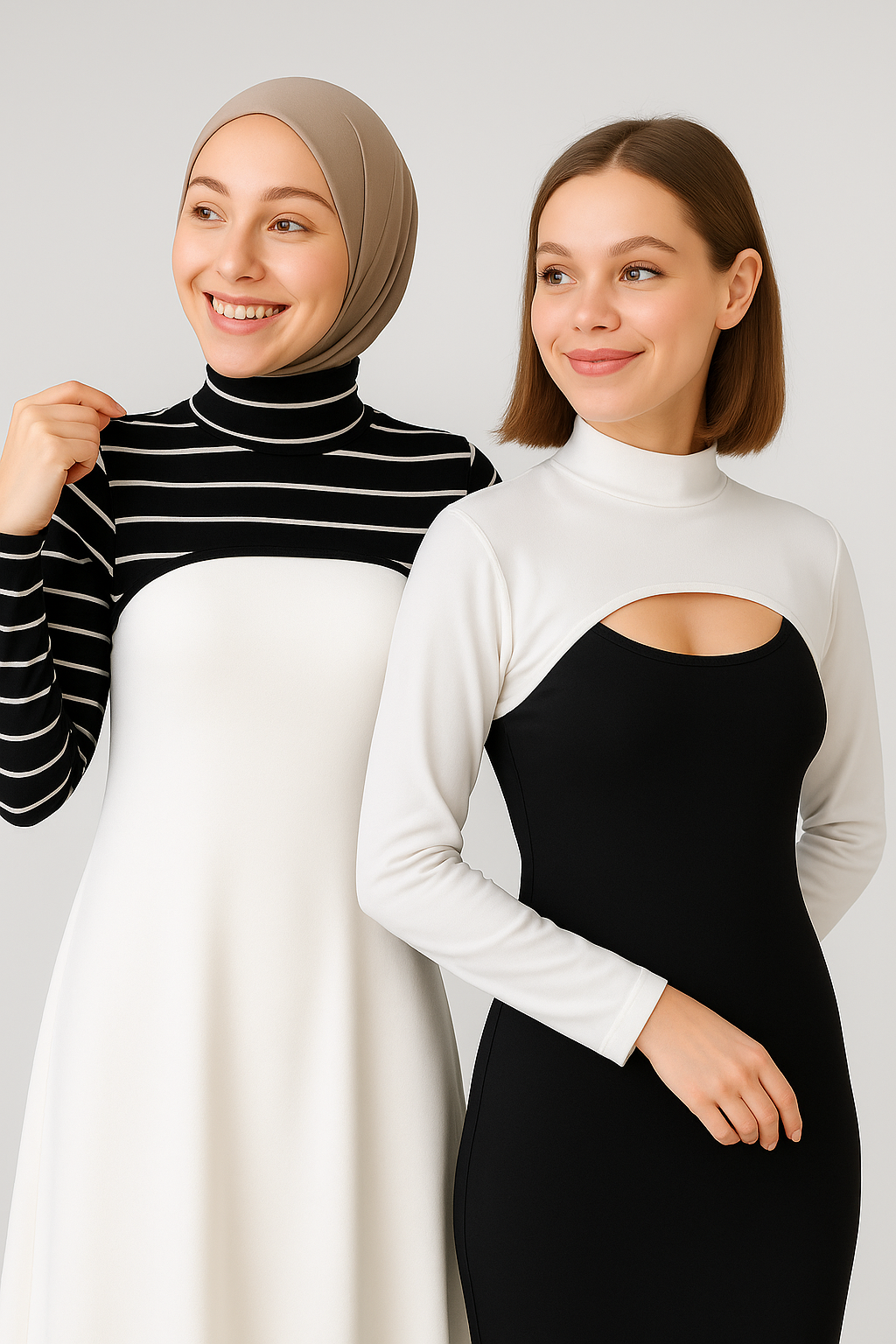 2'li Paket Boyunluklu Tesettür Kolluk - Siyah ve Beyaz