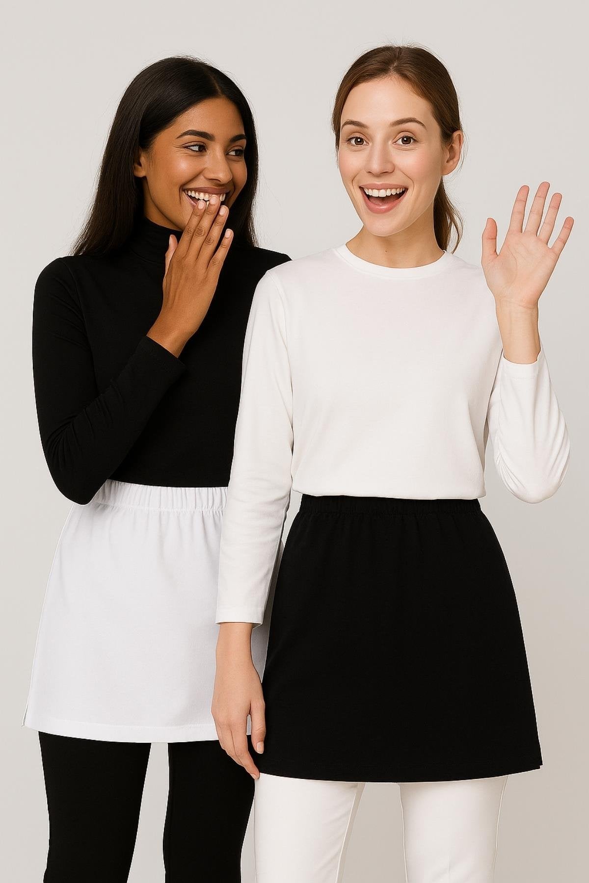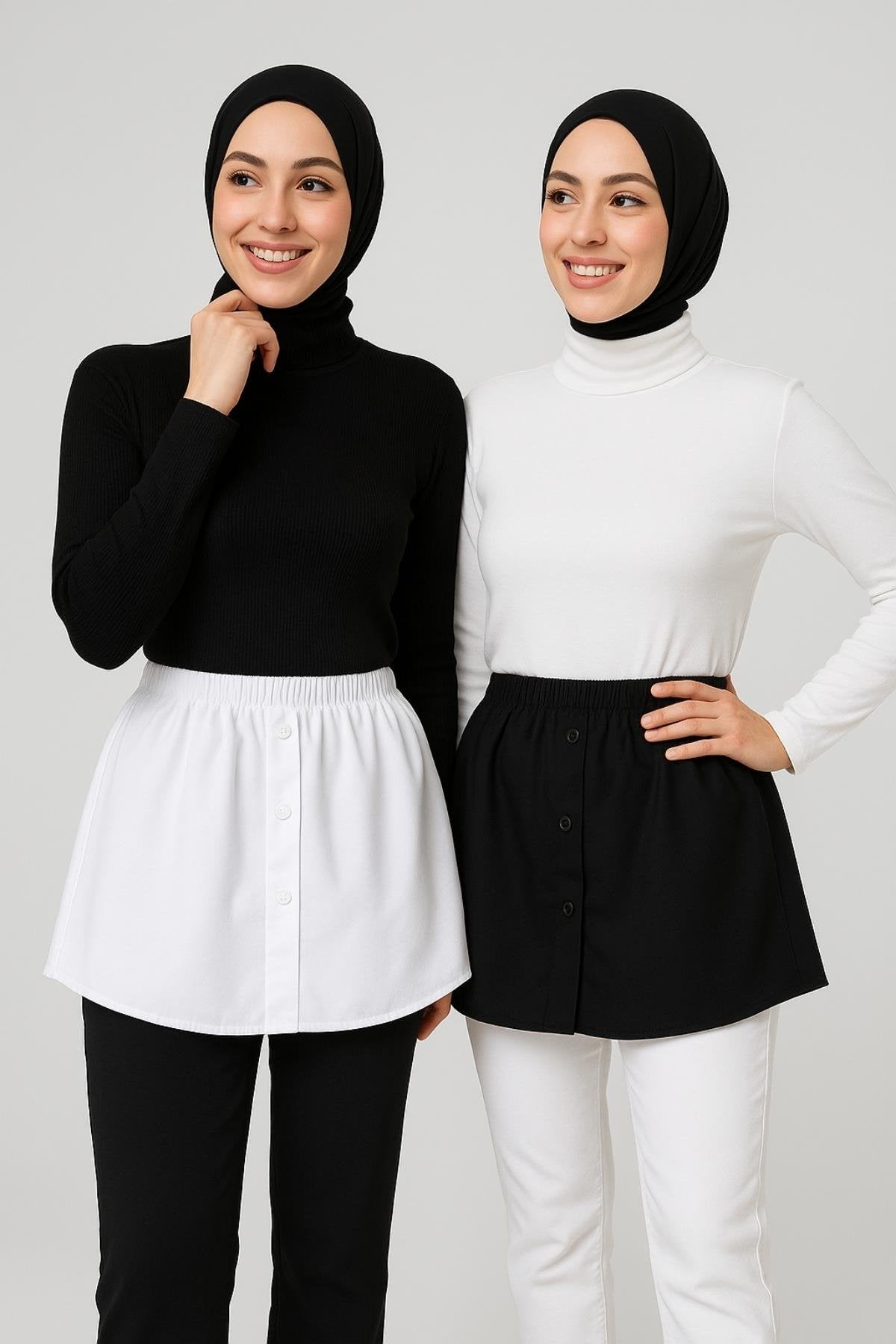 2'li Paket Gömlek Etek Seti - Siyah ve Beyaz