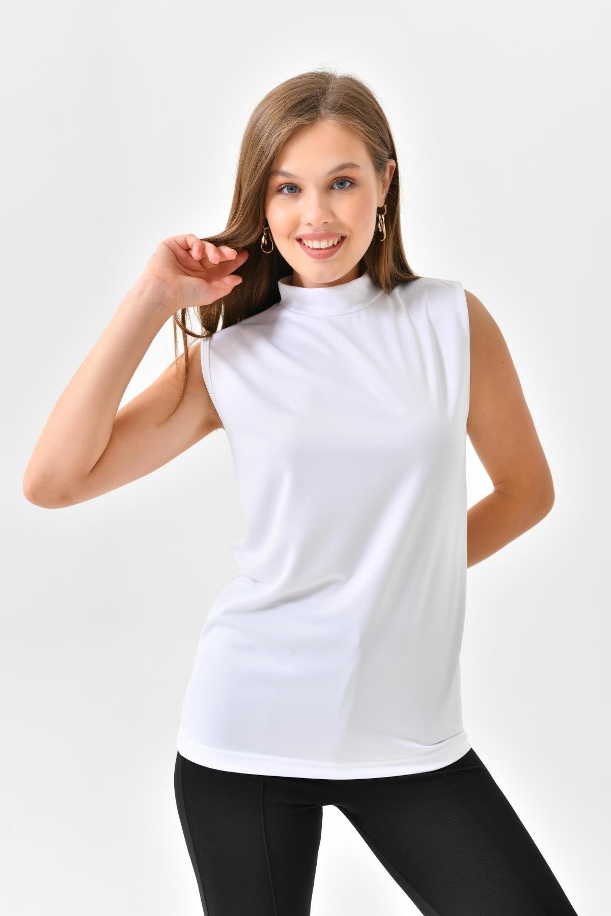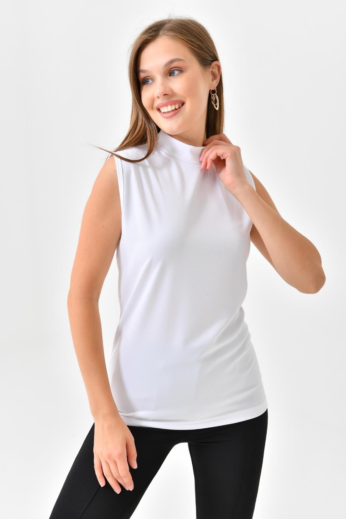 Balıkçı Yaka Kolsuz İçlik – Beyaz