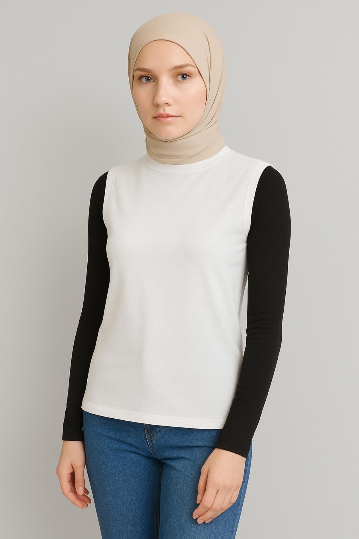 Beyaz Boyunluklu Tesettür Kolluk