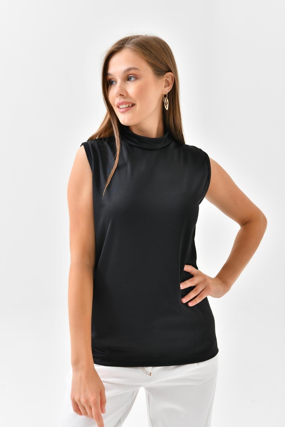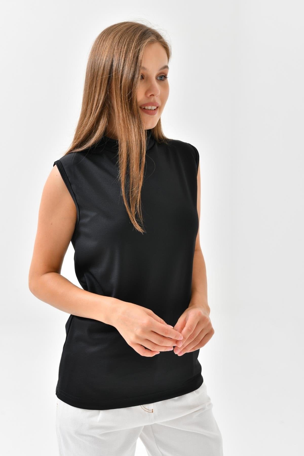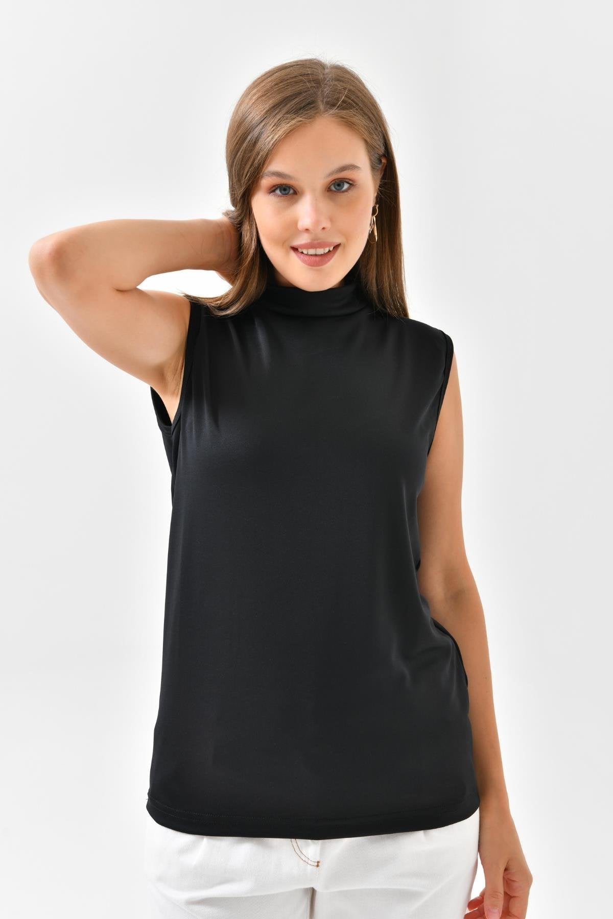 Balıkçı Yaka Kolsuz İçlik – Siyah