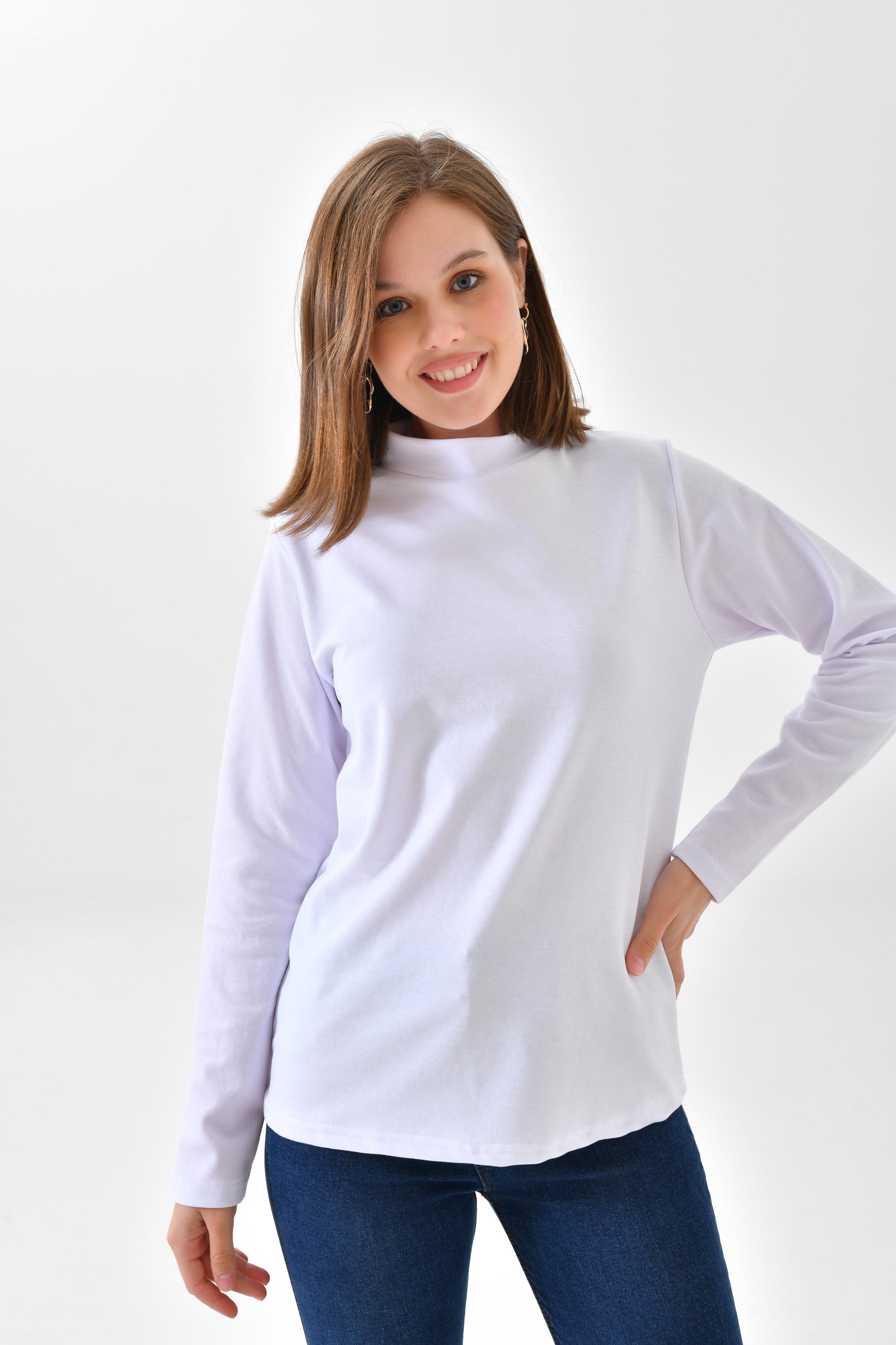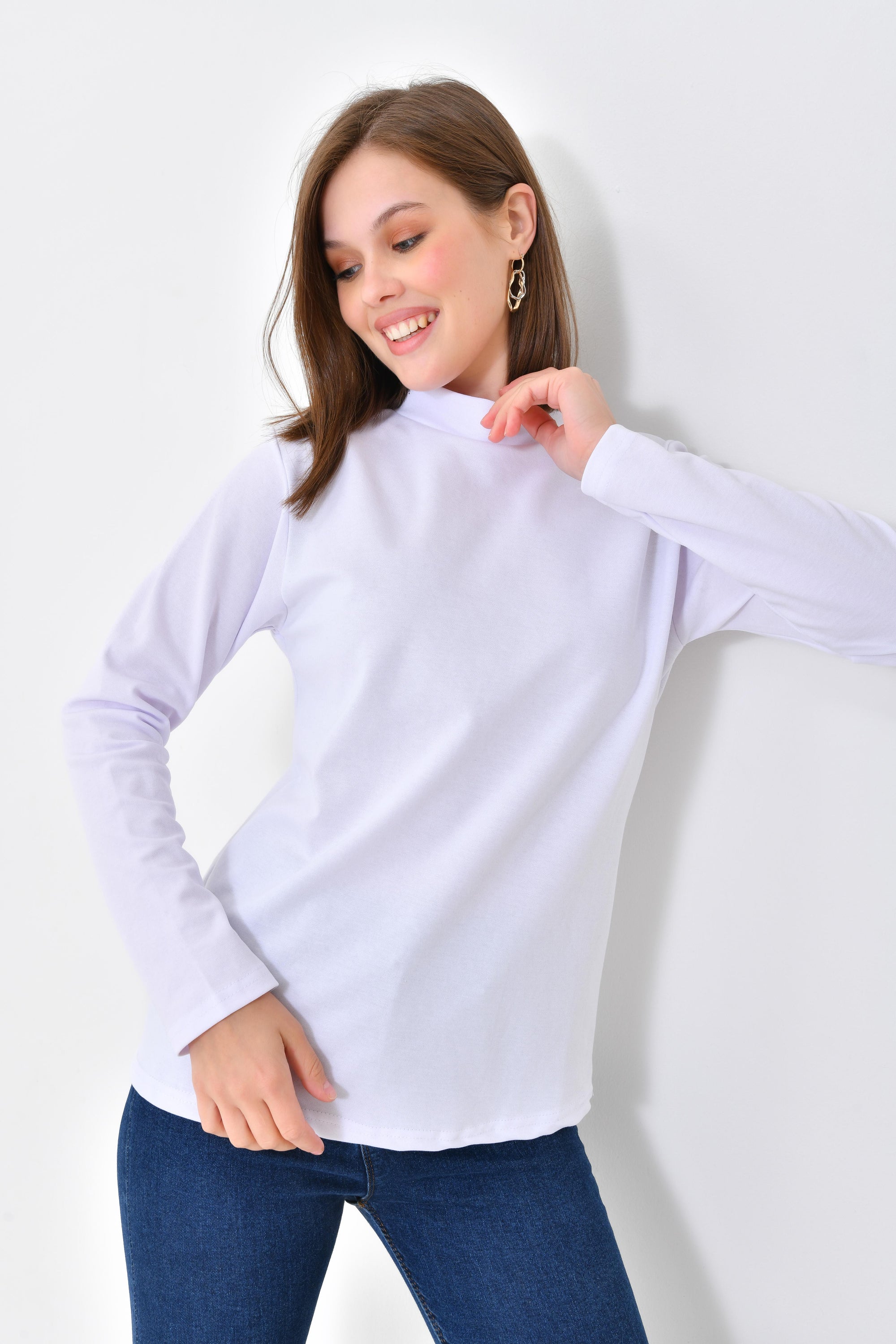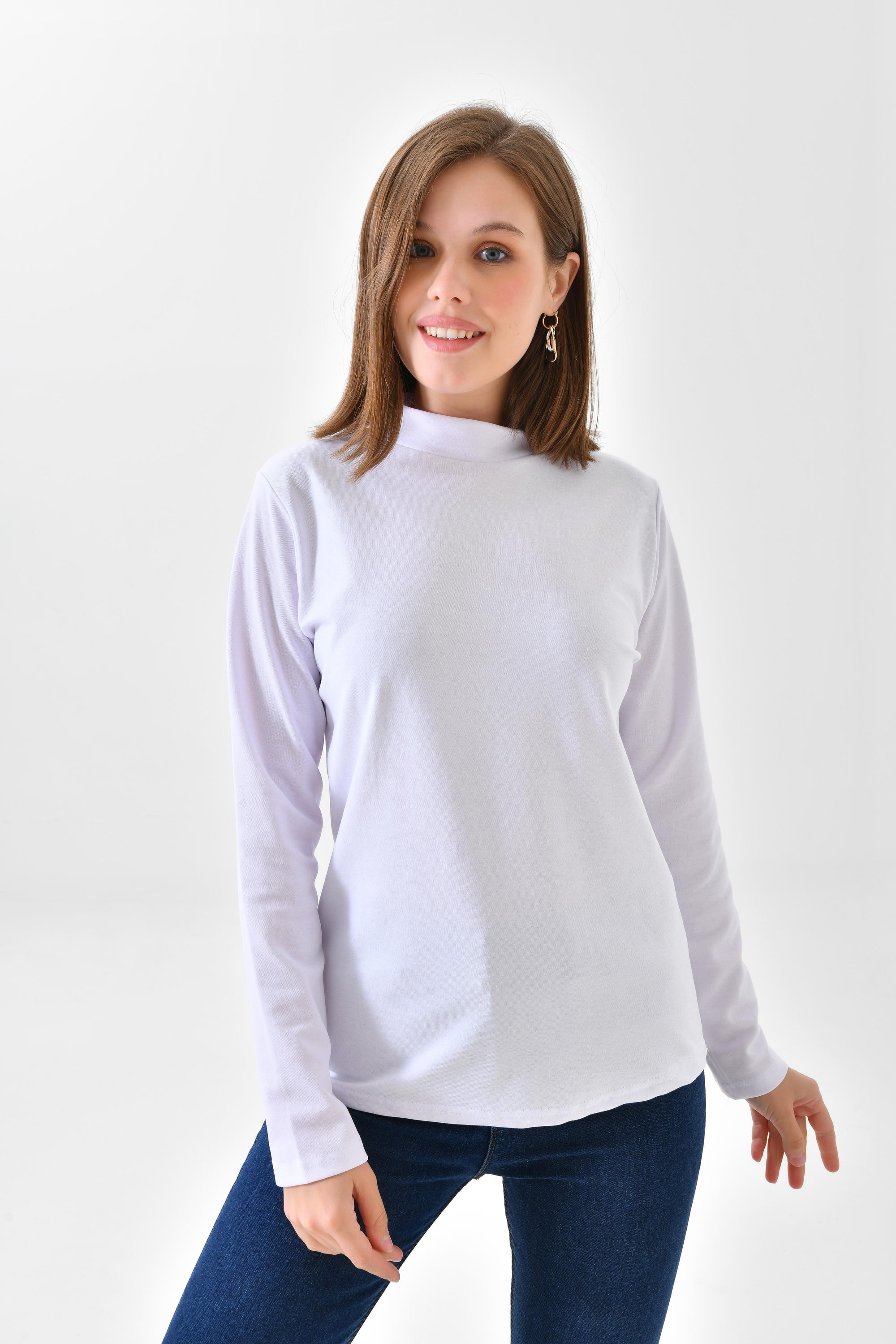 Beyaz Penye Boyunluklu Kolluk - Uzun Kol