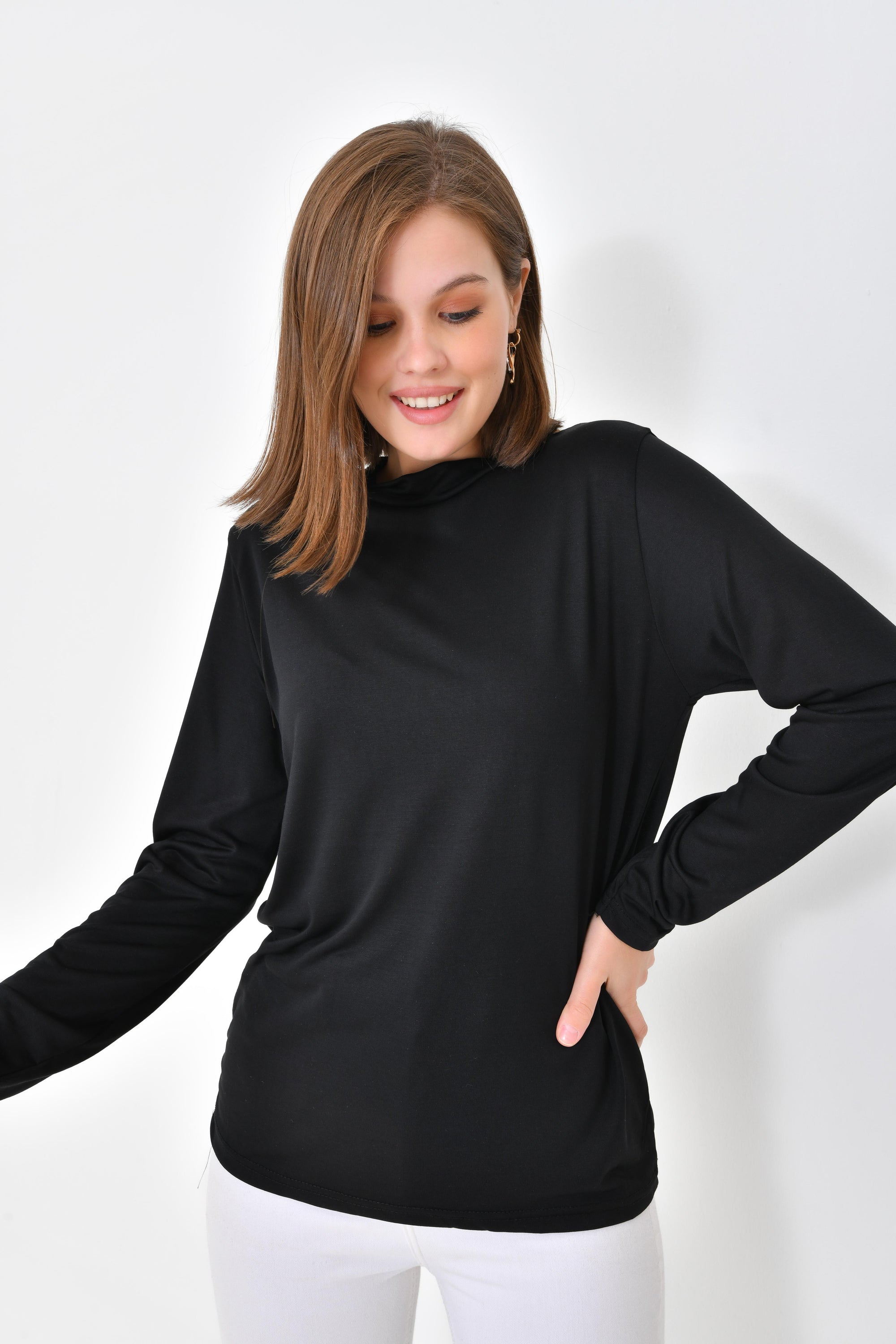 Balıkçı Yaka Uzun Kol Bluz - Siyah