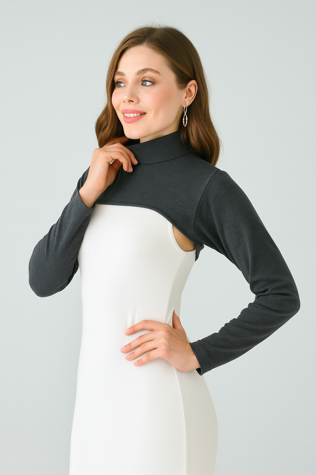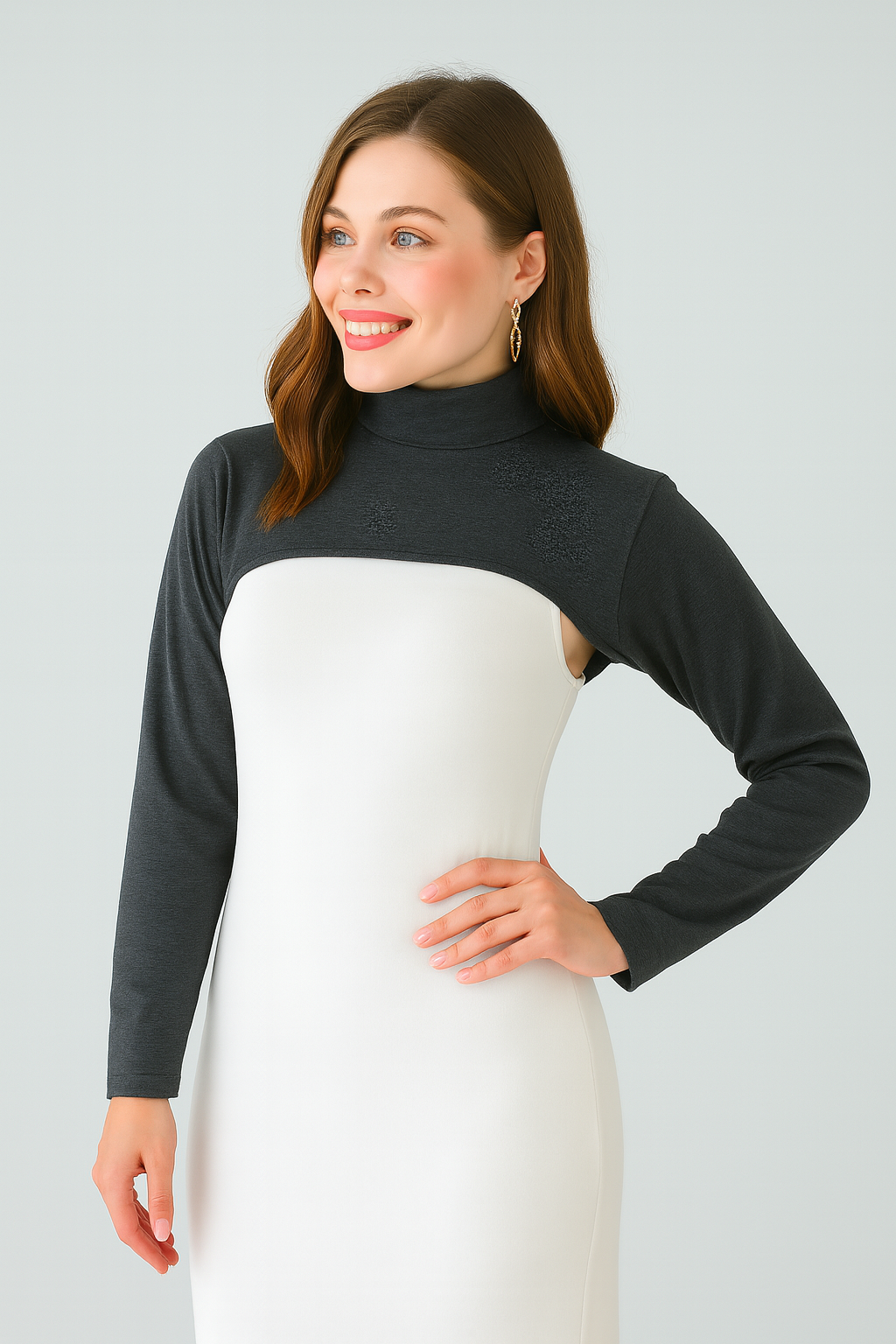 Antrasit Penye Boyunluklu Kolluk - Uzun Kol