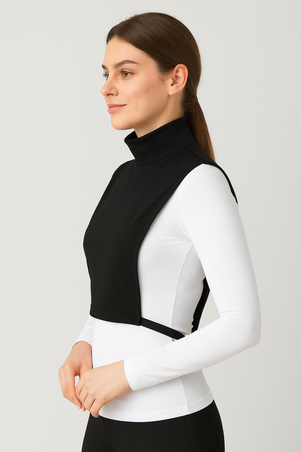 Mirach Textile's black sleeveless turtleneck offers everyday chic with its minimal design and soft feel. Its stretchy cotton and Lycra blend fabric ensures all-day comfort. Its sleeveless design makes it perfect for layering outfits.