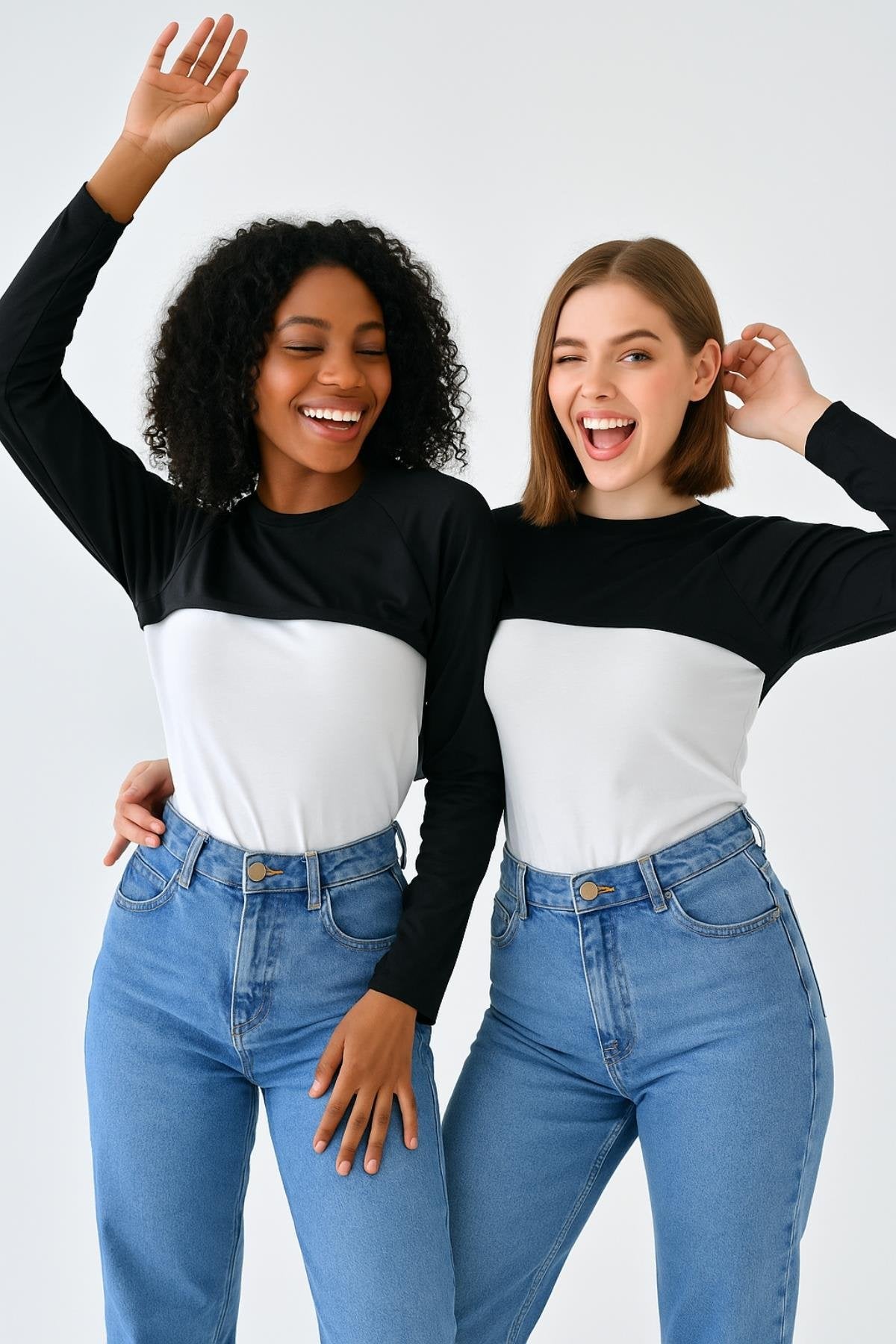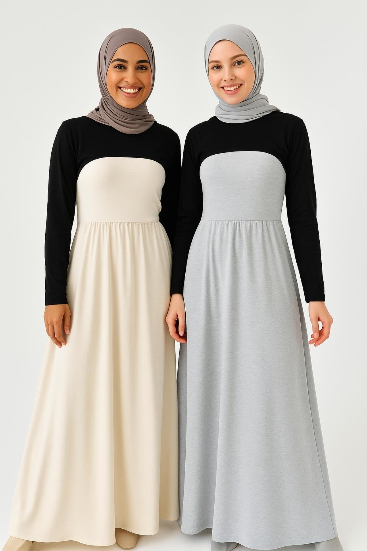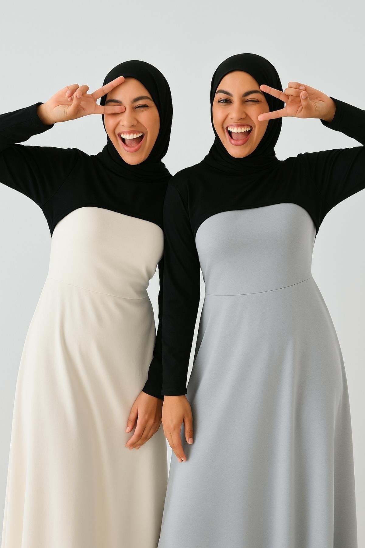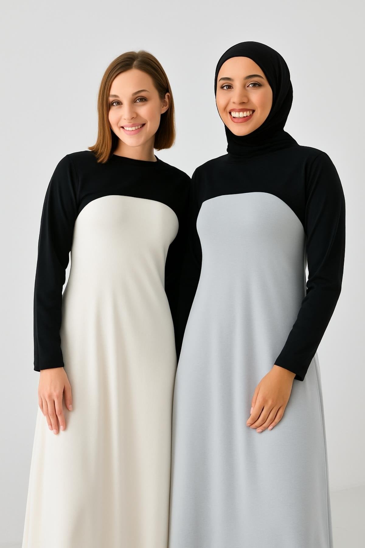 Mirach Textile’in ikili set halinde siyah ve beyaz bisiklet yaka boyunluklu kolluğu, zarif tasarımı ve pamuklu yapısıyla tesettür giyimde şıklık ve konforu bir araya getirir. Bisiklet yaka tasarımı boynu tam kapatırken, uzun kol yapısı gün boyu rahatlık sunar. Dört mevsim kullanıma uygun, cilt dostu bir içlik parçasıdır.