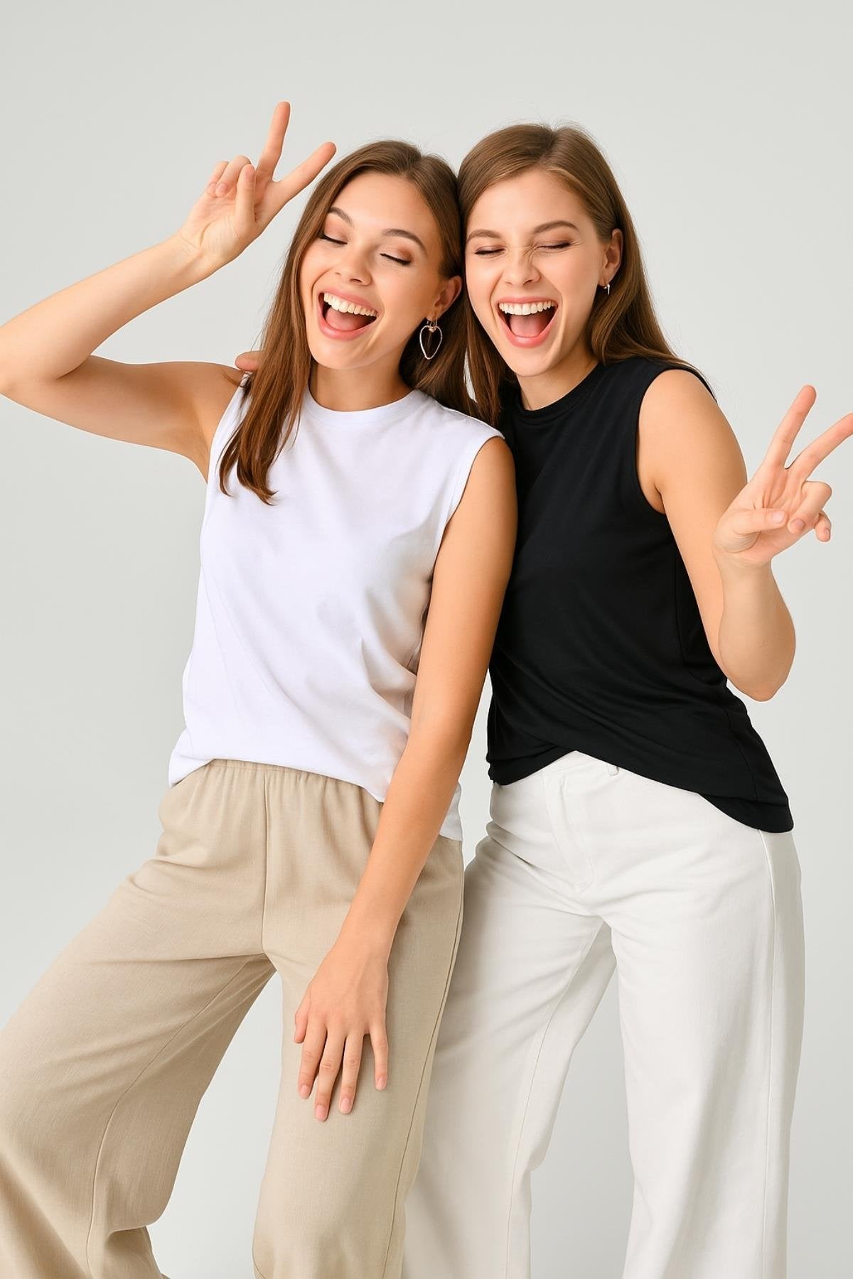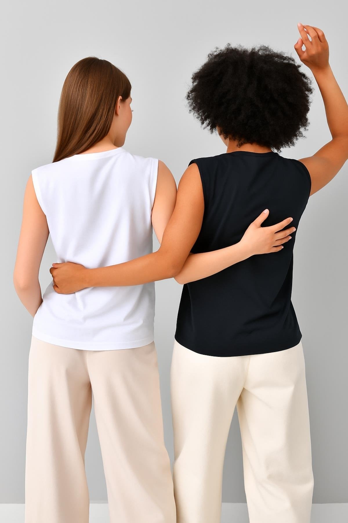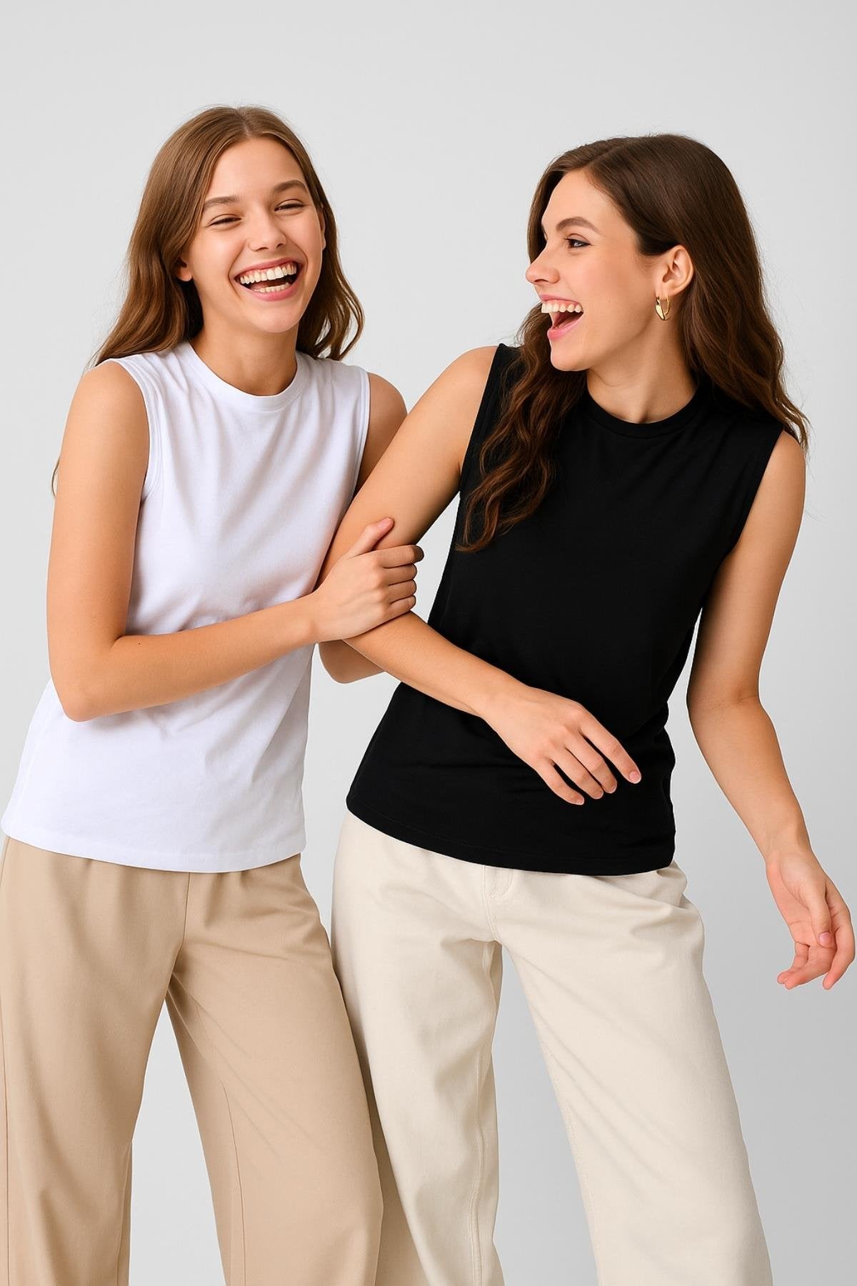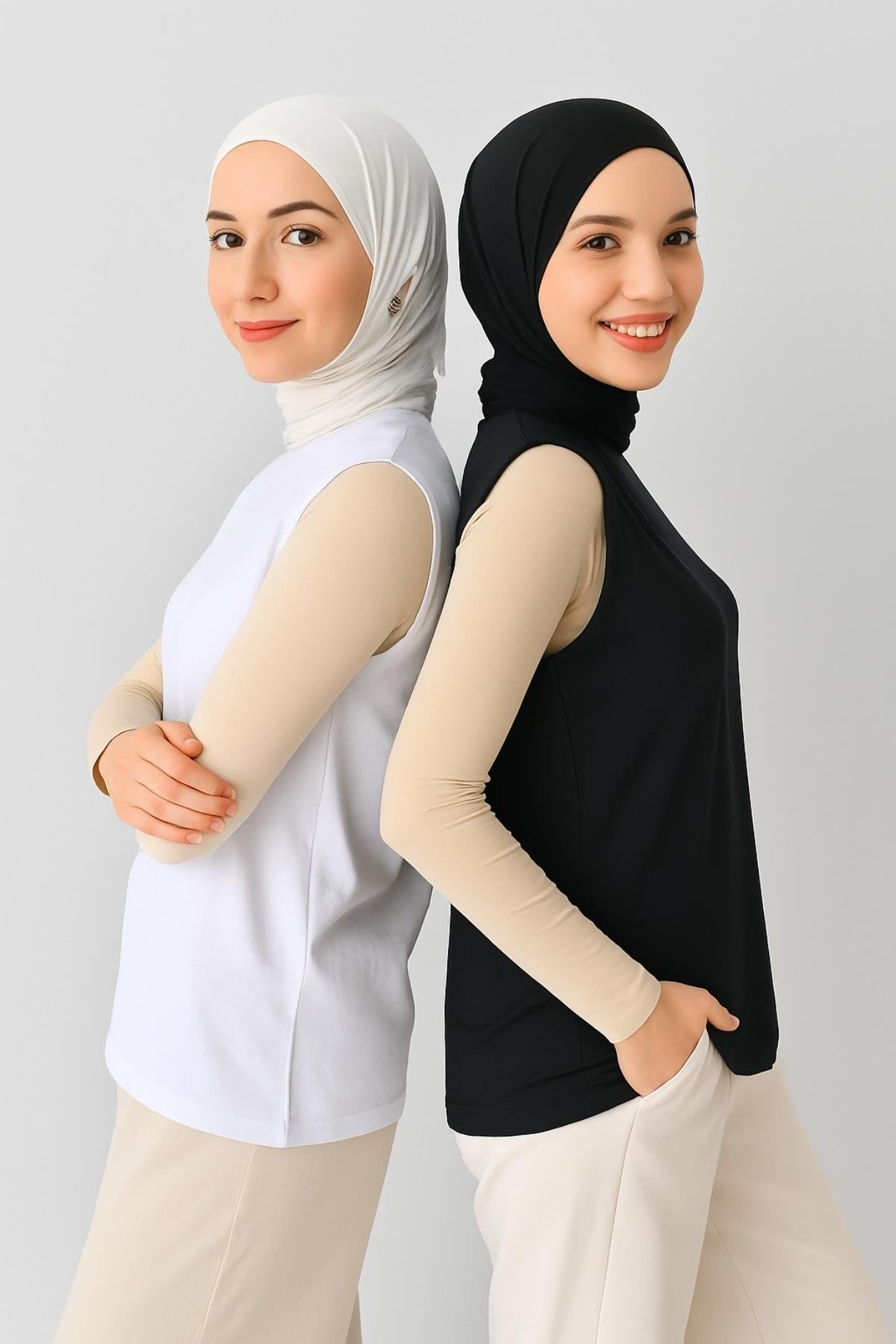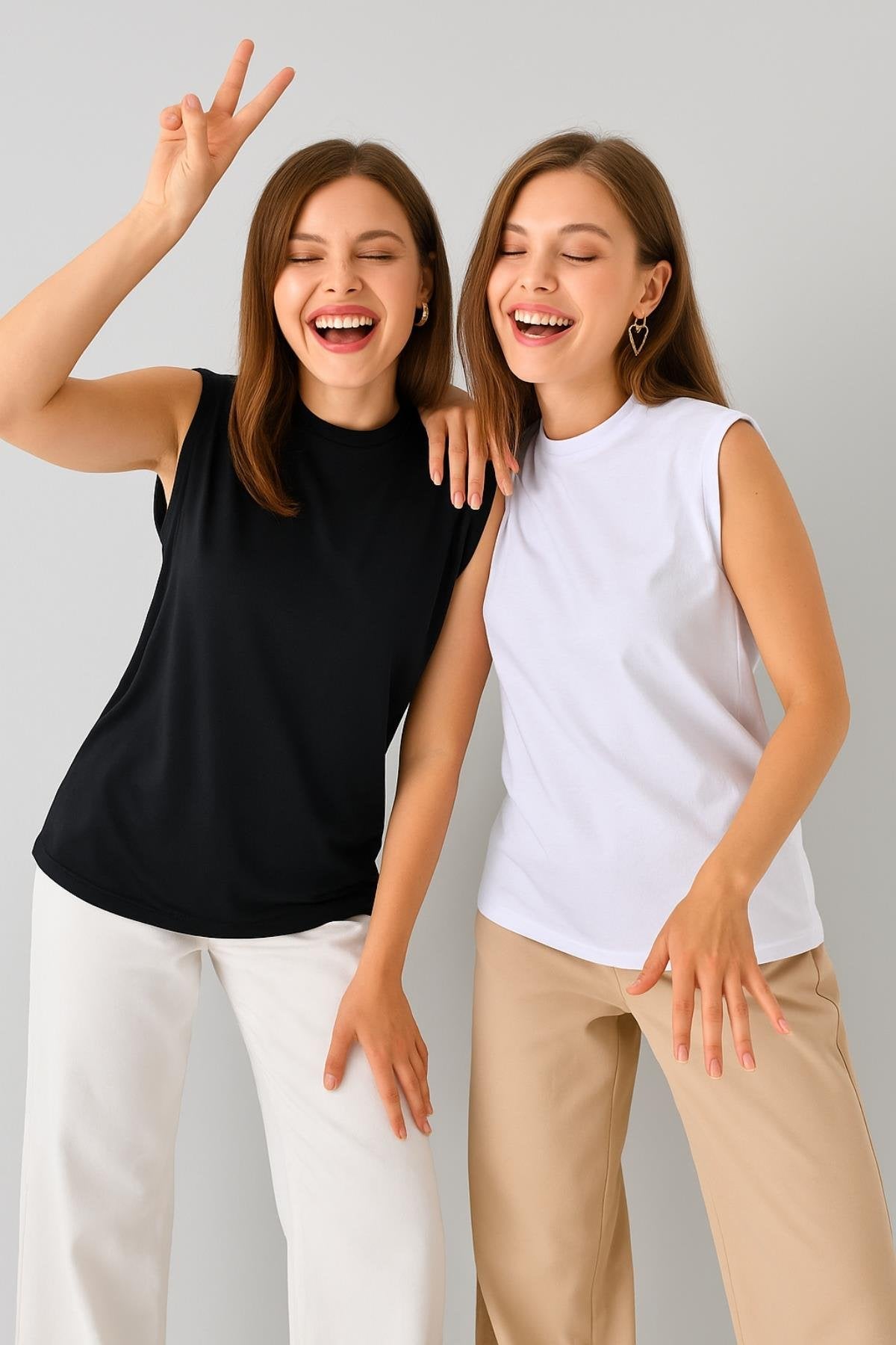 2'li Paket Bisiklet Yaka Kolsuz İçlik Seti – Siyah & Beyaz