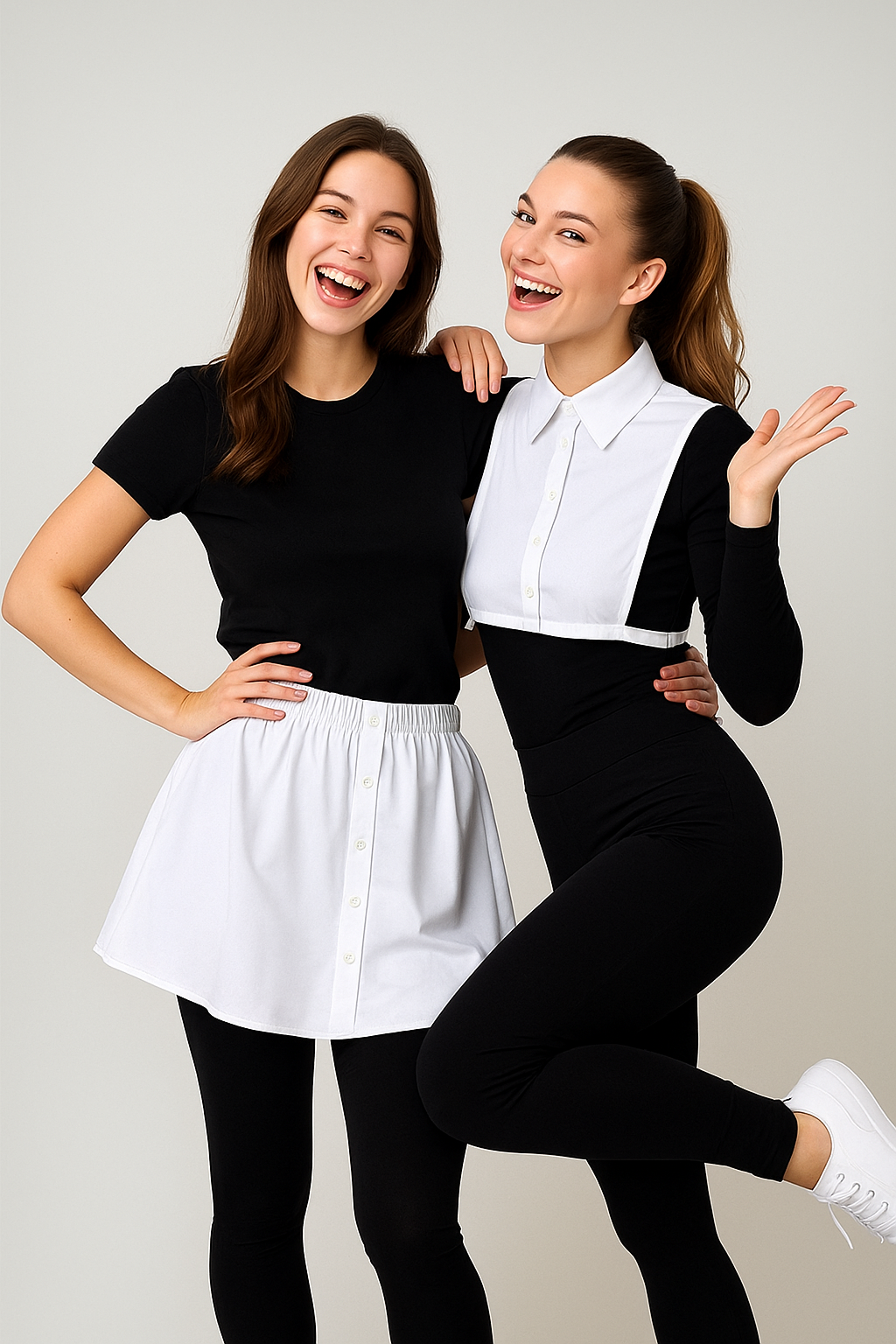 2 parçadan oluşan bu özel set ile tarzınızı kolayca tamamlayın: beyaz gömlek yaka üst ve beyaz gömlek etek — tek tıkla uyumlu şıklık!