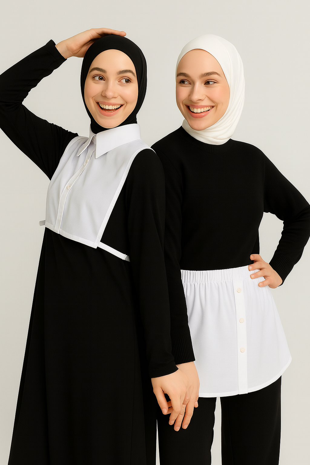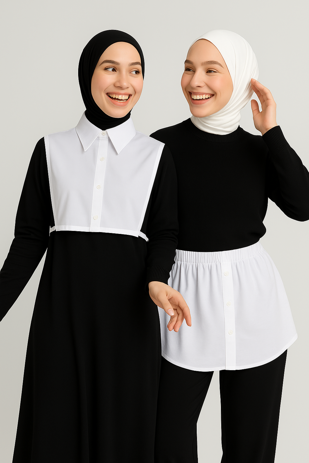 2'li Paket Gömlek Etek ve Gömlek Yaka Seti - Beyaz