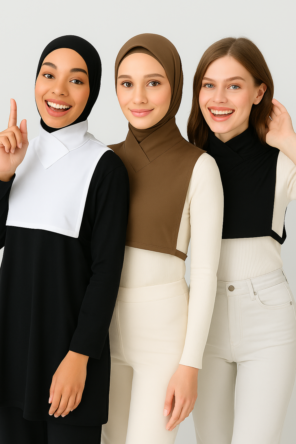 3'lü Set Çapraz Yaka Boyunluk - Siyah, Beyaz ve Kahve