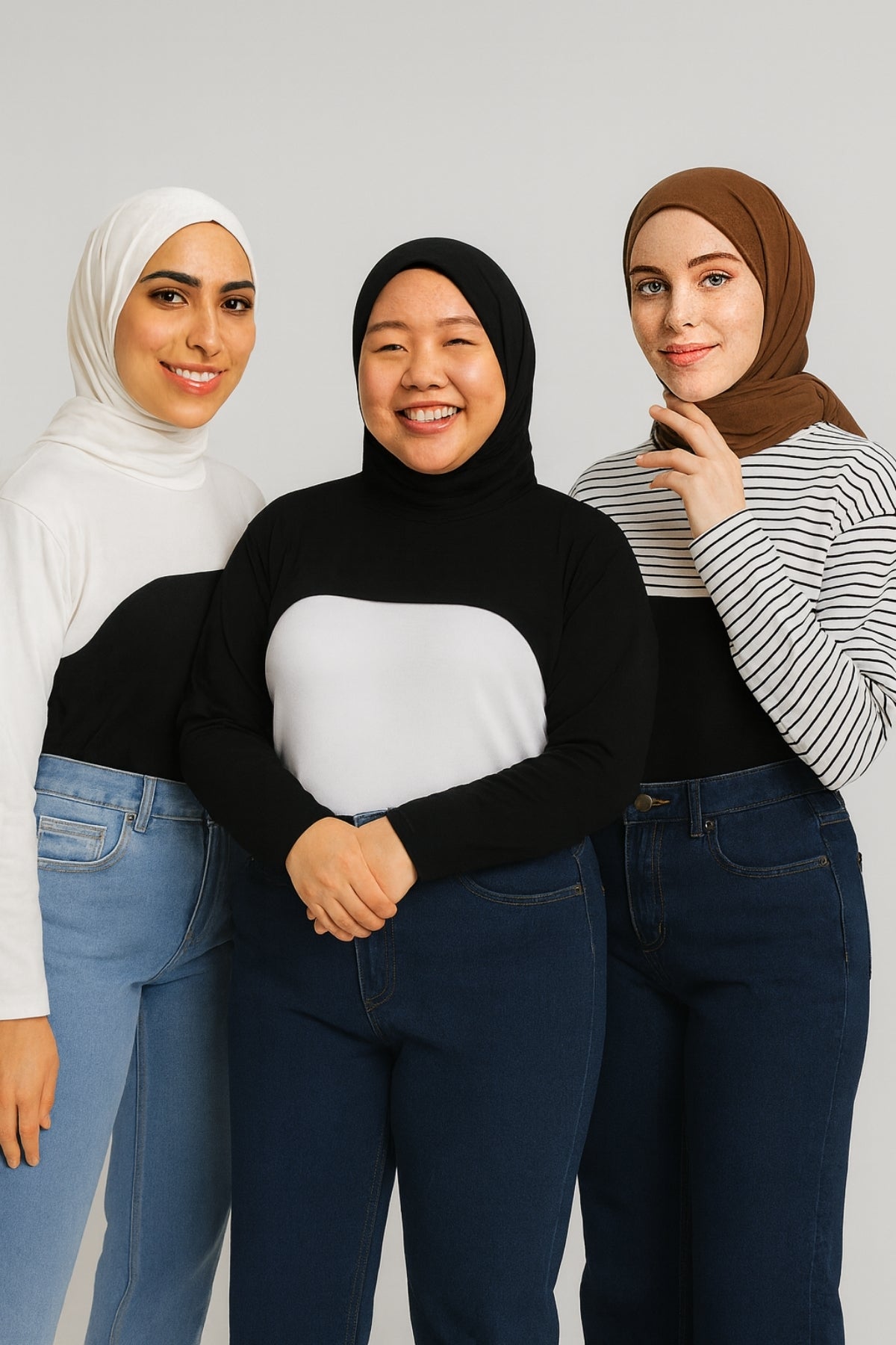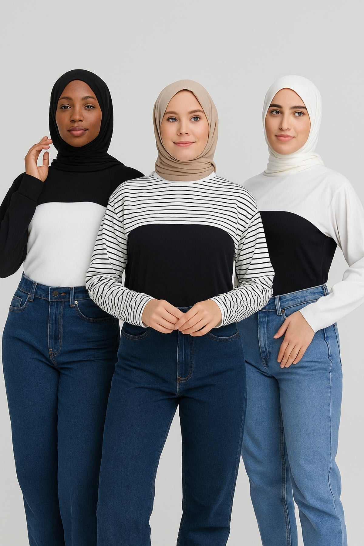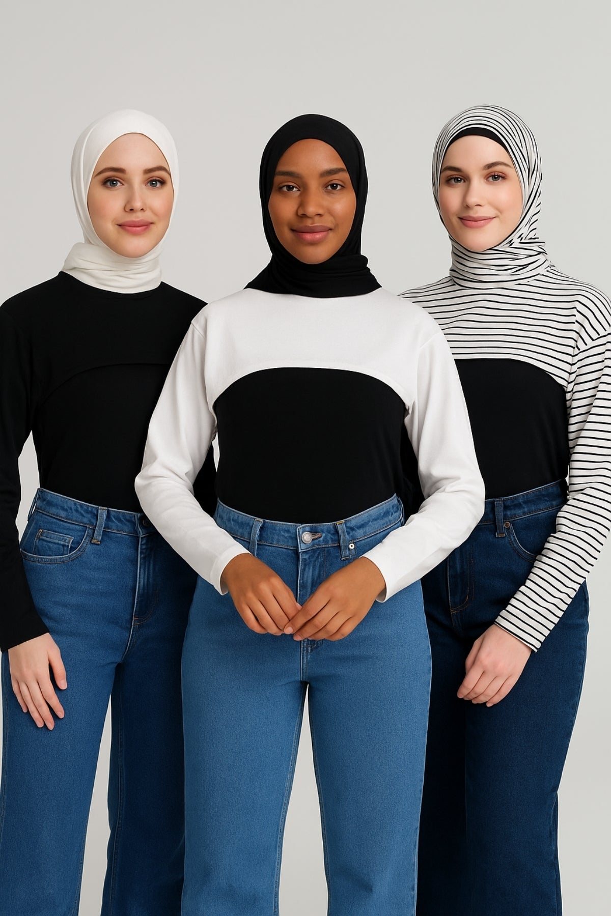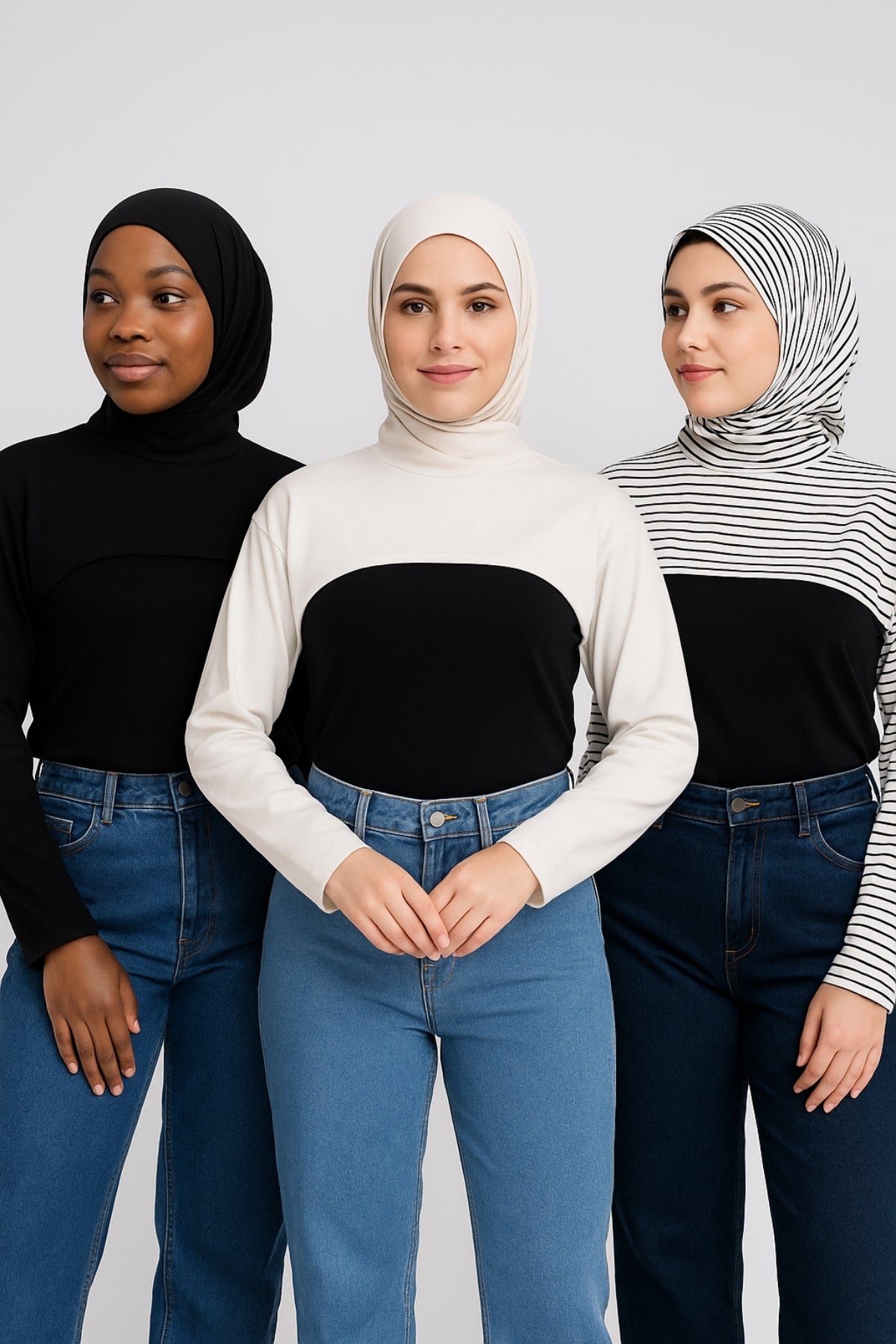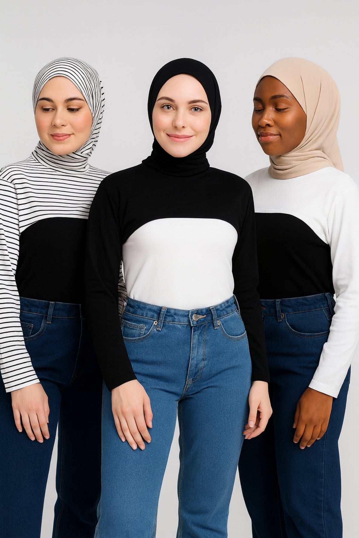 Mirach Textile’in üçlü dik yaka boyunluklu kolluk seti, %95 pamuk %5 likra karışımıyla gün boyu konfor sağlarken tesettür kombinlerinize renk ve pratiklik katar. Dik yaka tasarımı, boyun bölgesini tamamen kapatarak zarif bir görünüm sunar. Set, beyaz çizgili, siyah ve beyaz renklerinden oluşur, böylece farklı kombinlere uyum sağlar.