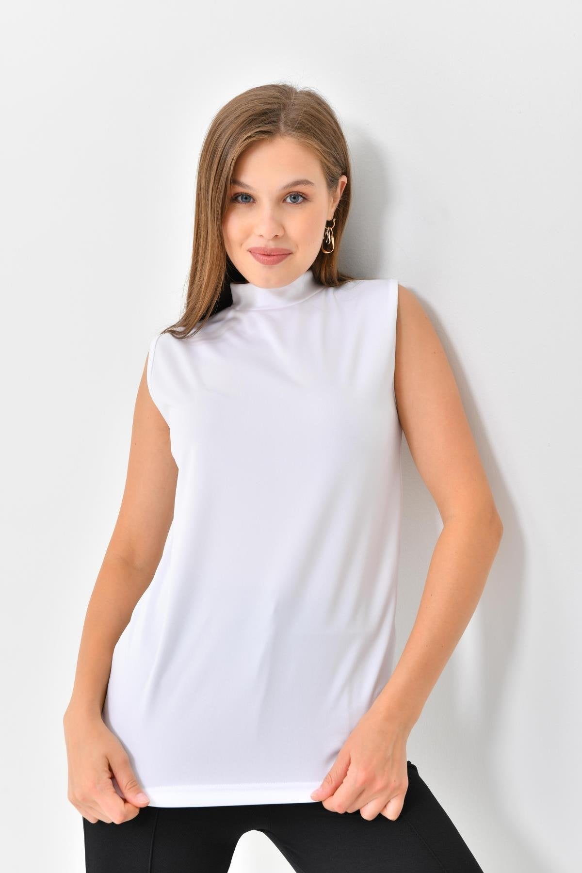Balıkçı Yaka Kolsuz İçlik – Beyaz