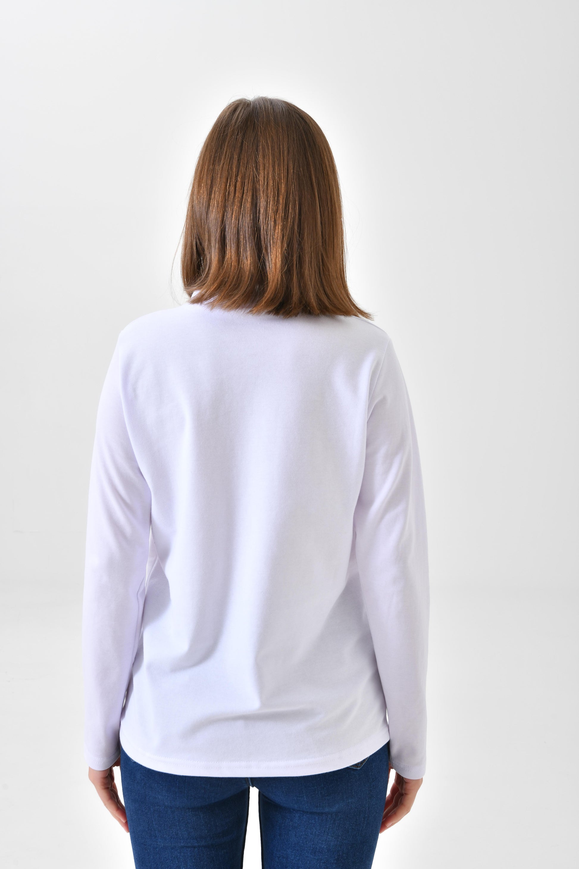 Balıkçı Yaka Uzun Kol Bluz - Beyaz