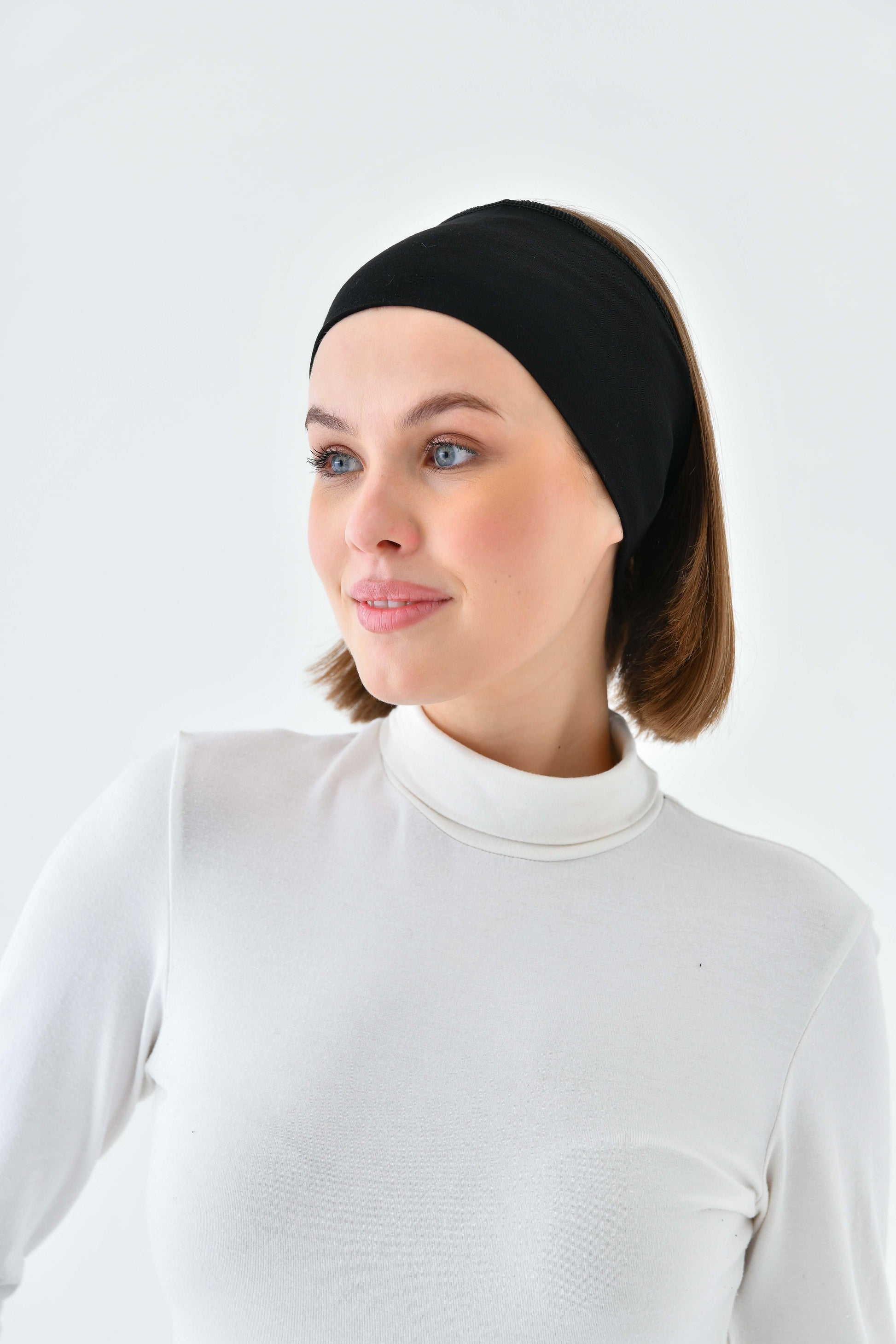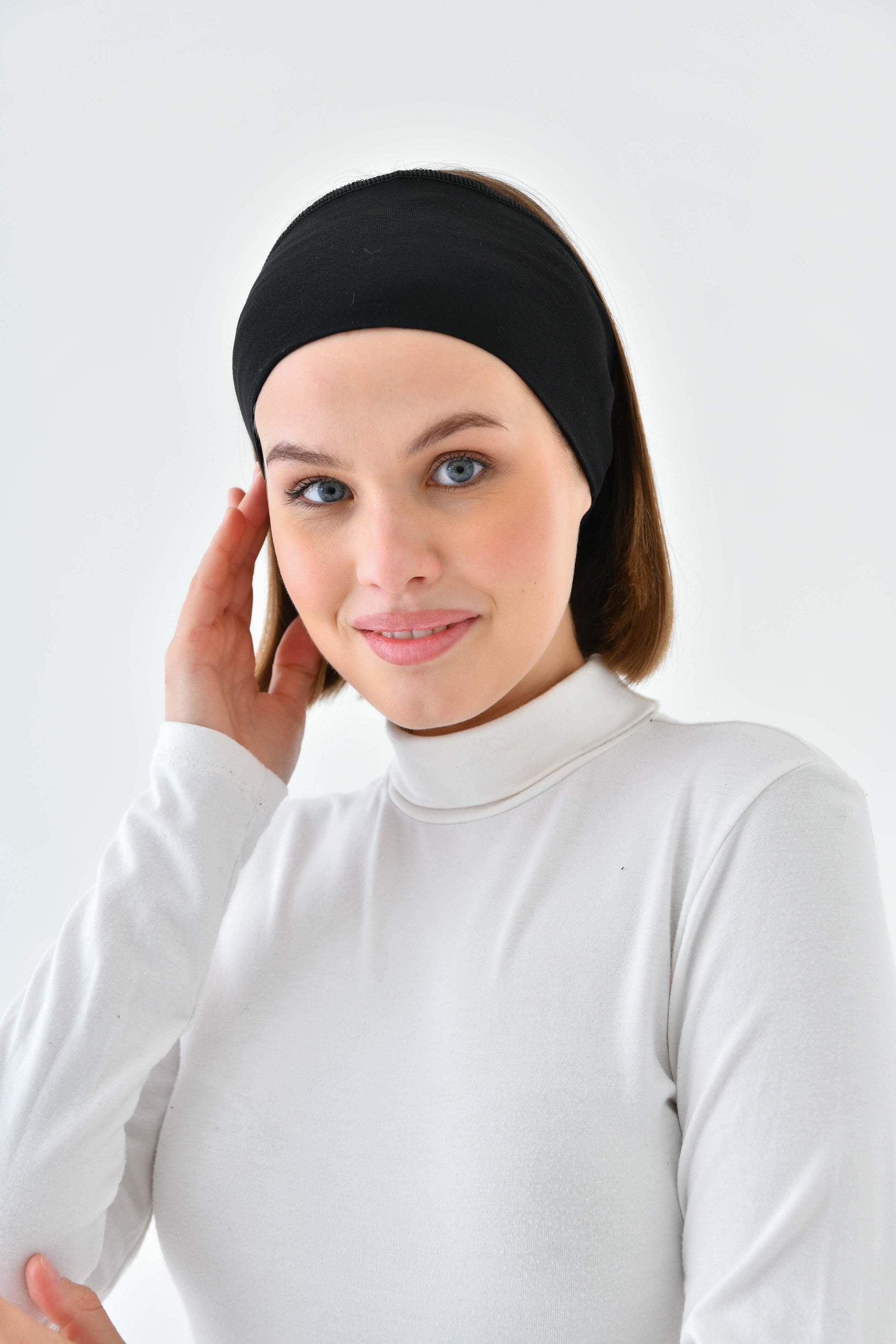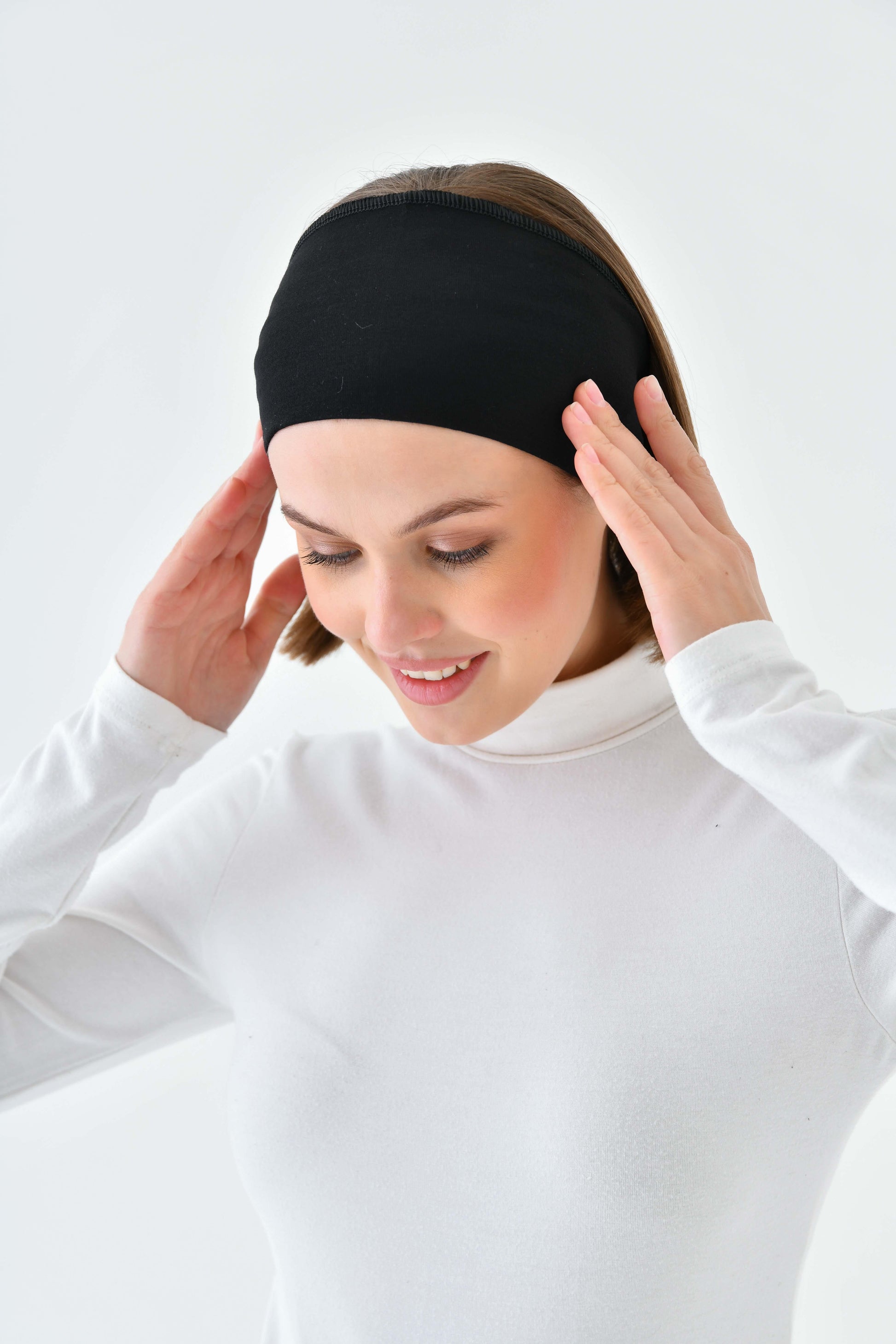 Klasik siyah rengiyle her kıyafete uyum sağlar, gündelik kullanımda veya başörtüsü altında bone olarak pratik bir çözüm sunar.