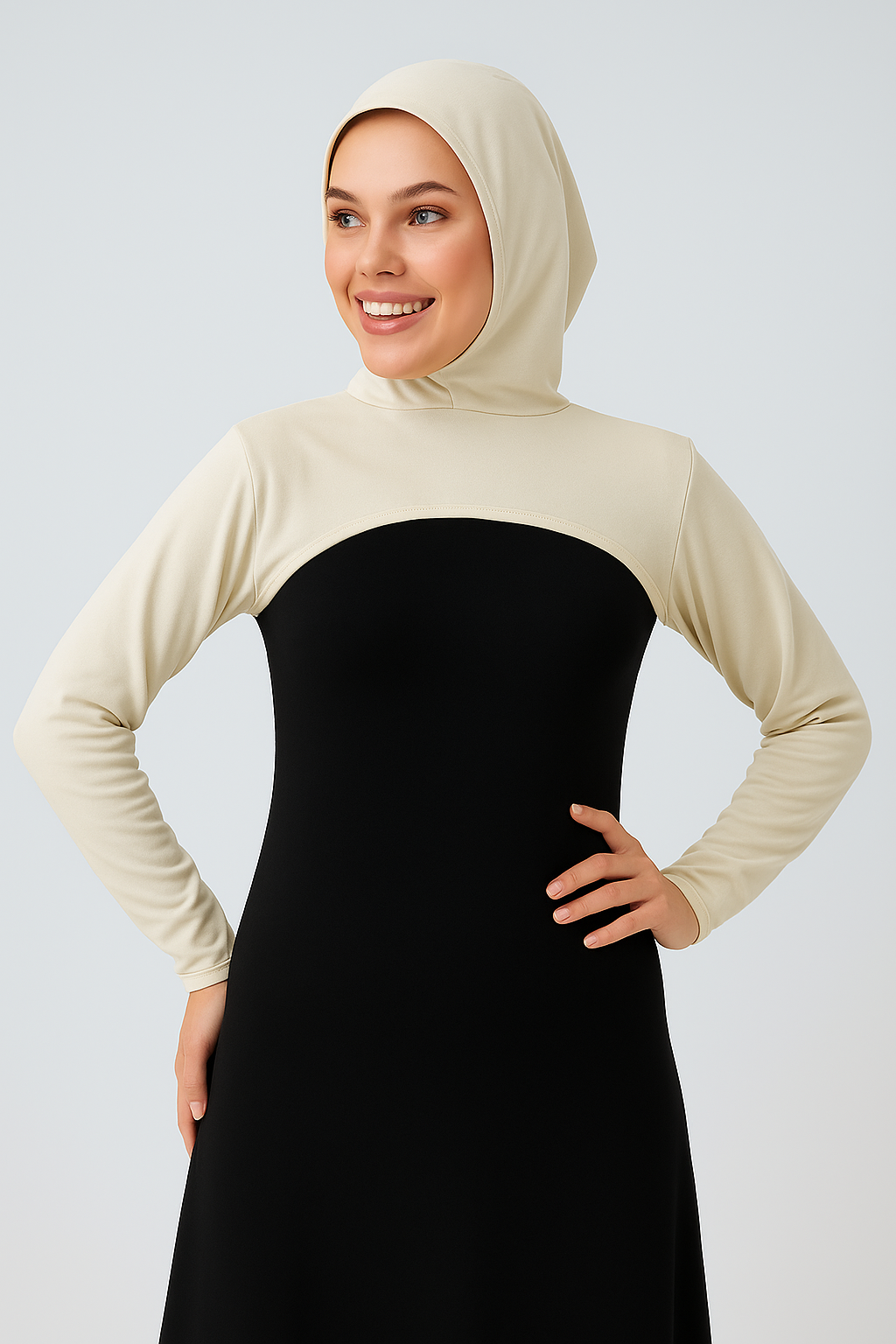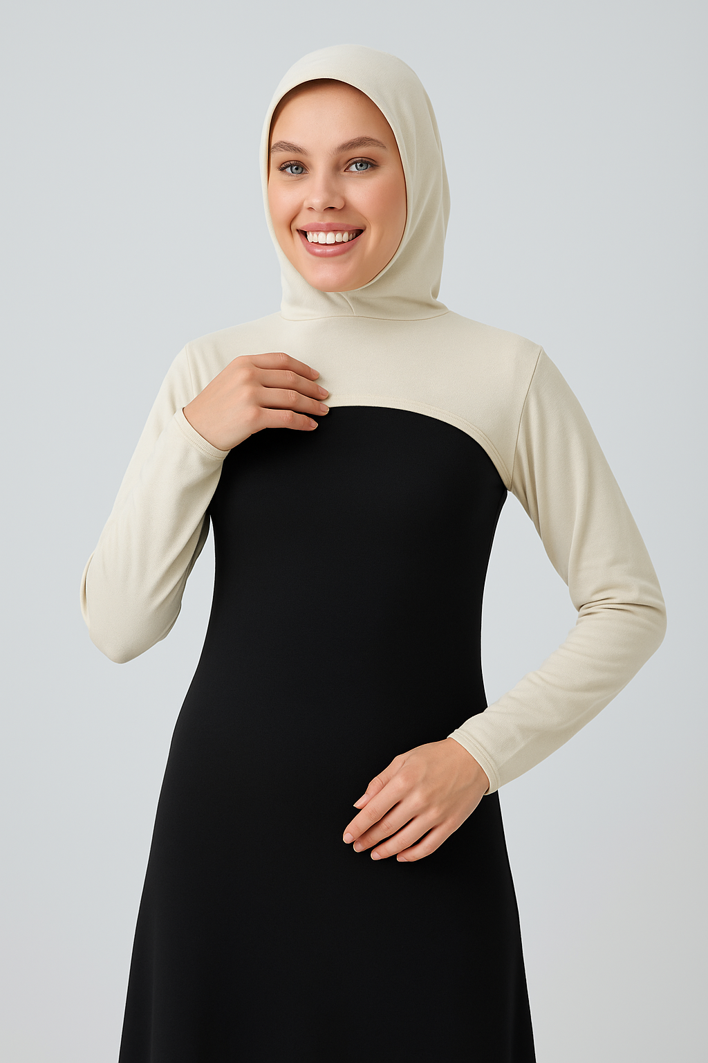 Boneli yapısı sayesinde şal veya eşarp altında kaymaz, toplanmaz ve sabit durur. Kısa kollu üstler, açık yakalı bluzlar ve tesettür dış giyimlerde içlik ihtiyacını tek hareketle tamamlar. Üstelik yumuşak, nefes alabilen ve esnek yapısı sayesinde gün boyu rahatlık hissi sunar.