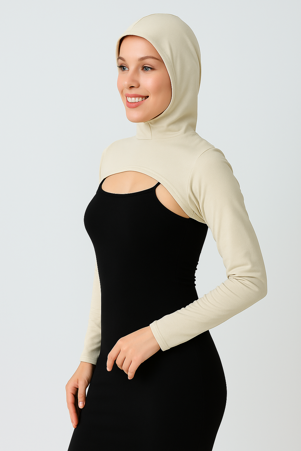 Günlük kombinlerinde hem şık, hem de pratik bir tamamlayıcı arayan kadınlar için tasarlandı! Mirach’ın Bej Boneli Boyunluklu Kolluk modeli, tek parçada boyunluk + kolluk + bone ihtiyacını çözen, konforlu ve zarif bir tasarımdır.