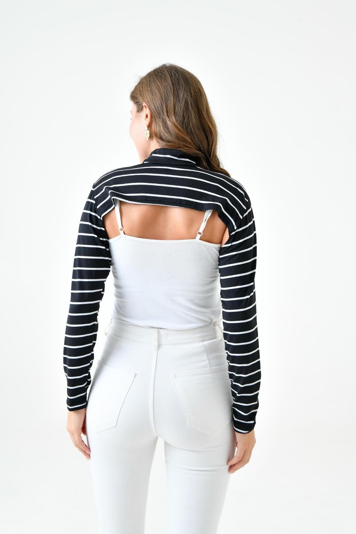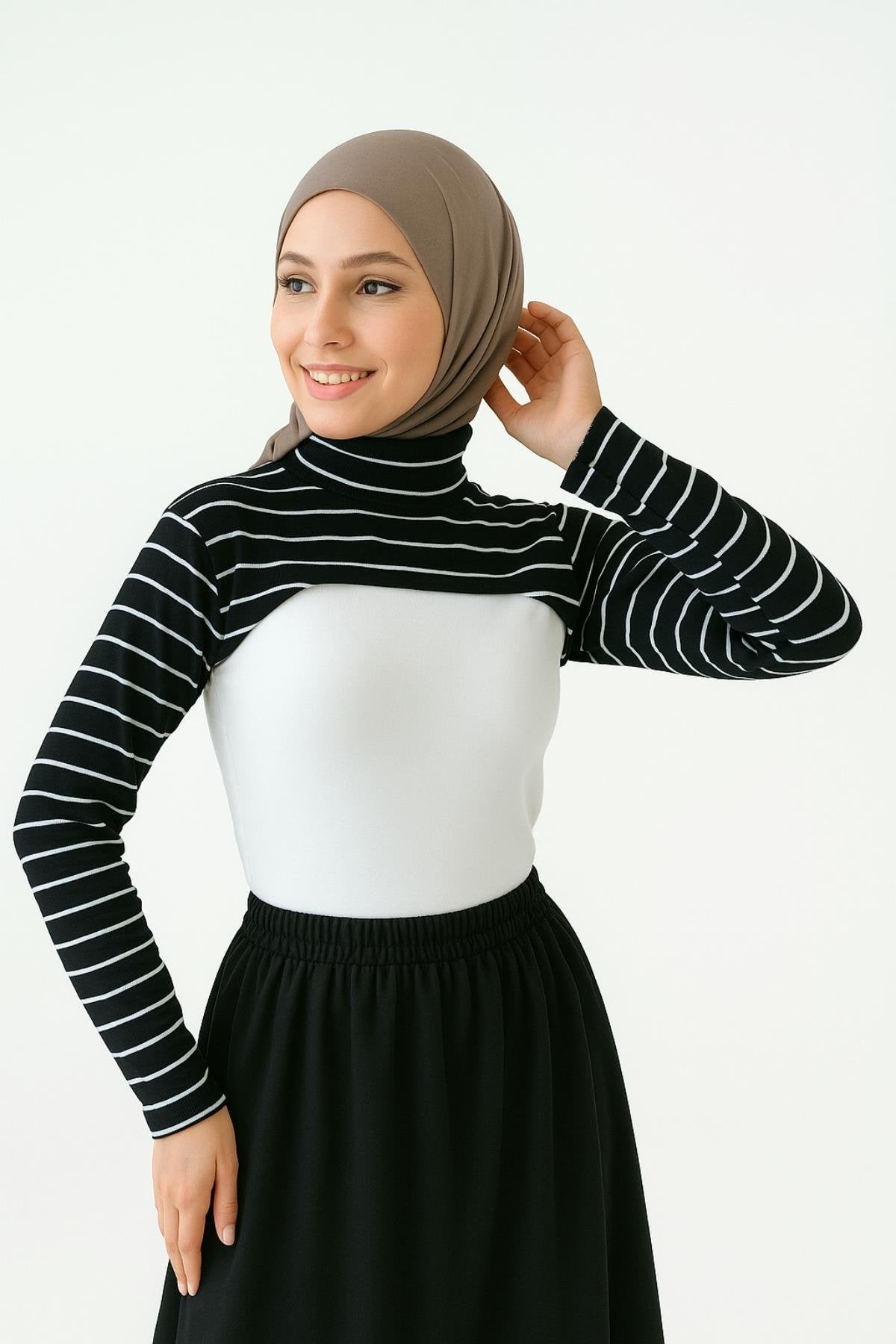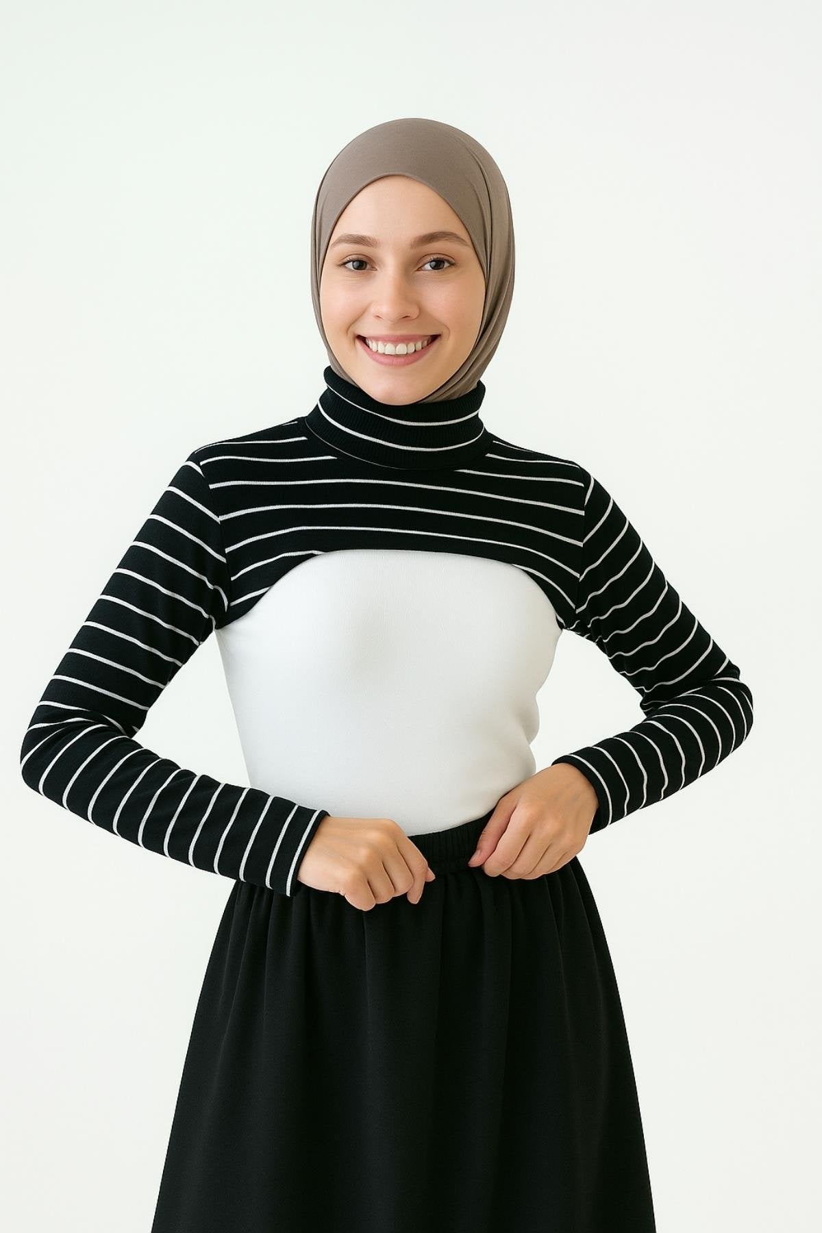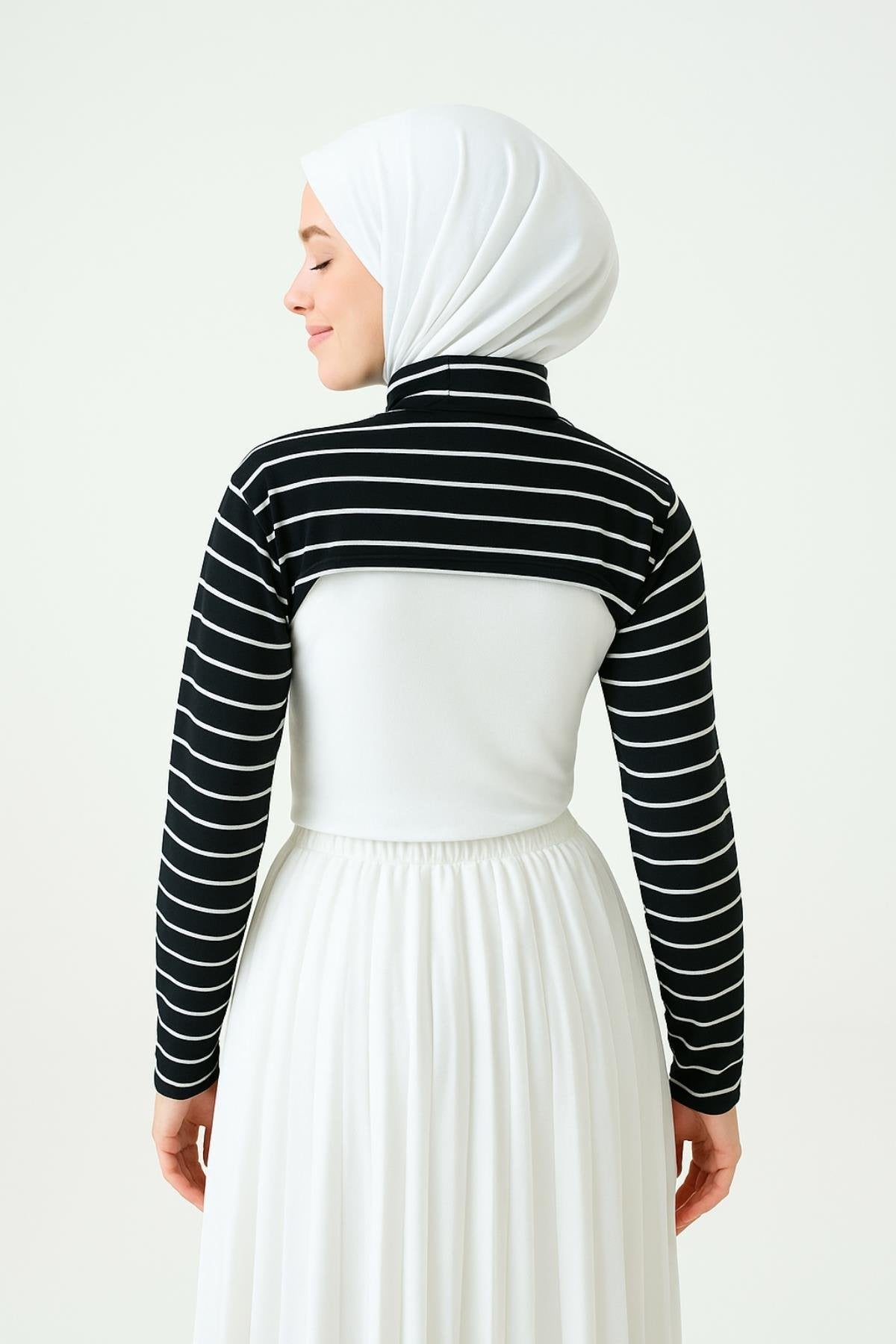 Çizgili Dik Yaka Boyunluklu Kolluk - Siyah