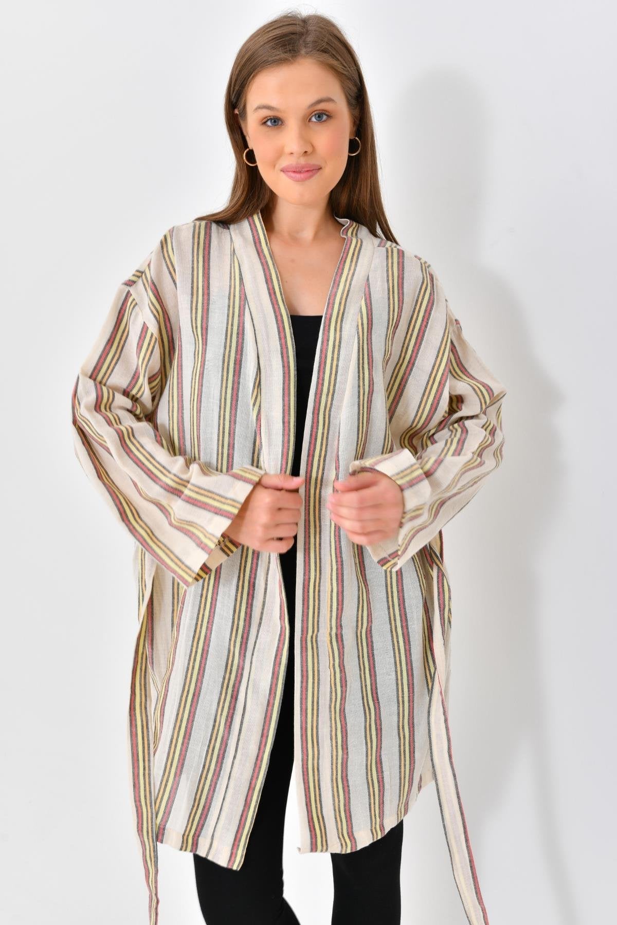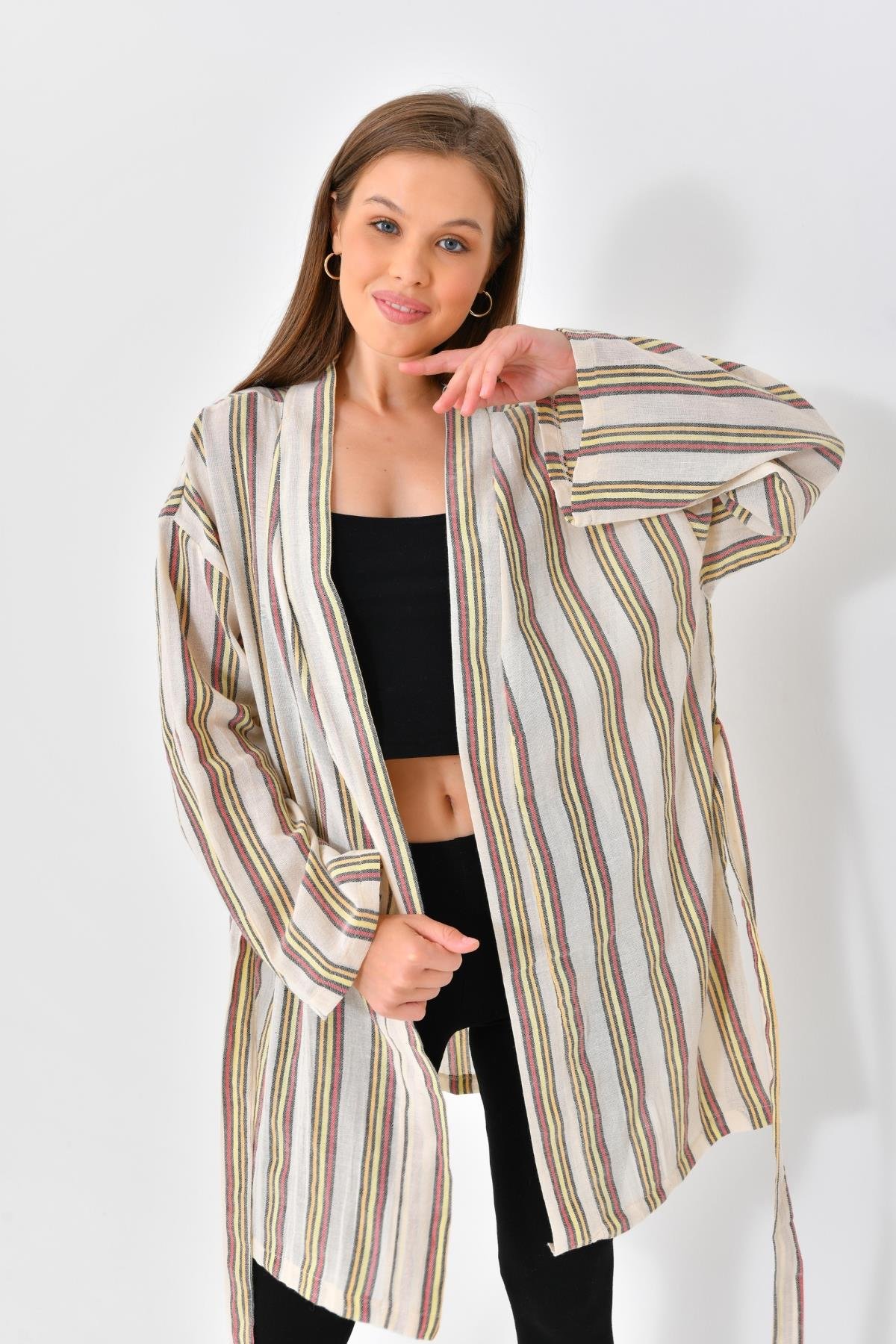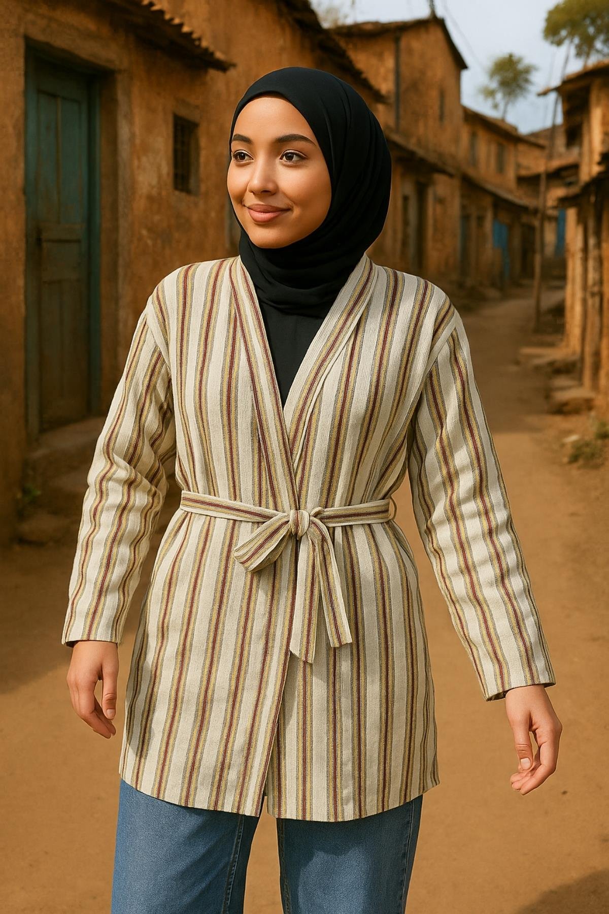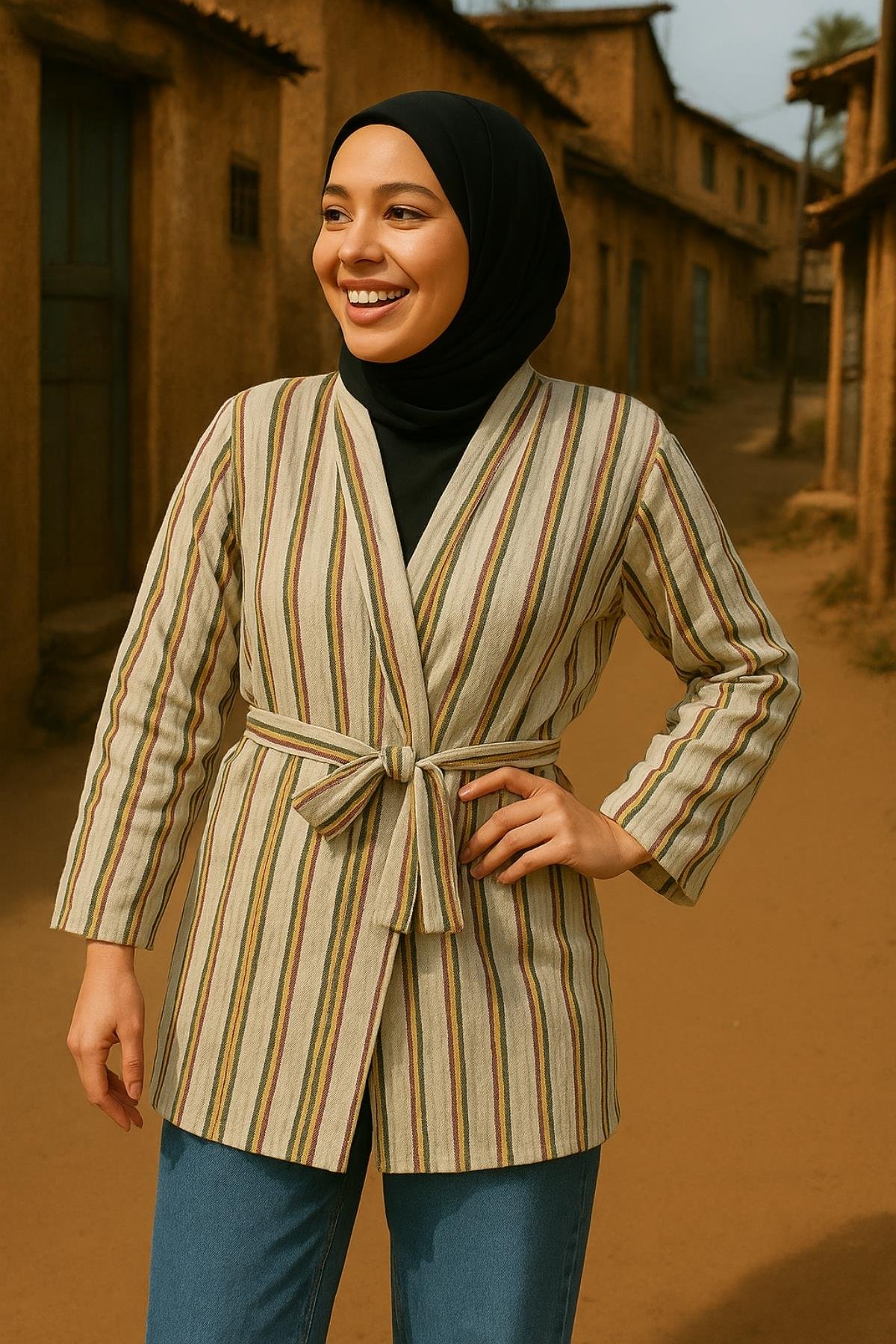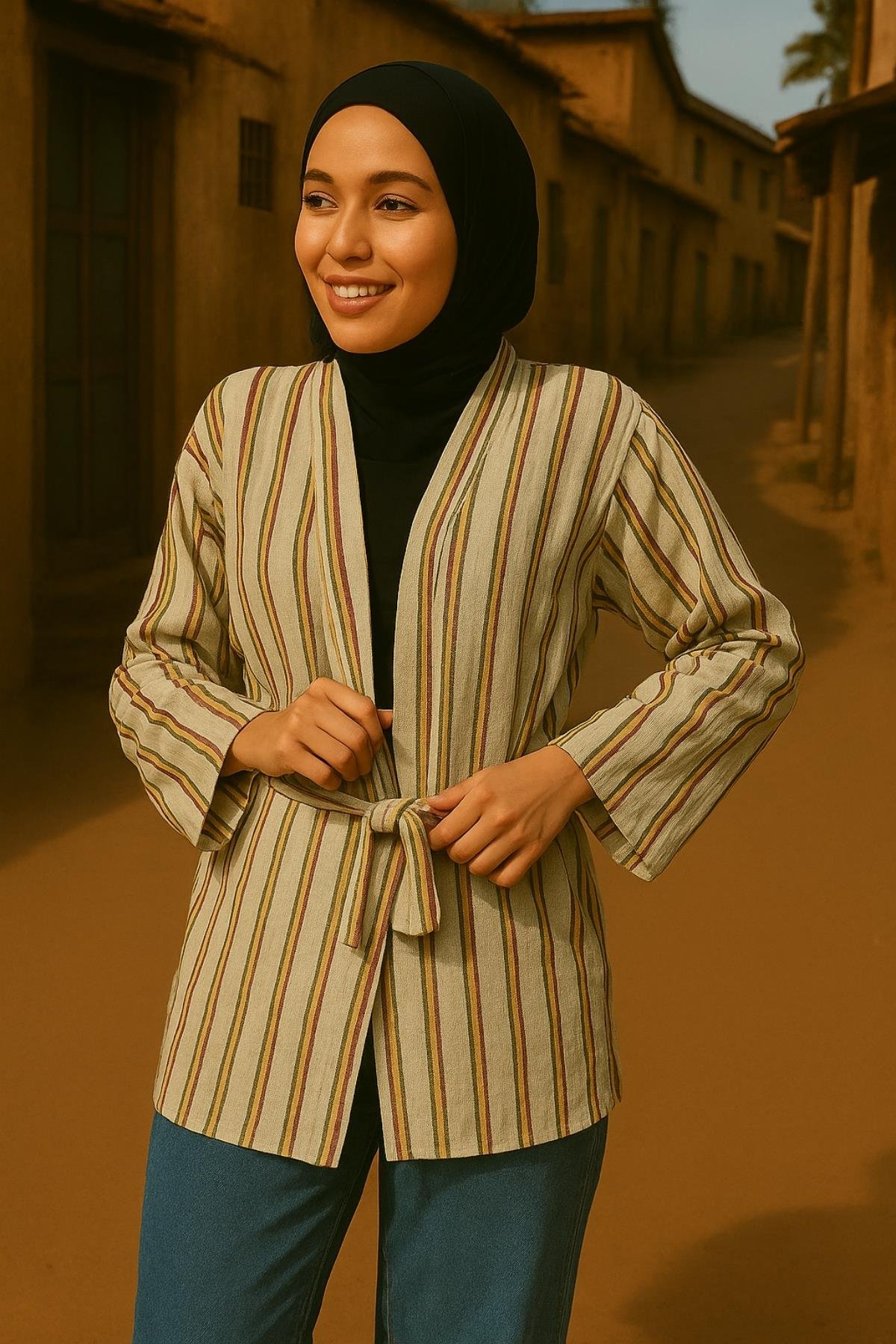 Tarzınızı ve zarafetinizi ön plana çıkaracak olan bu el dokuması kimono, Mirach Textile'den özel olarak tasarlanmıştır. Her biri ustalıkla dokunmuş olan bu kimono, özgün deseni ve yüksek kaliteli malzemesiyle göz kamaştırıyor.