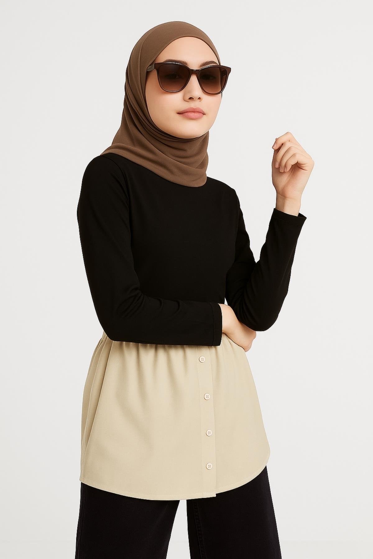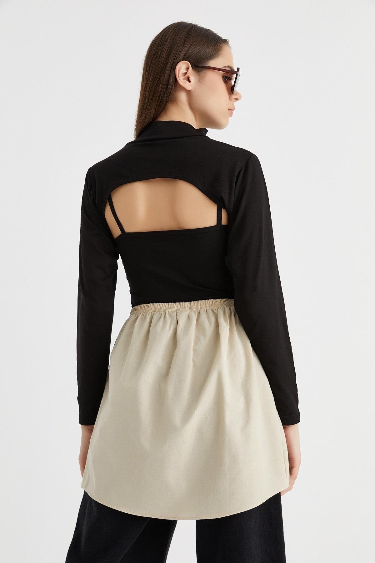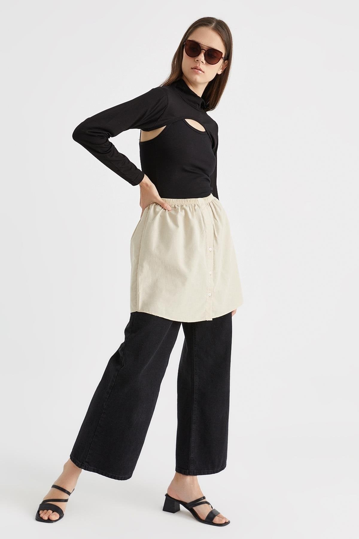 Modern ve güçlü bir stil arayanların favorisi Bej Gömlek Etek, kısa üstlerle kombinlenmek üzere tasarlanmış özgün ve tamamlayıcı bir parçadır. Şık gömlek formu sayesinde bel, kalça ve basen bölgesini zarif şekilde kapatarak hem konfor hem de stil sunar. Crop üstler, kısa bluzlar, bodyler ve trikolarla kusursuz uyum sağlayarak güçlü bir görünüm oluşturur.