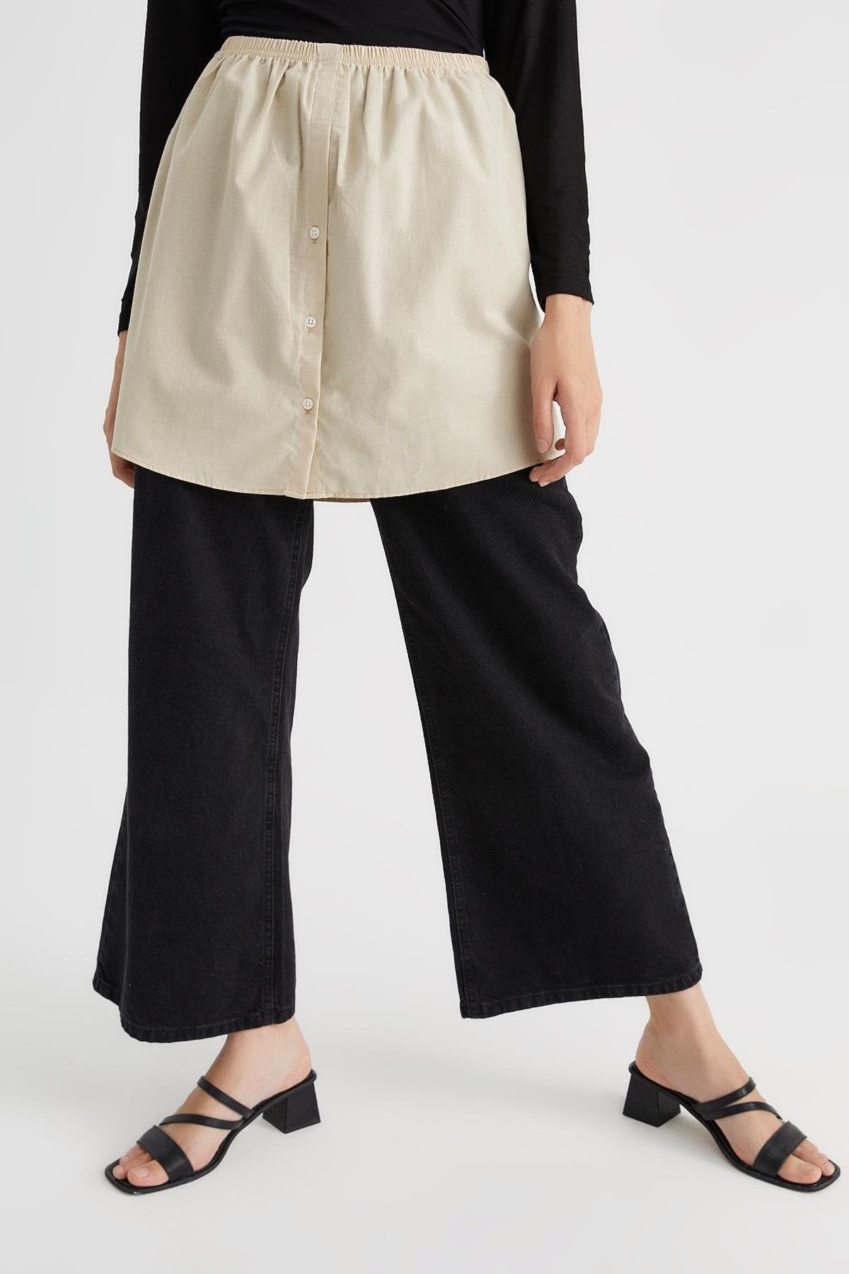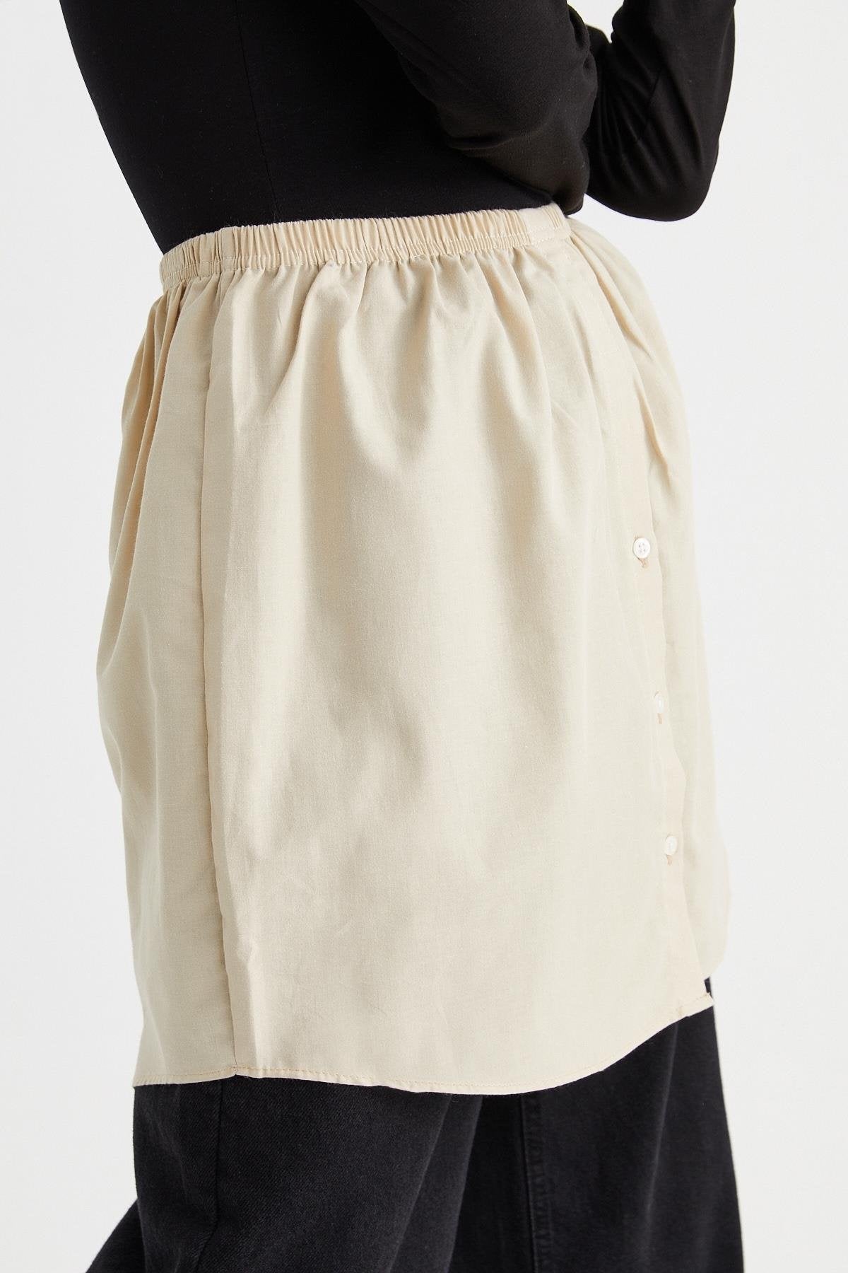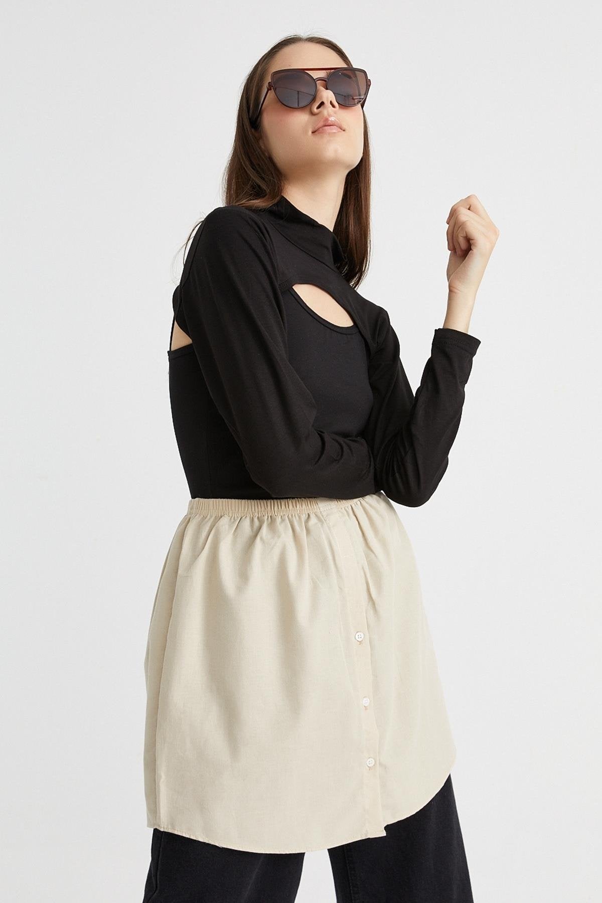 Kaliteli poplin kumaşı hem formunu korur hem de düzenli bir görünüm sunar. Stilini yükselten detaylara önem veriyorsan, bu gömlek eteği mutlaka denemelisin.