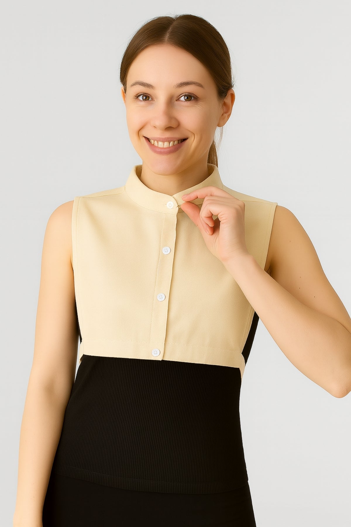 - Kullanım alanı: Triko, kazak, sweatshirt ve elbiseler altında gömlek etkisi verir