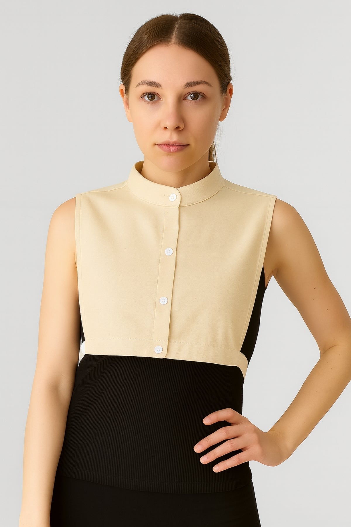 Hakim yaka formu ile klasik ve modern tarzı bir arada sunar. Kazak, sweatshirt, triko ve elbiselerin altına kolayca uyum sağlar. Böylece katmanlı stil oluşturmak istediğinizde tam gömlek giymeden şık ve düzenli bir yaka görünümü elde edebilirsiniz. Krem rengi sayesinde tüm renklerle kolayca kombinlenir ve her dolaba uyum sağlar.