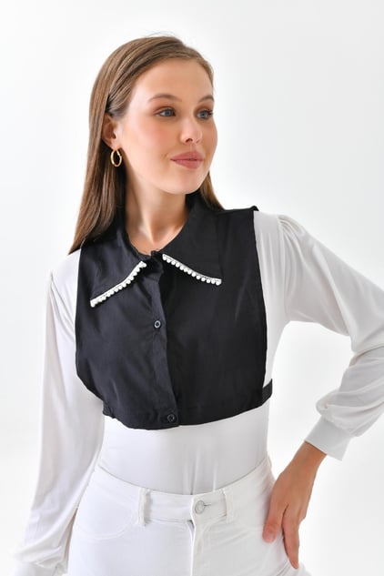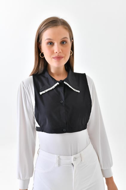 İncili gömlek yakası - Siyah | Outlet