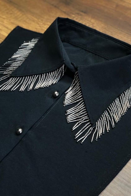 Işıltılı gölge gömlek yakası - Siyah | Outlet