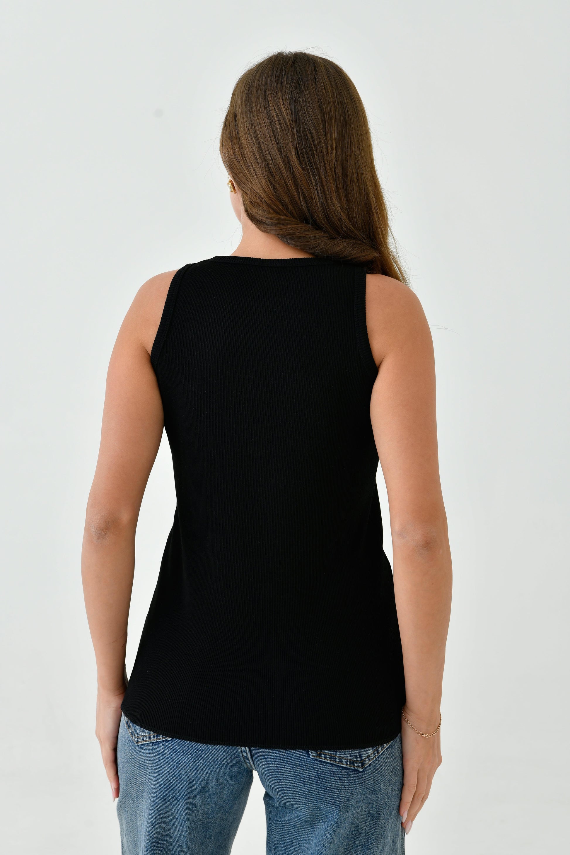 Kalın Askılı Fitilli Kolsuz Basic İçlik – Siyah