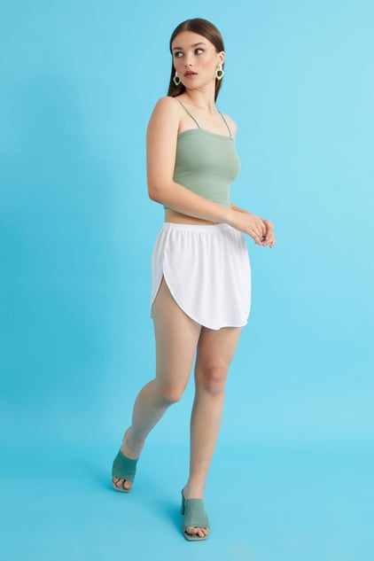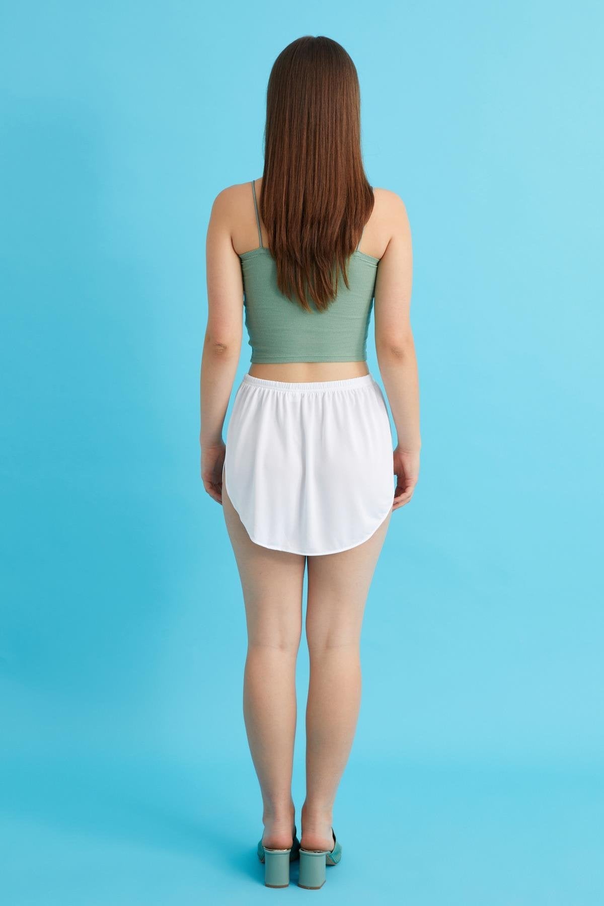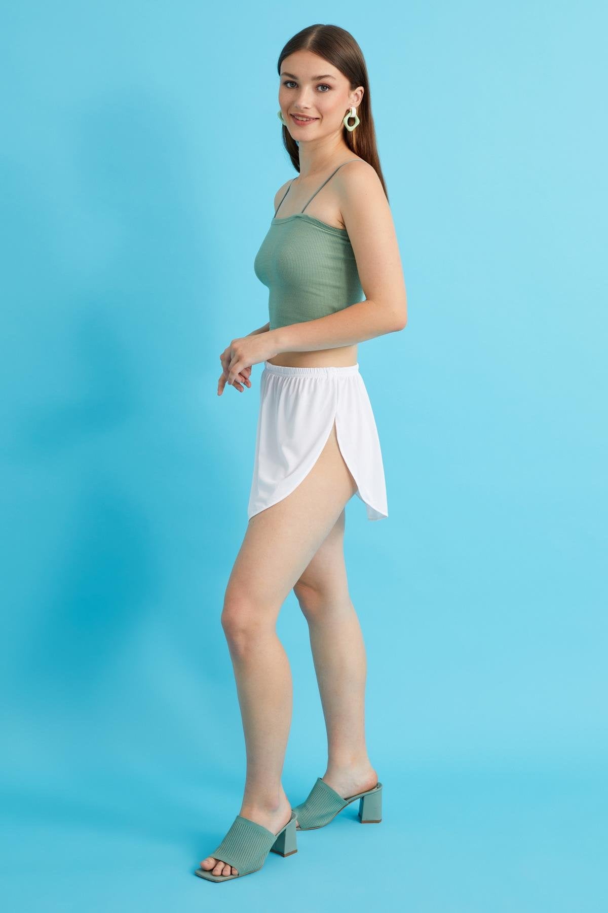 Kavisli kesimi sayesinde vücudu estetik şekilde sararken, lastikli bel yapısı kolayca oturur ve rahatlık sağlar. Klasik beyaz rengiyle tüm mayo ve bikini üstleriyle mükemmel uyum sağlar.