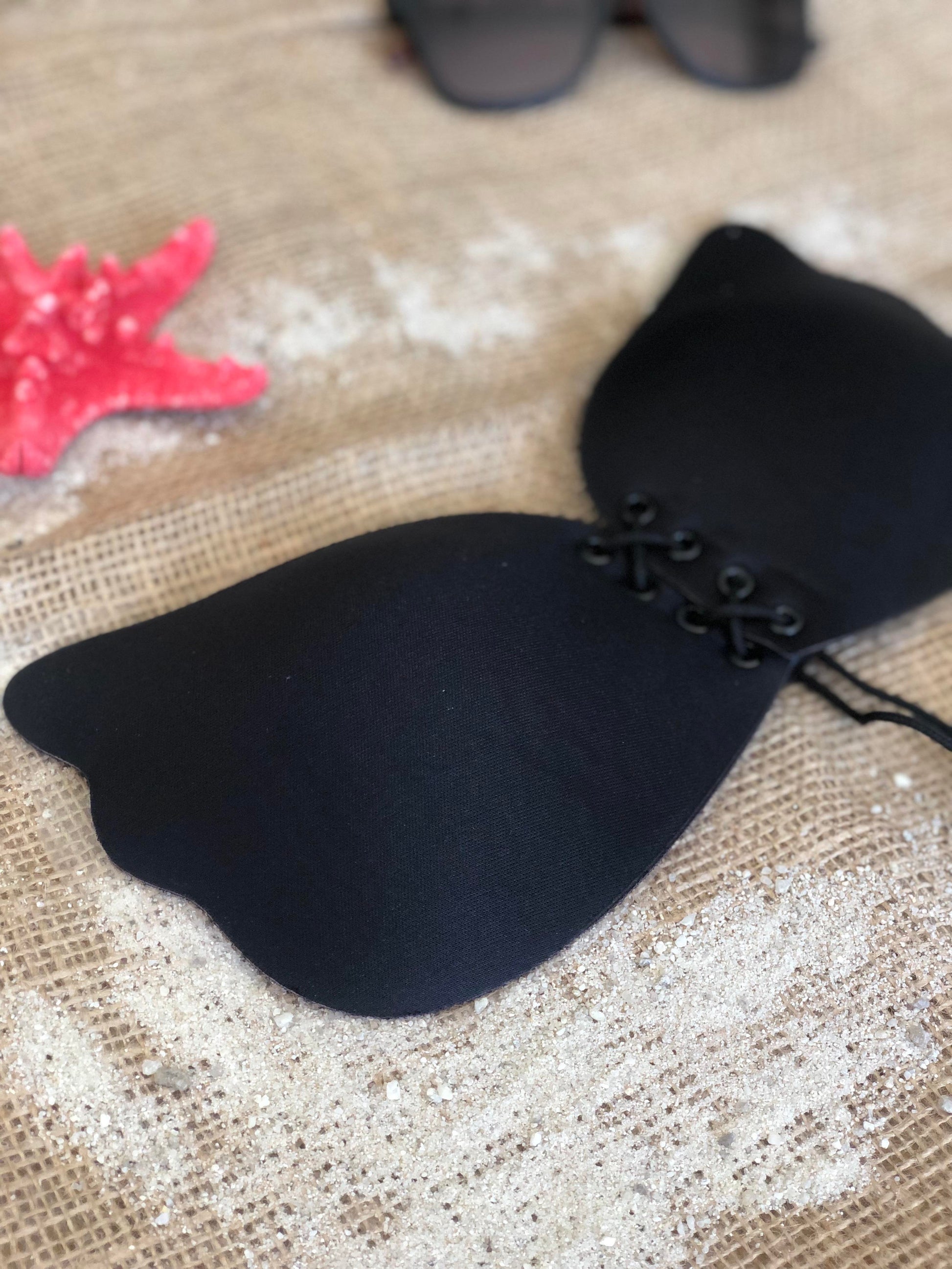 Mirach Textile’in özel tasarımı olan Siyah Kelebek Sütyen, yapışkanlı ve elastik yapısıyla hem estetik hem de konforlu bir kullanım sunar.