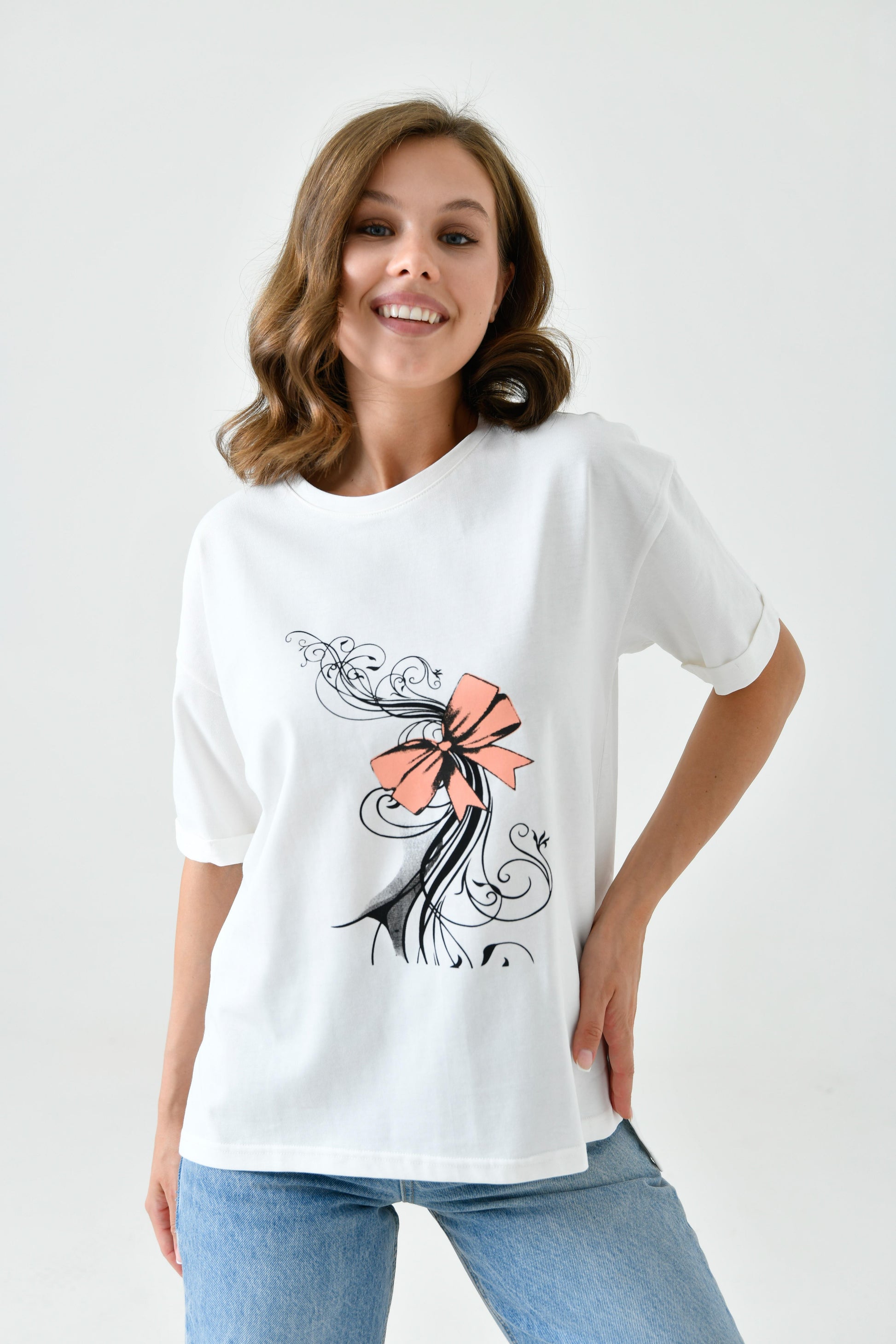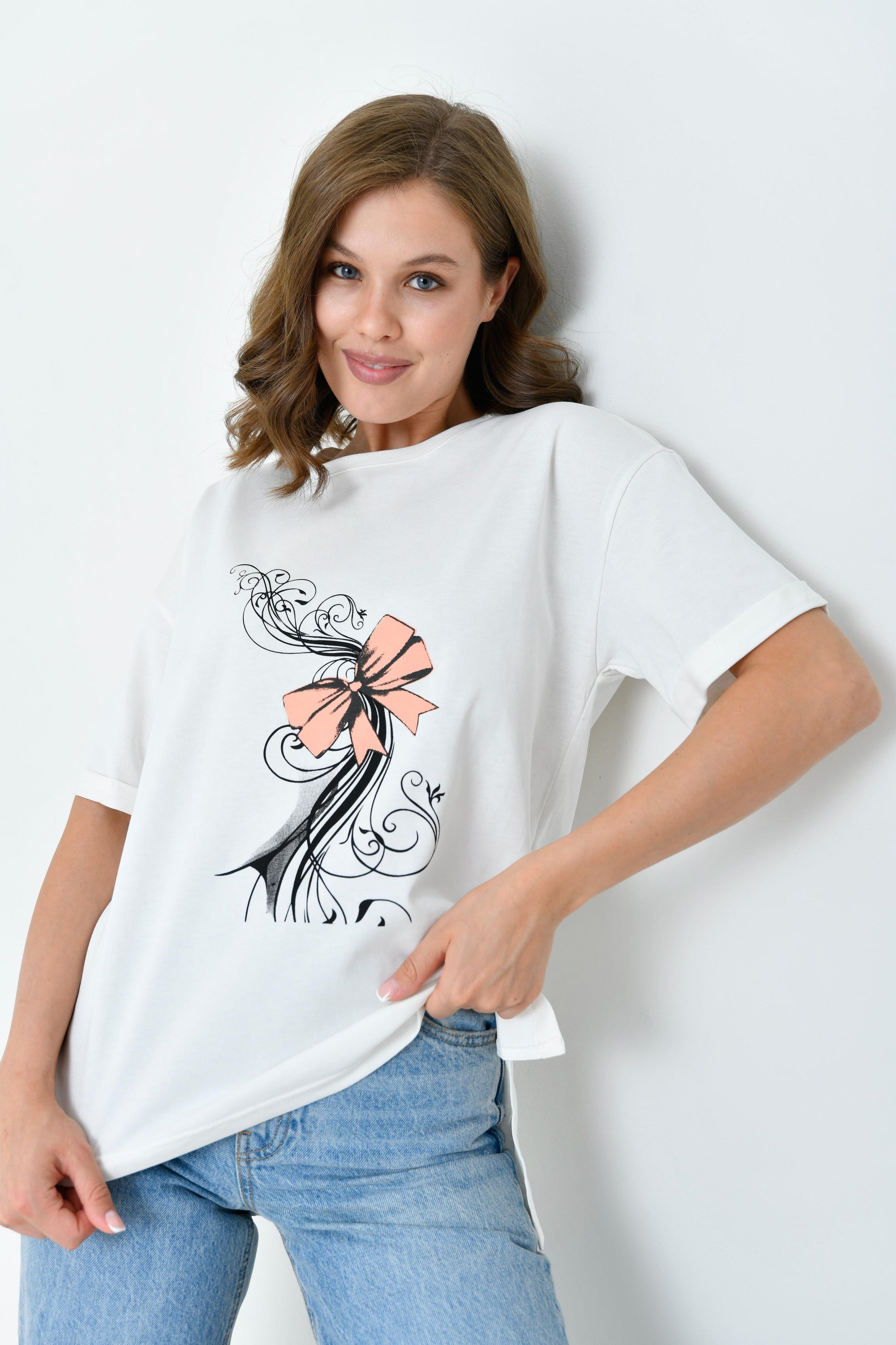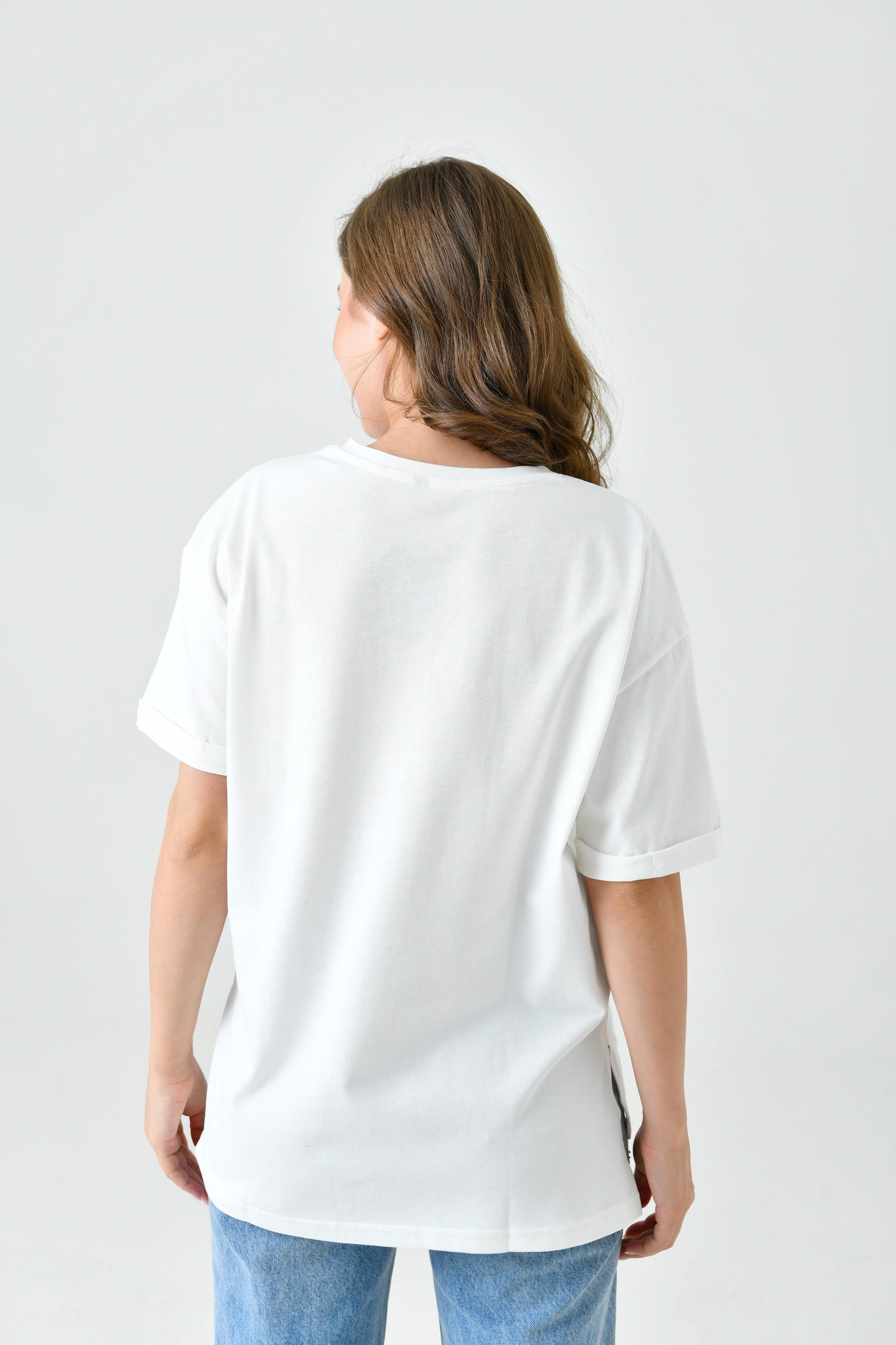 Kısa Kollu Pamuklu Tişört - Beyaz