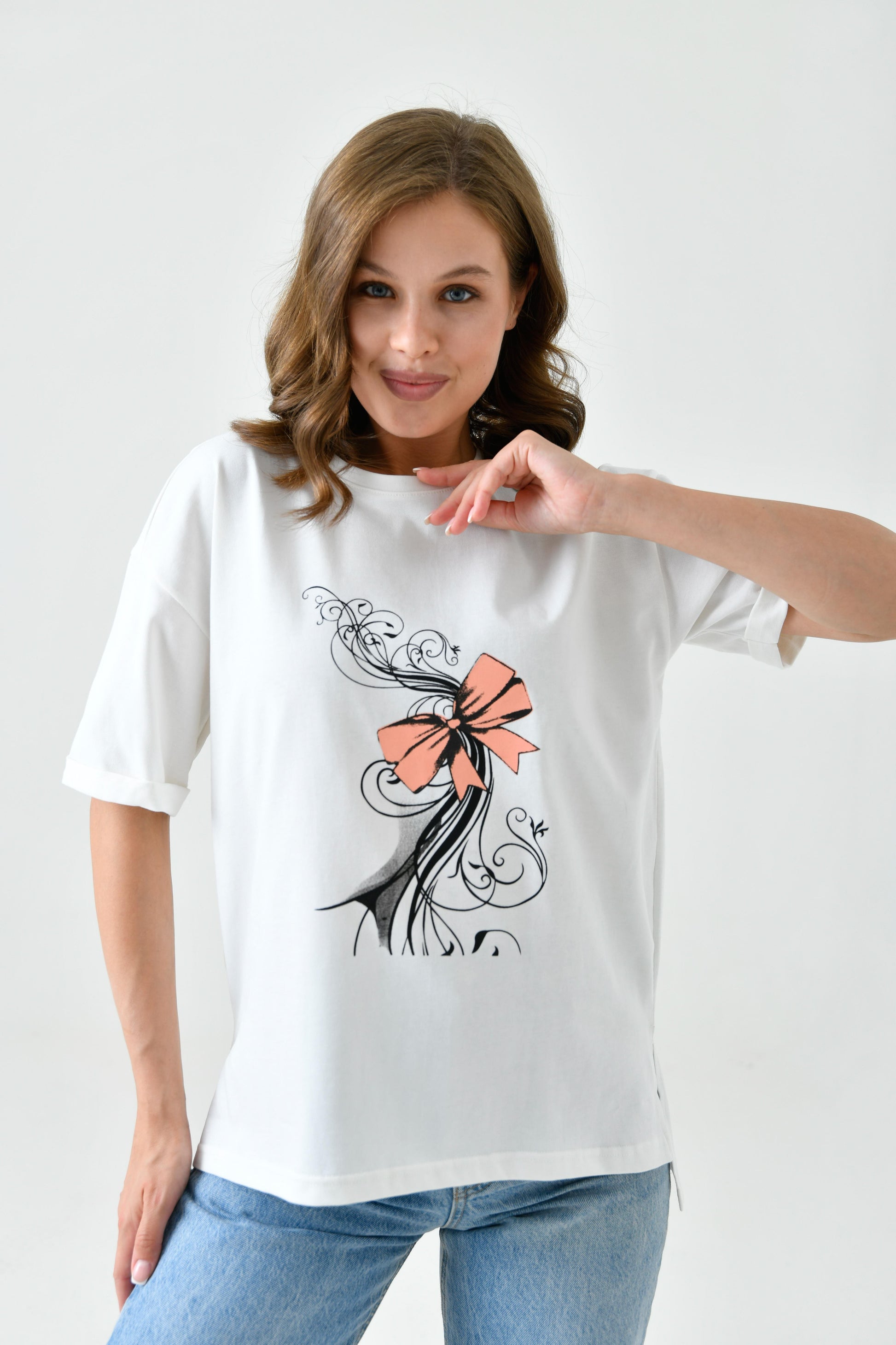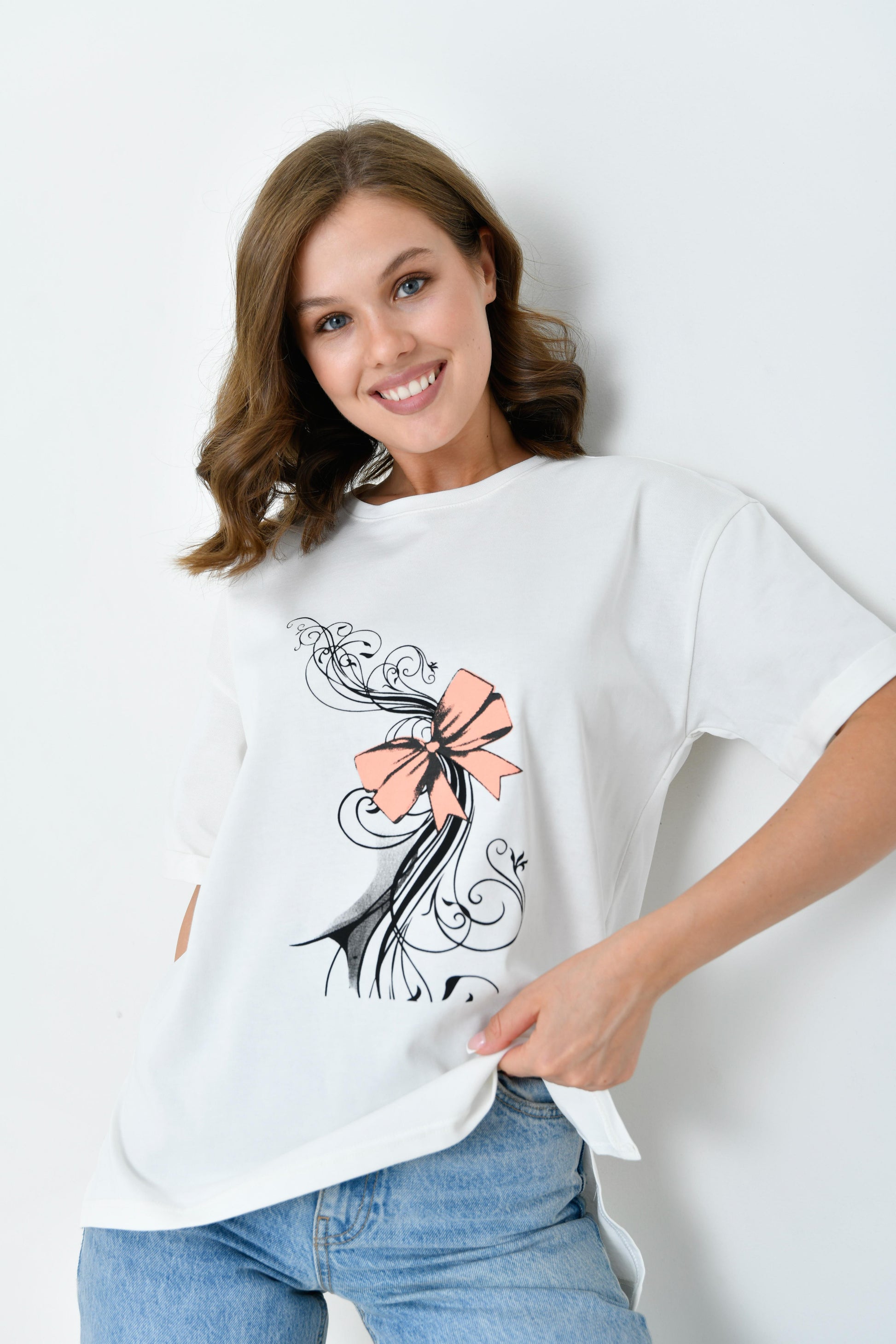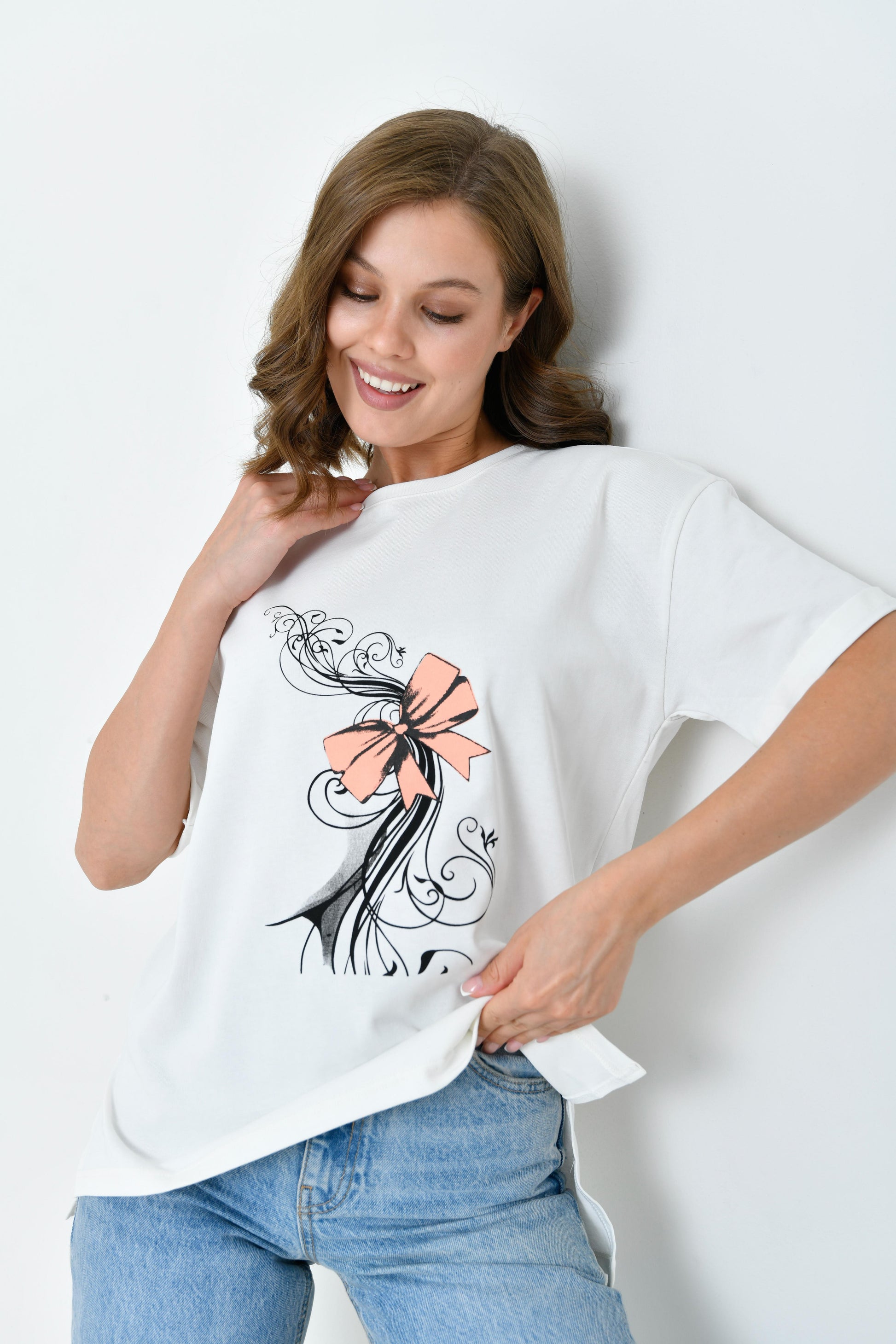 Kısa Kollu Pamuklu Tişört - Beyaz