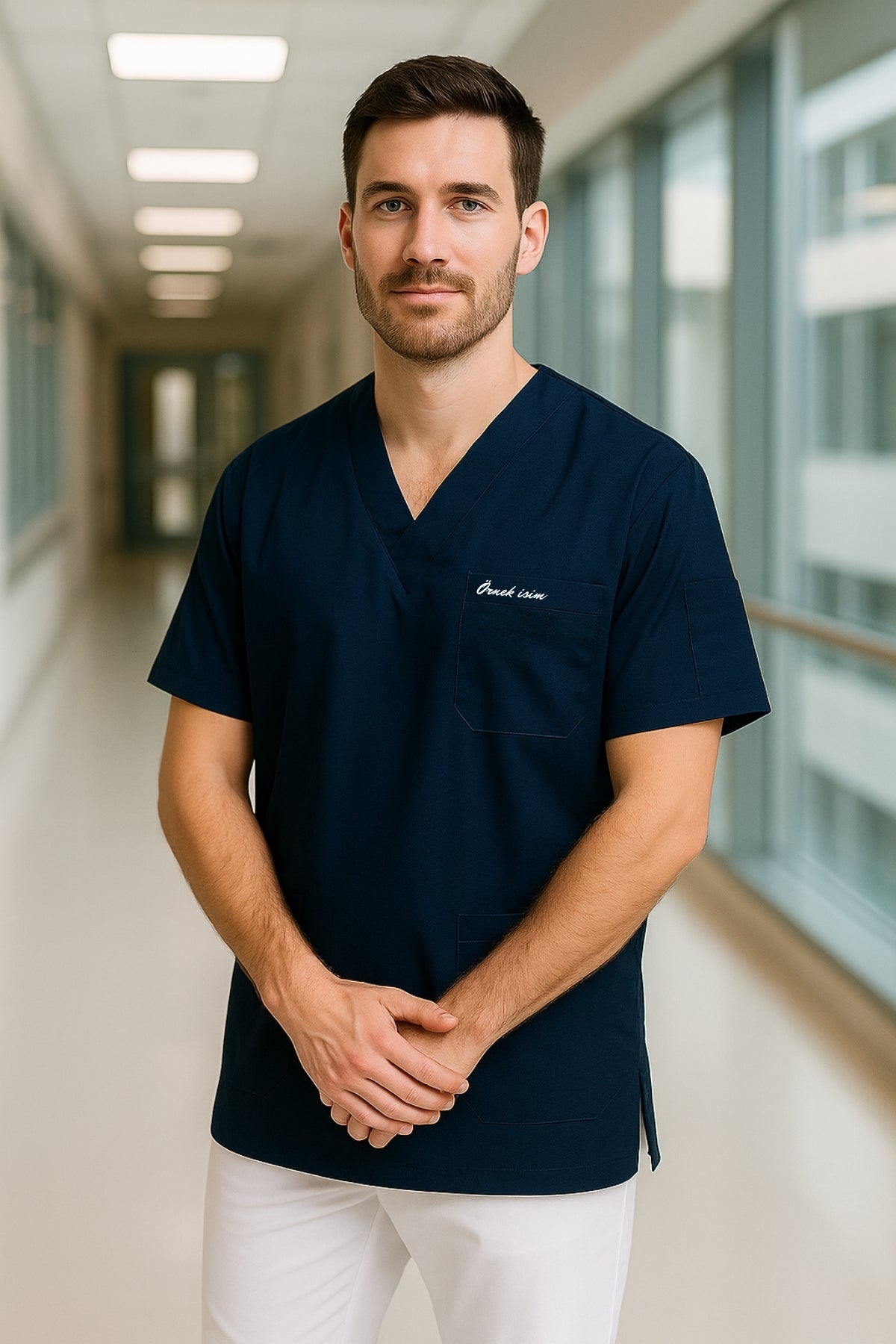 Mirach Med Kişiye Özel İsimli 4 Cepli Scrubs Forma ile hastane ve klinik ortamında profesyonel ve özgün bir görünüm elde edin.
