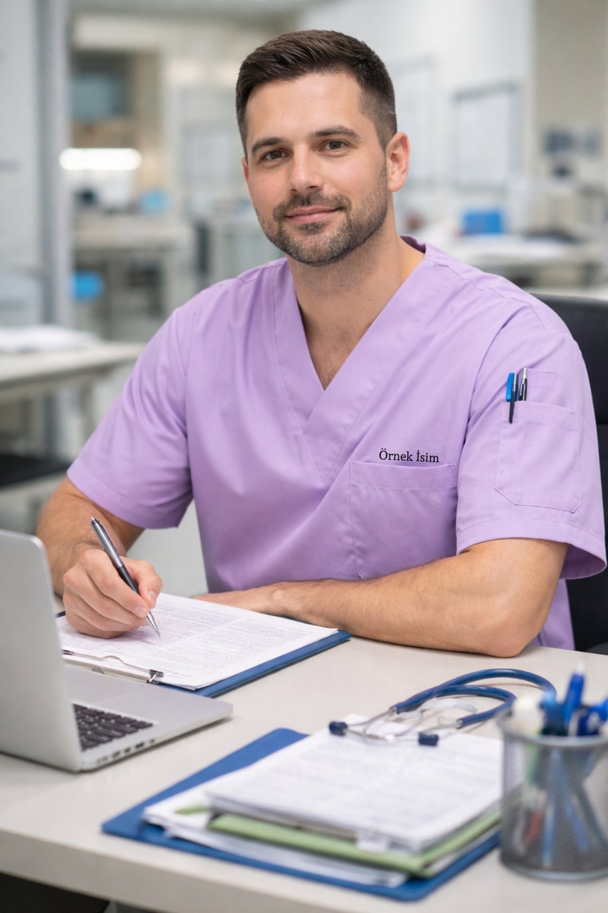 Mirach Med Kişiye Özel İsimli 4 Cepli Scrubs Forma ile hastane ve klinik ortamında profesyonel ve özgün bir görünüm elde edin.