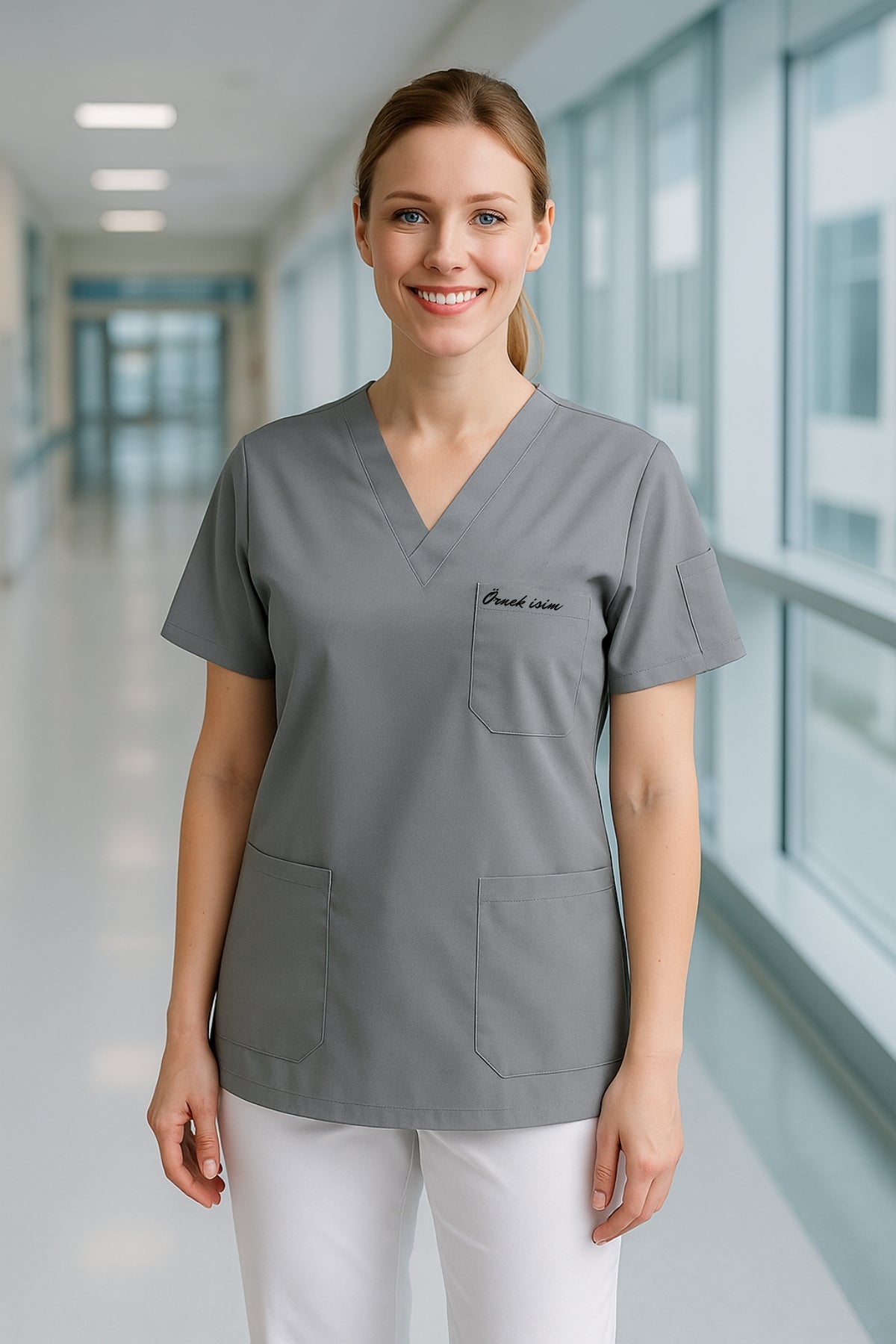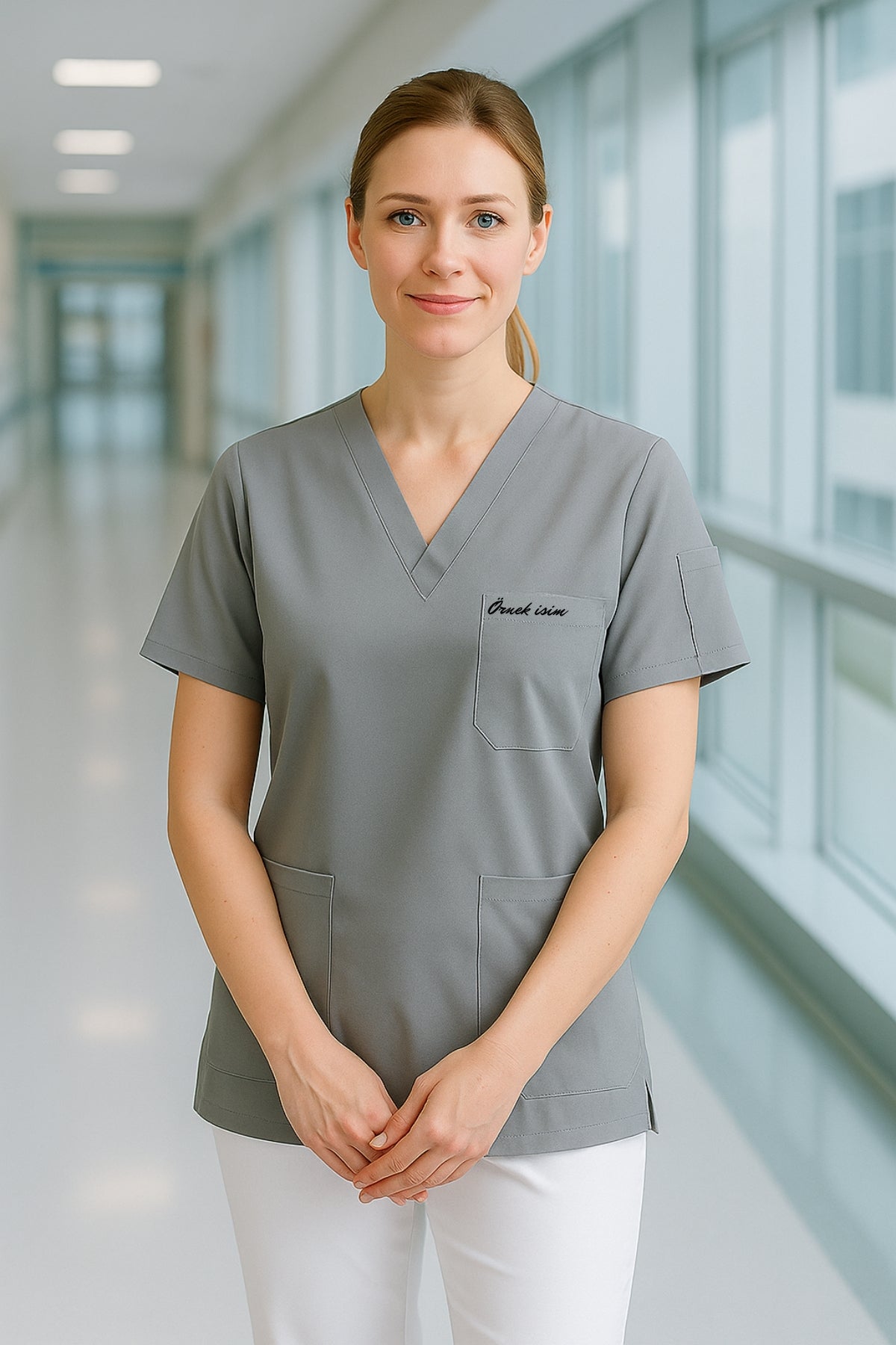 Mirach Med Kişiye Özel İsimli 4 Cepli Scrubs Forma ile hastane ve klinik ortamında profesyonel ve özgün bir görünüm elde edin.