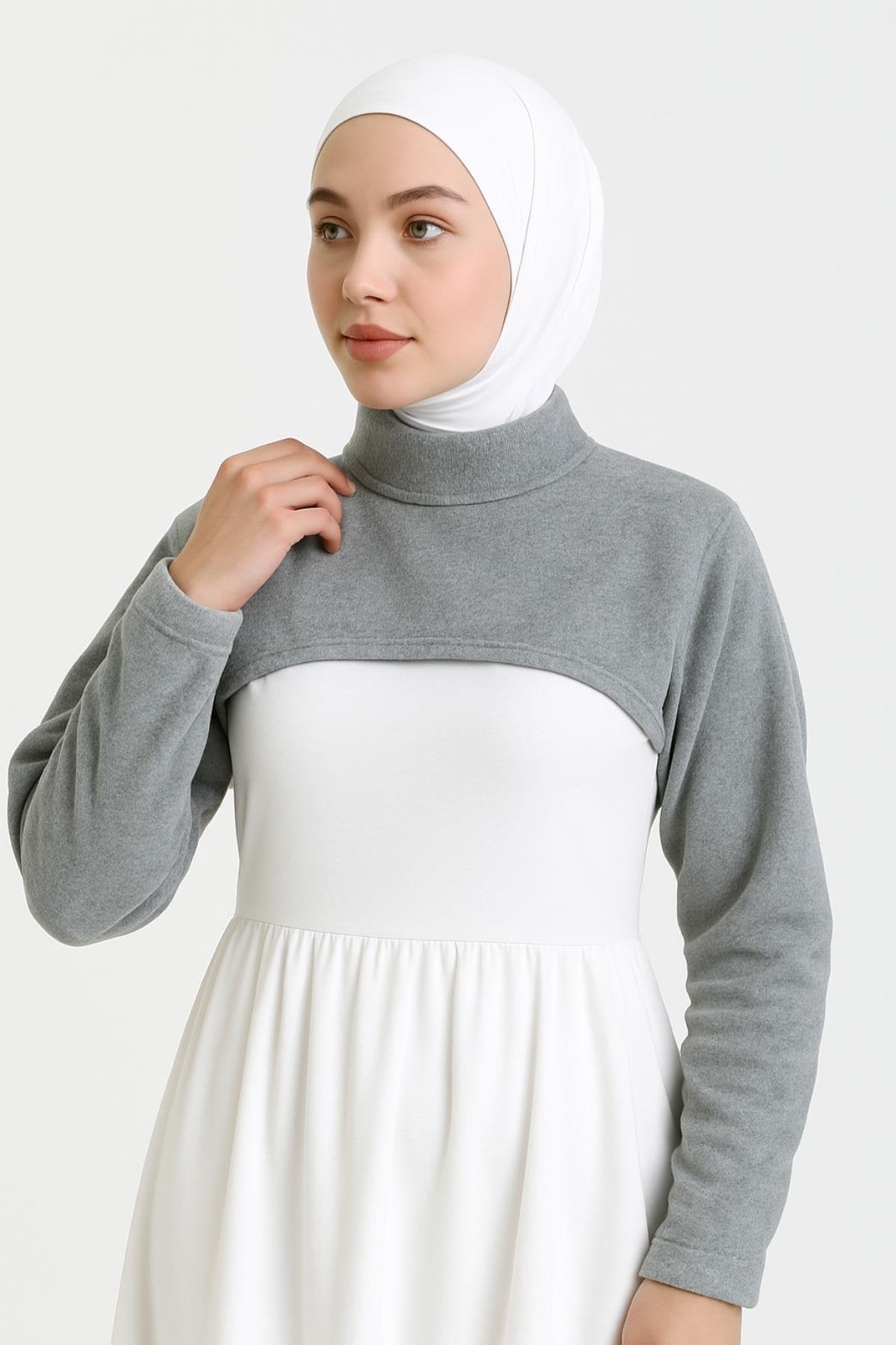 Kışlık Polar Dik Yaka Boyunluklu Kolluk - Gri