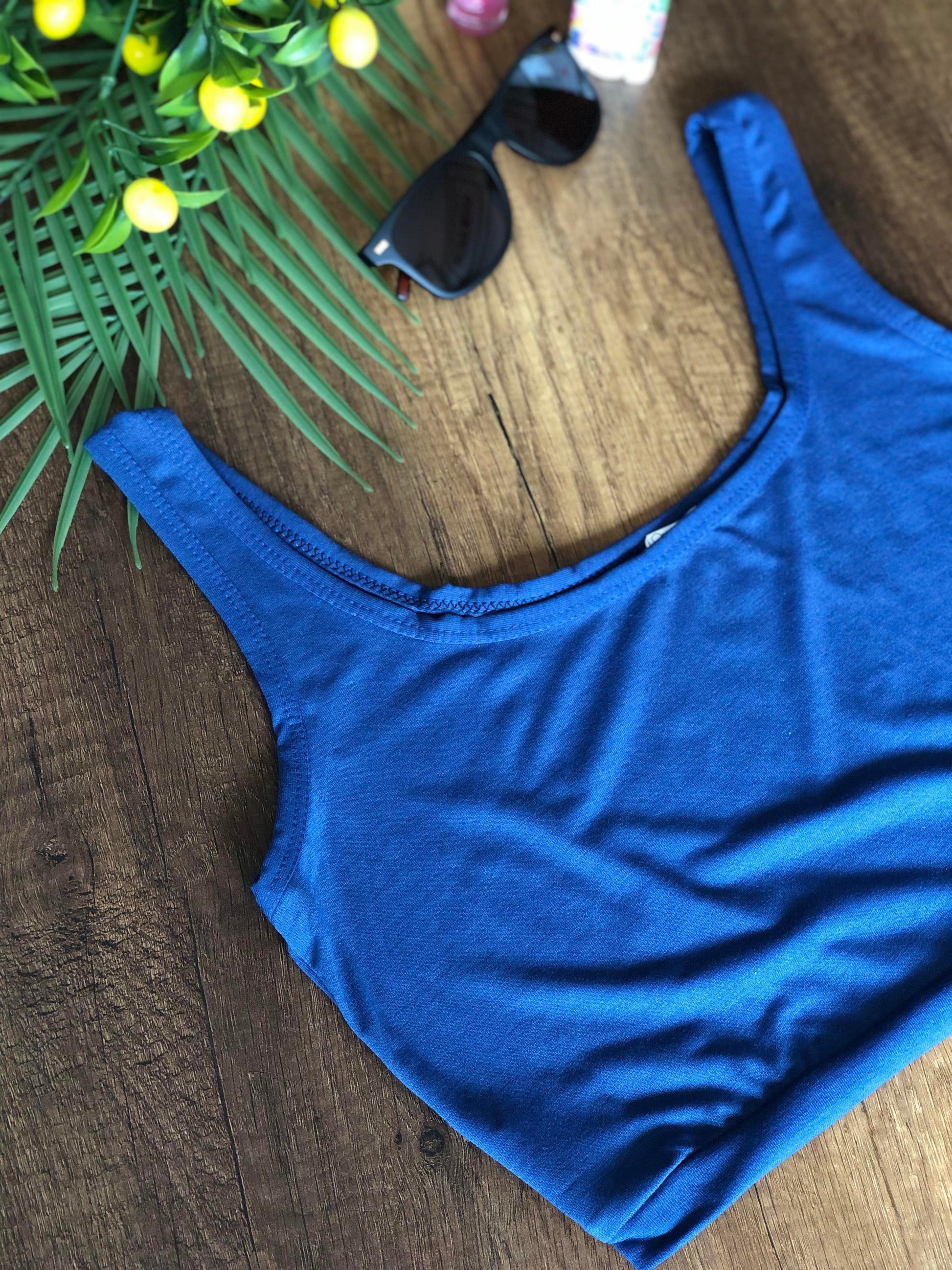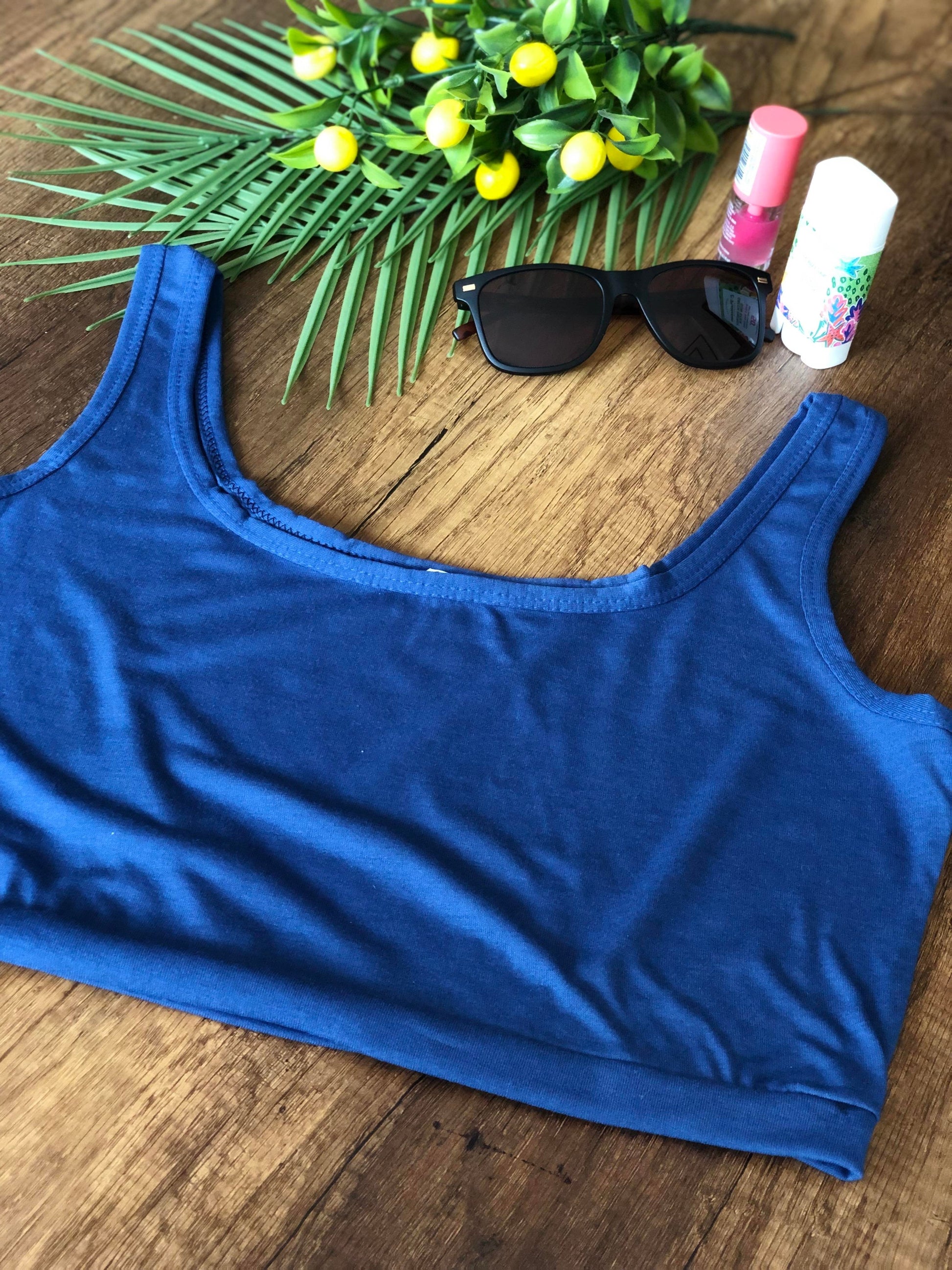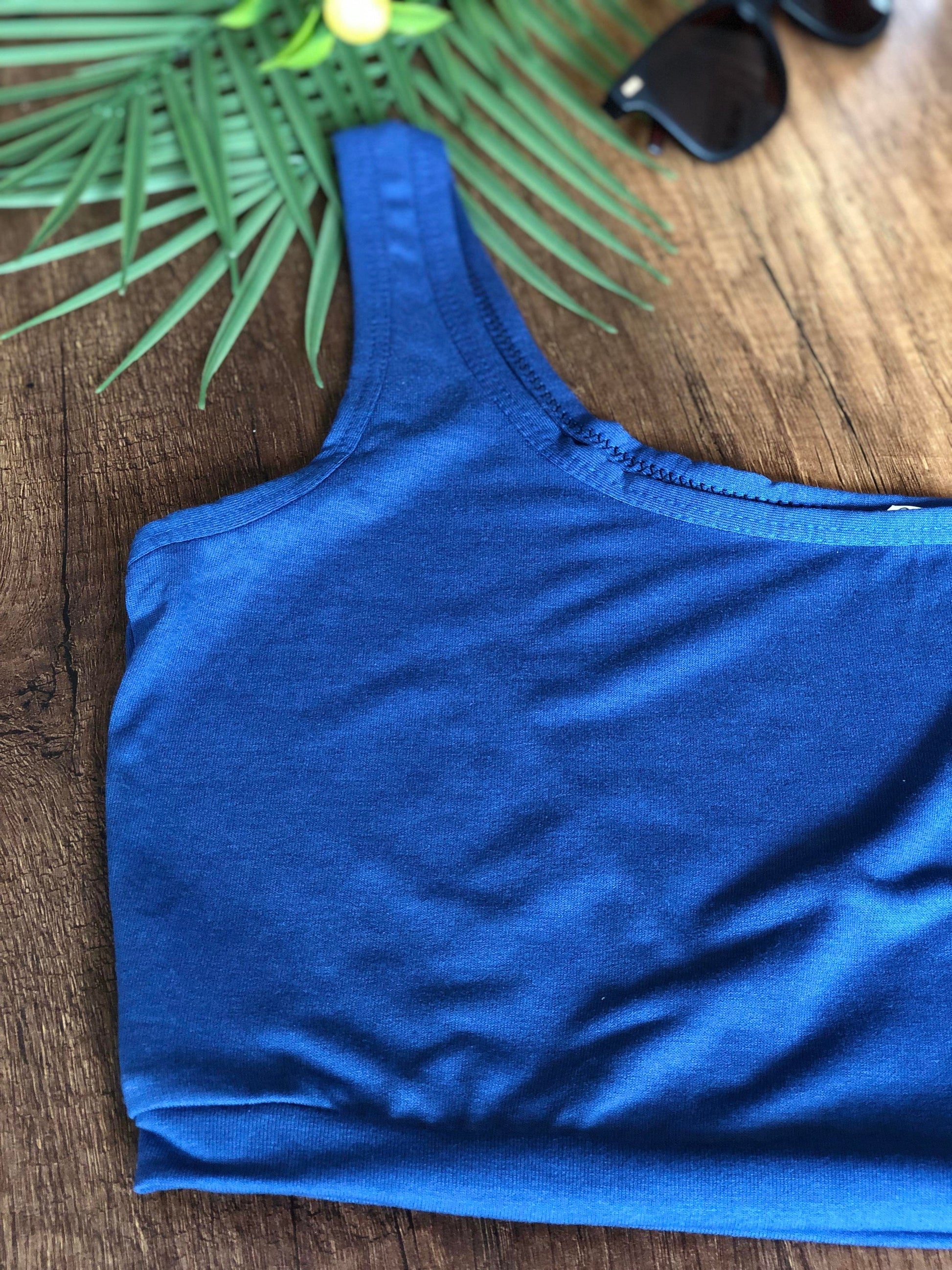 Kolsuz Crop Büstiyer Düz Renk - Petrol Mavi