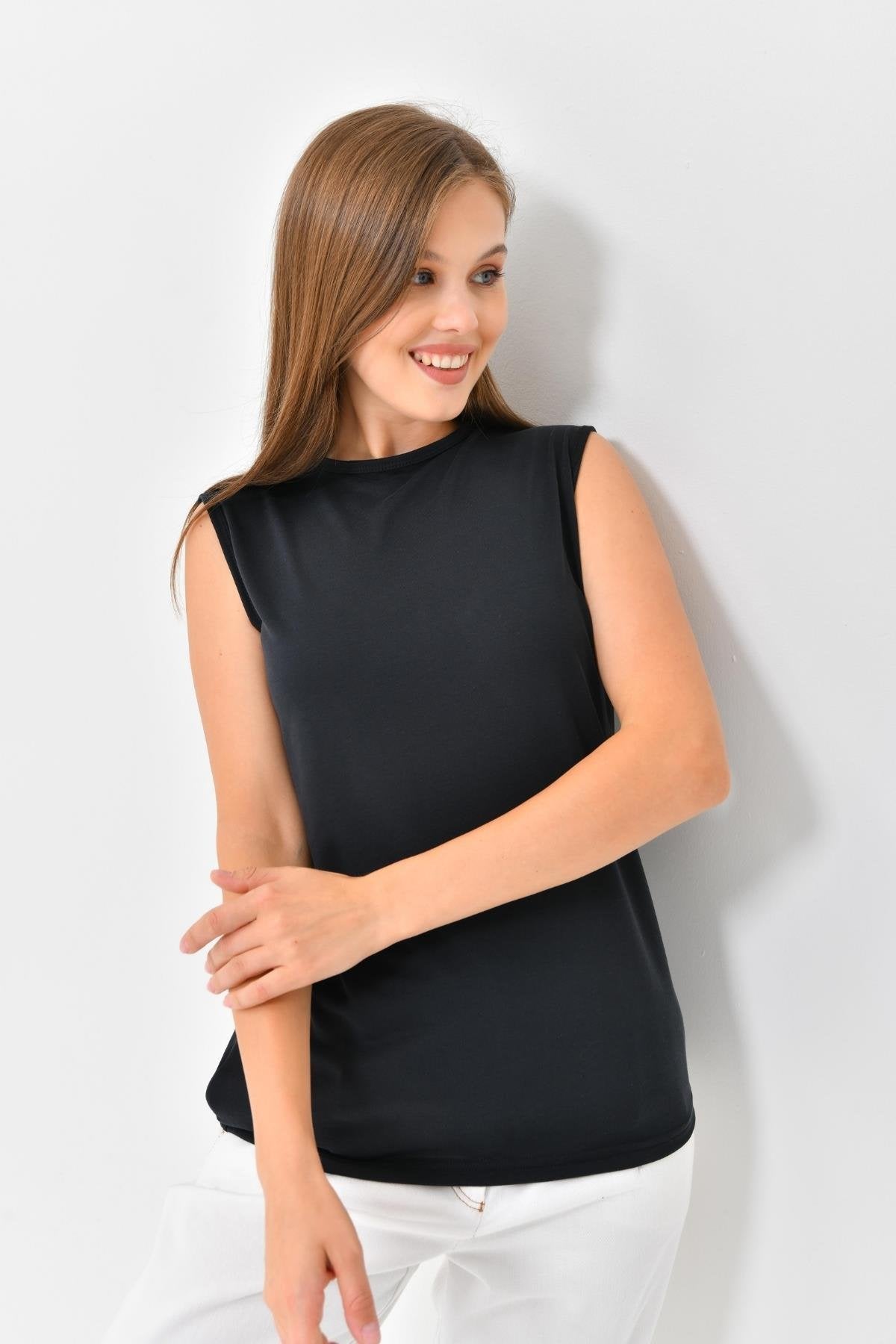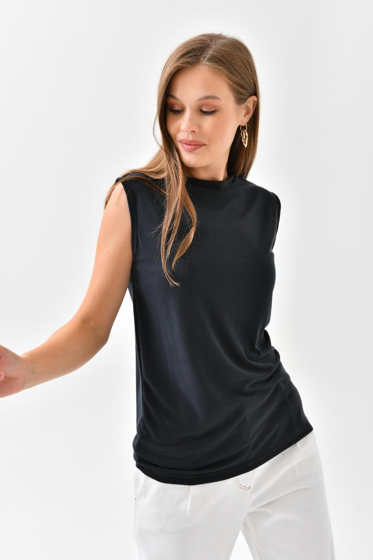 Bisiklet Yaka Kolsuz İçlik – Siyah