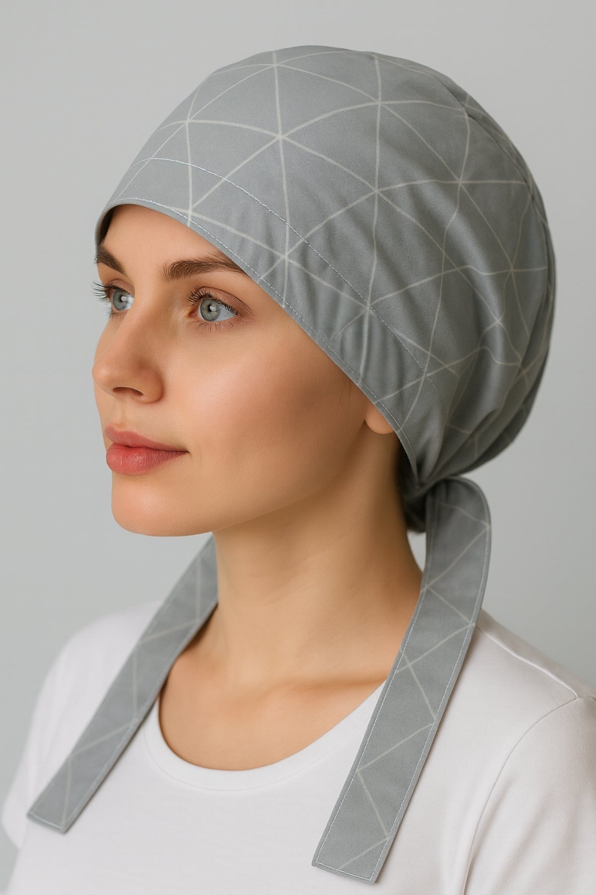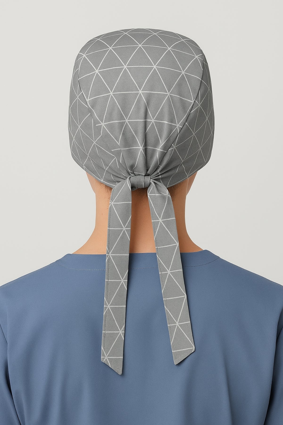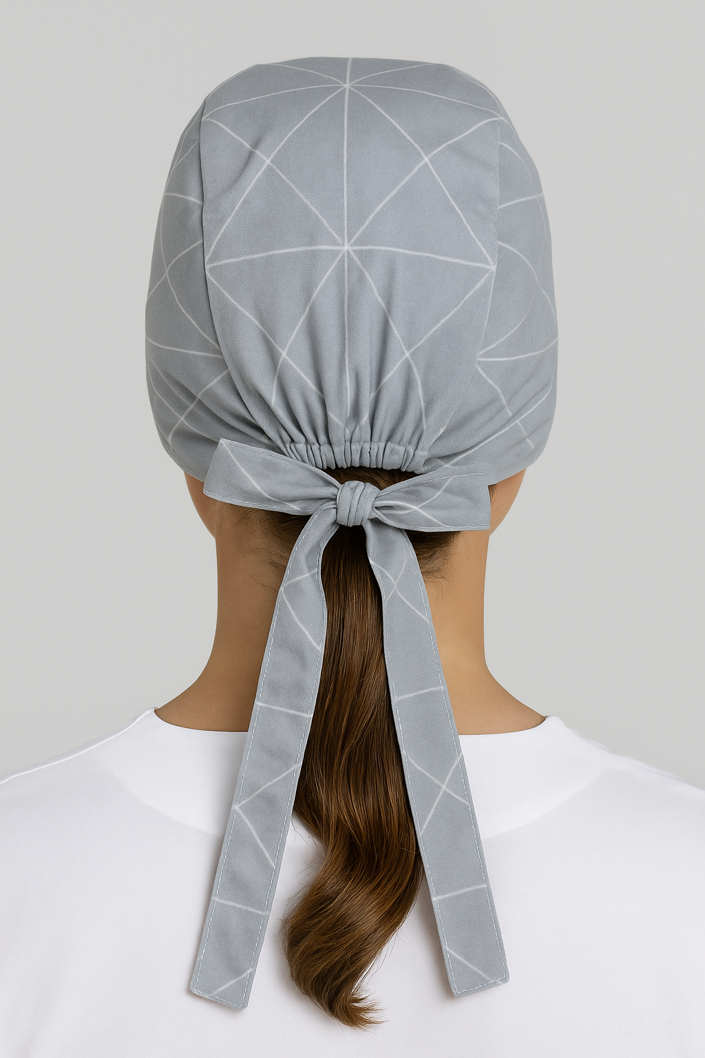 Modern ve şık tasarımıyla öne çıkan Modern Çizgiler Cerrahi Bone, gri tonları üzerine geometrik çizgi desenleriyle hem kadın hem erkek sağlık çalışanları için idealdir. Hafif ve nefes alabilen pamuklu kumaşı sayesinde uzun saatler boyunca konfor sağlar. Ense kısmındaki bağcıkları ile her baş ölçüsüne kolayca uyum sağlar. Unisex yapısı ve modern deseni ile günlük çalışma ortamına stil katarken aynı zamanda pratik kullanım sunar.