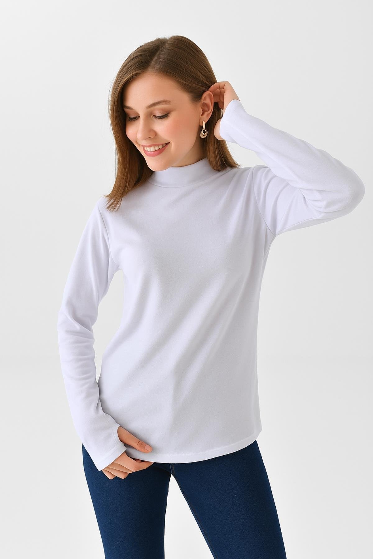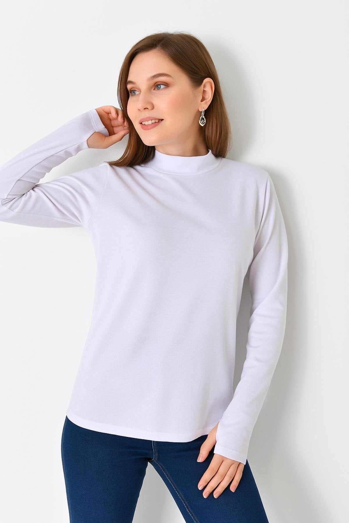 Bu uzun kollu bluz, %95 pamuk ve %5 likra içeren yüksek kaliteli kumaştan üretilmiştir, böylece gün boyu konfor sağlar. Parmak detayları ve modern kesimiyle, hem günlük giyimde hem de özel etkinliklerde göz alıcı bir görünüm sunar. Beyaz rengi ile her türlü kombinle uyum sağlar ve gardırobunuzun vazgeçilmez bir parçası olur.