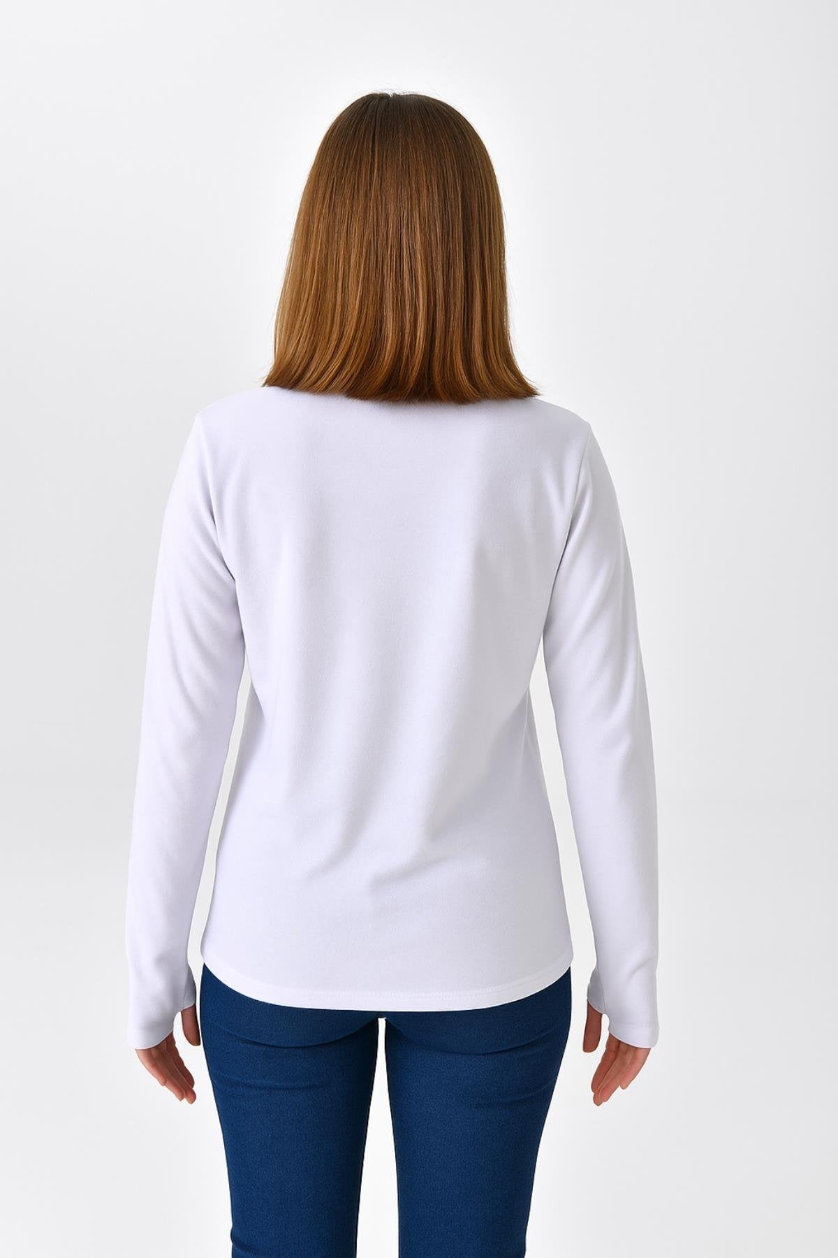 Parmaklı Bluz Uzun Kol - Beyaz