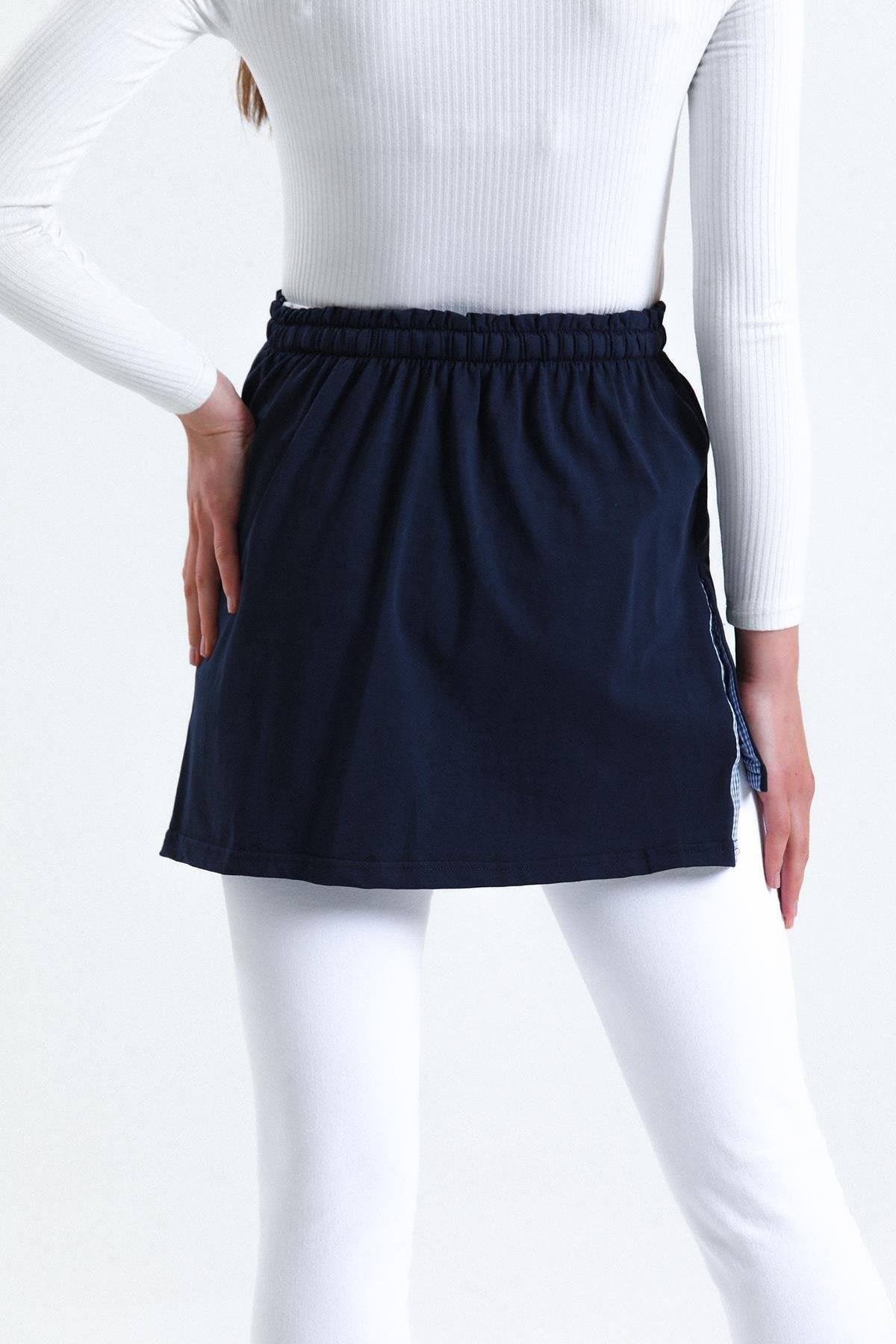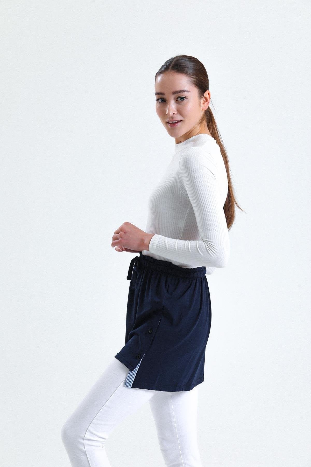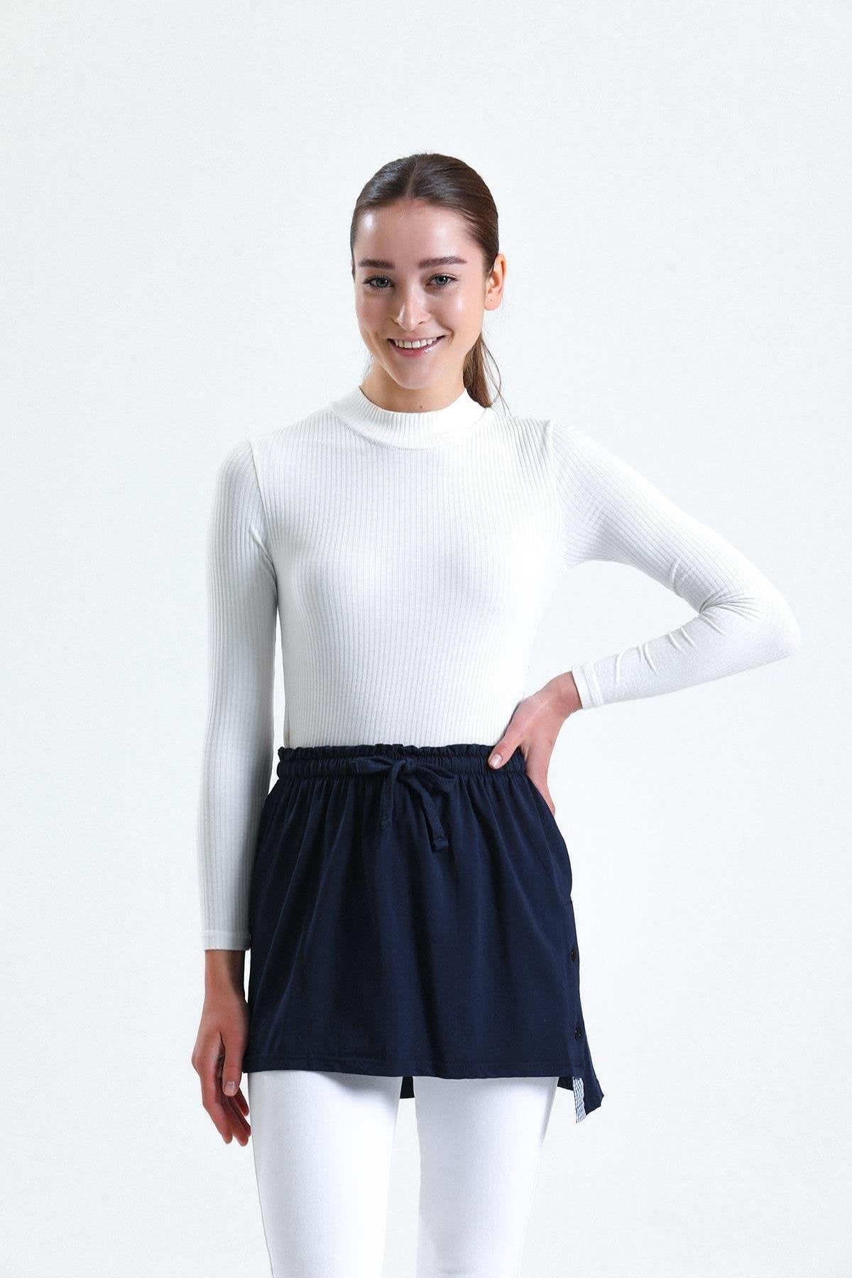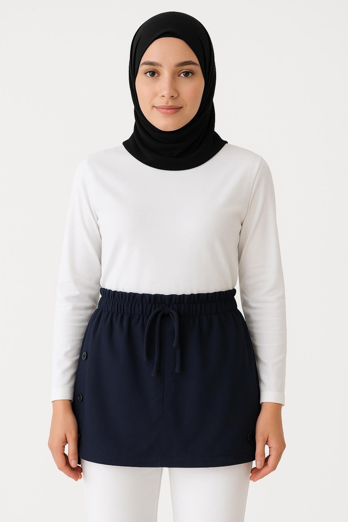 Mirach Textile’in lacivert penye düğmeli spor eteği, pamuklu yapısı ve modern görünümüyle günlük stilinize spor şıklık katıyor. Tişört, kazak veya sweatshirt ile kolayca kombinlenebilir, rahat ve sade bir alternatif sunar.