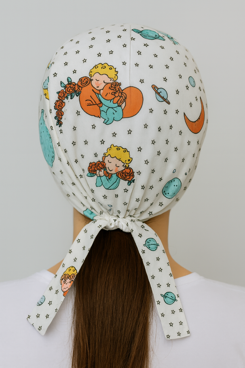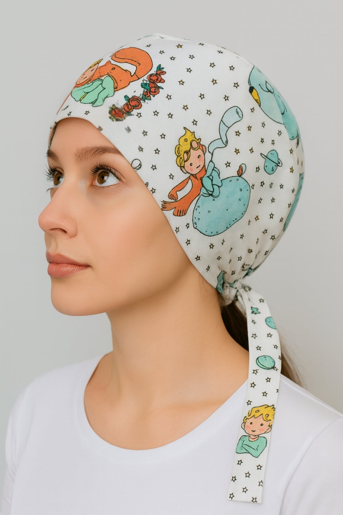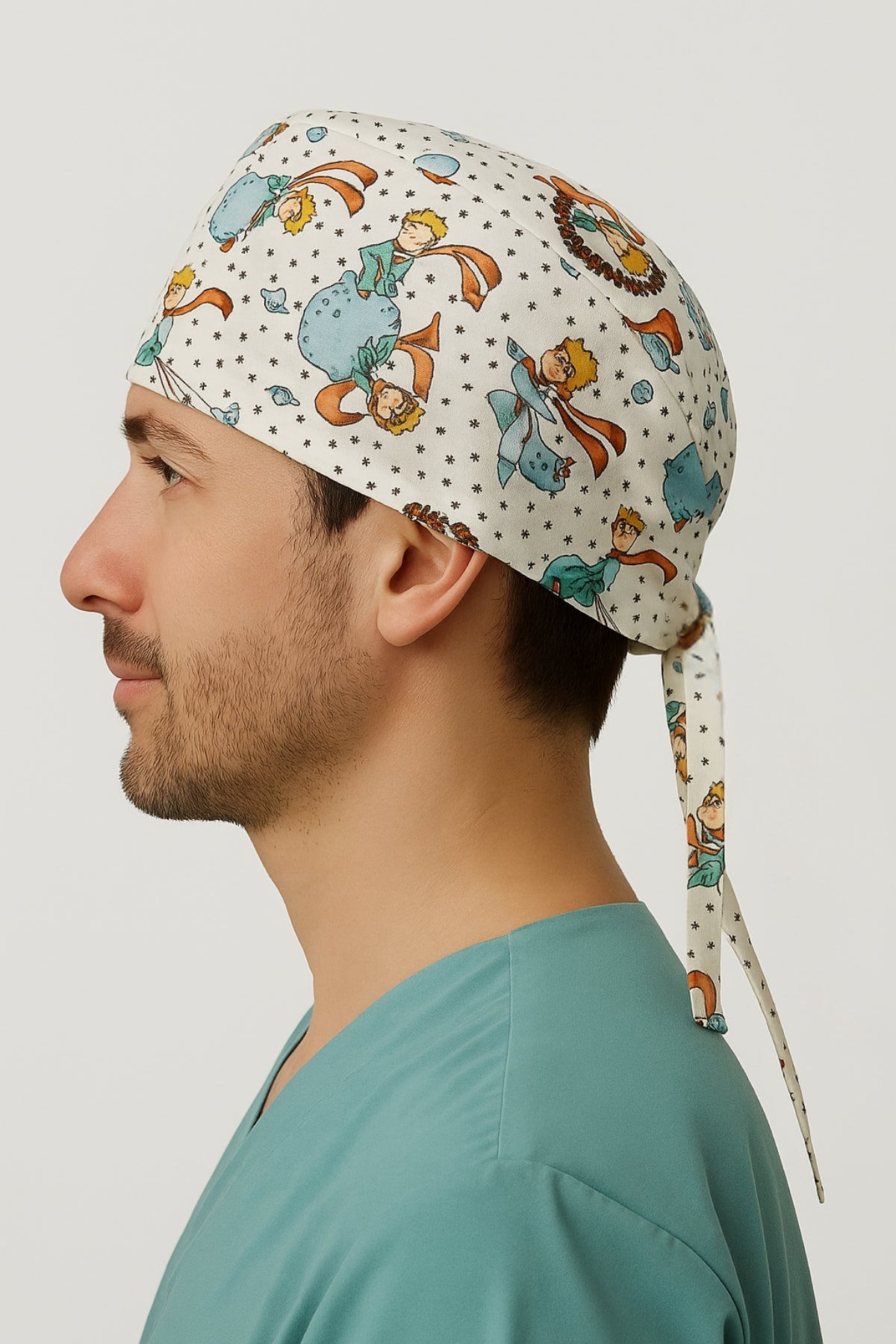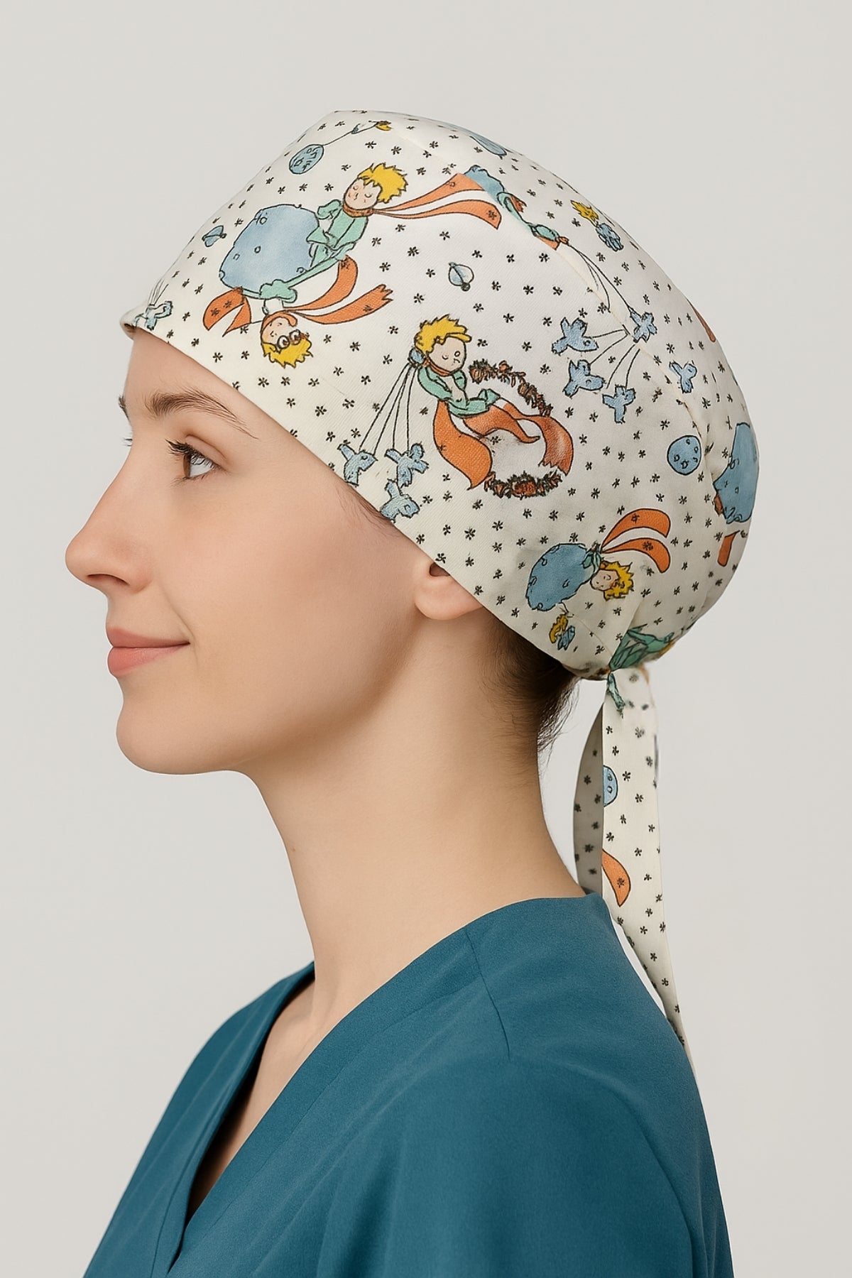 %100 pamuktan üretilmiş bu prens desenli cerrahi bone, çalışma ortamına eğlenceli ve pozitif bir dokunuş getirir. Nefes alabilen kumaşı sayesinde başı terletmez, uzun saatler boyunca konforlu kullanım imkanı sunar. Ayarlanabilir bağcıklı tasarımı sayesinde her baş ölçüsüne uygundur. Sağlık çalışanları için özel olarak tasarlanan bu bone, hem işlevsel hem de estetik bir üründür.