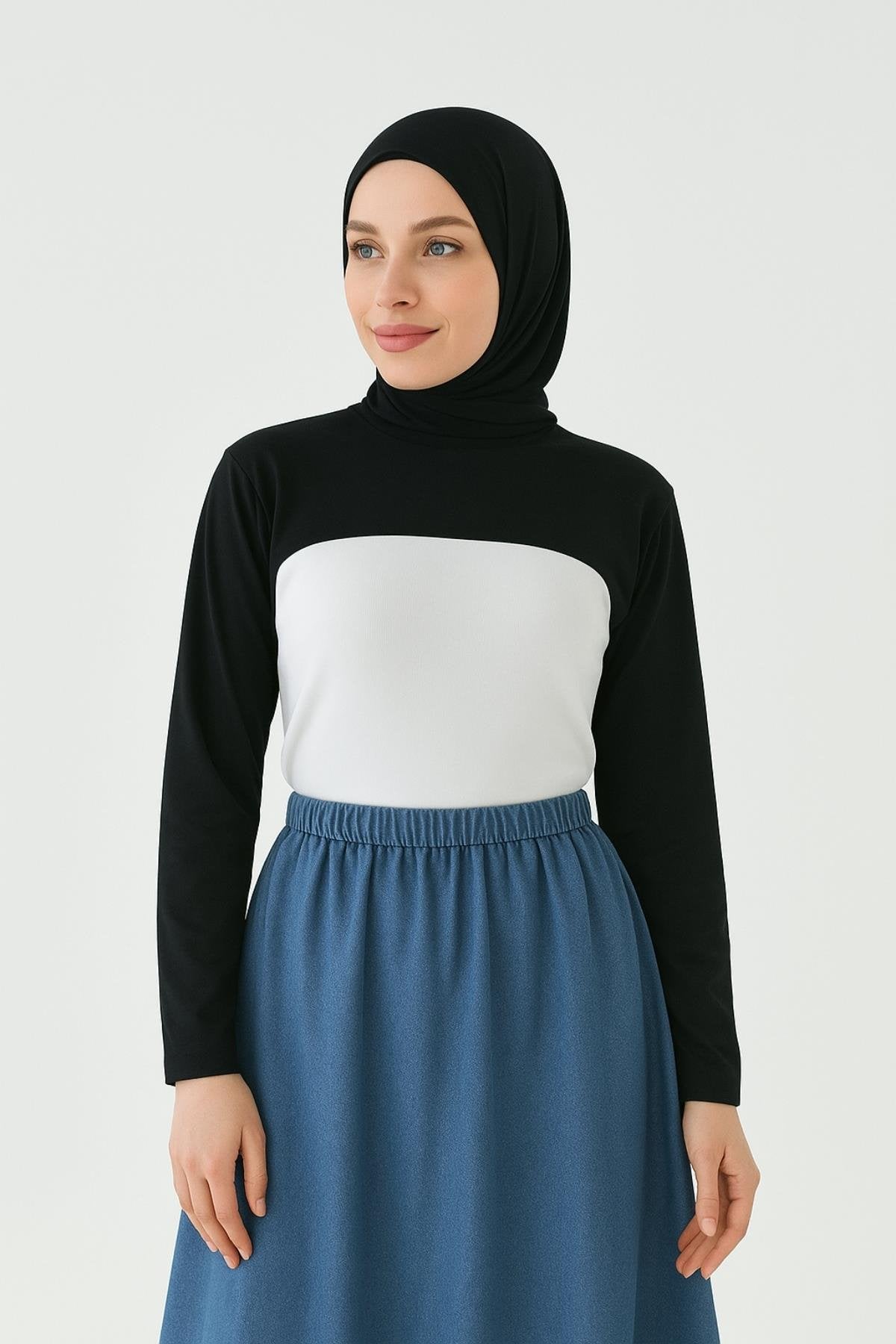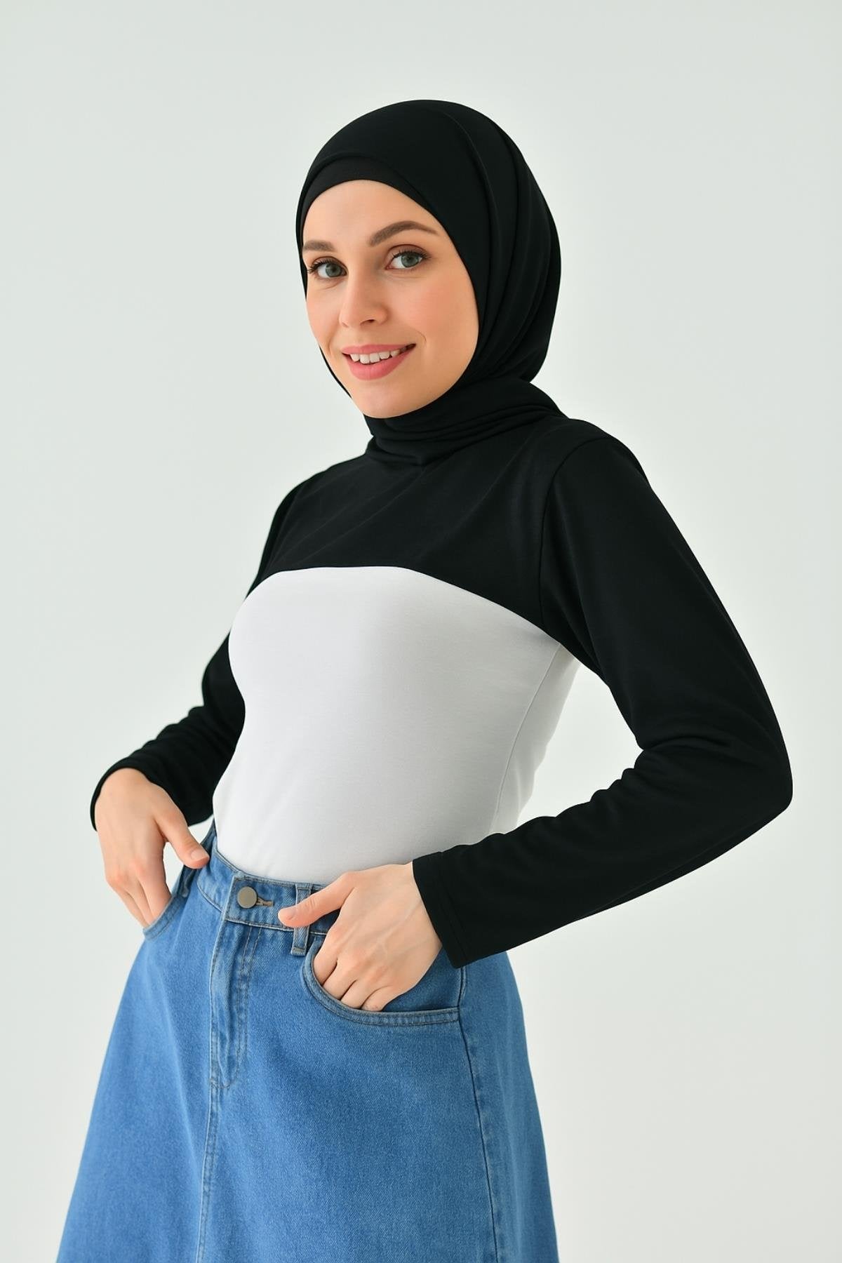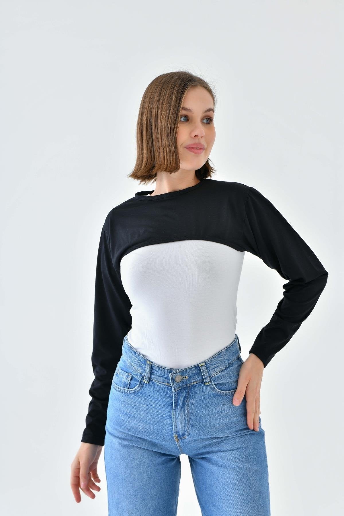 Mirach Textile’in siyah sıfır yaka boyunluklu kolluğu, pratik ve örtücü tasarımıyla tesettür giyimde ideal bir tamamlayıcıdır. Entegre kolluk yapısı sayesinde kısa kollu ve düşük yakalı kıyafetlerin altına rahatlıkla giyilebilir. Yumuşak ve esnek kumaşı gün boyu konfor sunar.